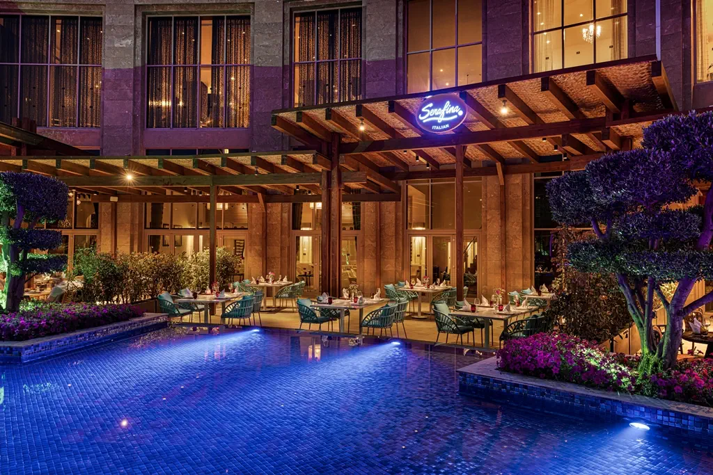 Śniadanie (07:00 - 10:30) - PALAZZO BUFFET, stół szwedzki, Późne śniadanie (10:30 - 11:00) - PALAZZO BUFFET, stół szwedzki, Obiad (12:30 - 14:30) - PALAZZO BUFFET, stół szwedzki, Przekąski (12:00 - 16:00) - STEAK , określone menu, Podwieczorek (10:00 - 18:30) - PATTISSERIE, stół szwedzki, Kolacja (18:30 - 21:00) - PALAZZO BUFFET, stół szwedzki, Późna kolacja (23:30 - 02:00) - PALAZZO BUFFET, określone menu, SERAFINA (18:30 - 21:30) (18:30 - 21:30), bez limitu, Kuchnia: Włoska, Wymagana rezerwacja: Tak, STEAK HOUSE (18:30 - 21:30) (18:30 - 21:30), bez limitu, Kuchnia: lokalna, Wymagana rezerwacja: Tak ¹⁾, YADA SUSHI (18:30 - 21:30) (18:30 - 21:30), bez limitu, Kuchnia: Japońska, Wymagana rezerwacja: Tak ¹⁾, Lobby Lounge Bar (24h), Napoje: alkohole lokalne, wybrane alkohole importowane, napoje bezalkoholowe (24h), Elenore Night Club Bar (23:00 - 01:00), Napoje: alkohole lokalne, wybrane alkohole importowane, napoje bezalkoholowe (23:00 - 01:00), napoje bezalkoholowe, alkohole lokalne, wybrane alkohole importowane, lody, pakiety dla nowożeńców, pakiety urodzinowe (na życzenie), cukiernia, room service ¹⁾, Minibar w pokoju ¹⁾ - dodatkowo płatne