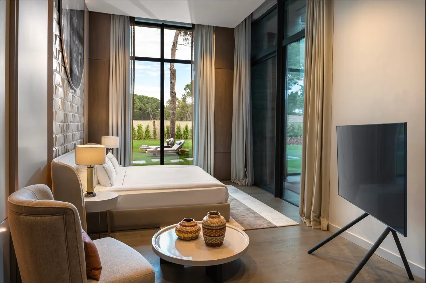 Dla max. 6 osób, Przestrzeń zewnętrzna: Taras, Telefon w pokoju, Aneks kuchenny, wanna i prysznic , Powierzchnia pokoju: ok. 130 m2, Dostawka: sofa, Rodzaj podłogi: laminat, Sprzątanie codziennie, Salon, część jadalniana, miejsce do pracy, 2 sypialnie, Drzwi łączące między pokojami, Maksymalna liczba osób dorosłych: 4, Maksymalna liczba dzieci: 2, Concierge (bezpłatnie), Kwiaty i owoce, Widok na pole golfowe, Prywatny basen, Liczba łazienek: 2, Liczba toalet: 2, Kuchenka mikrofalowa, Zestaw do parzenia kawy i herbaty, Klimatyzacja: Klimatyzacja indywidualna