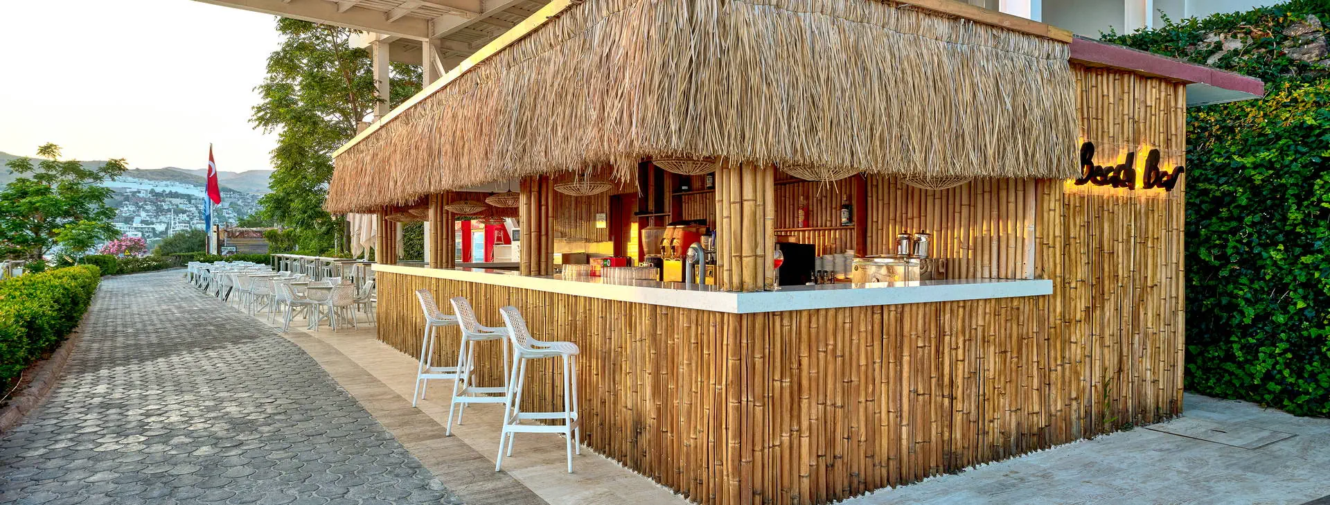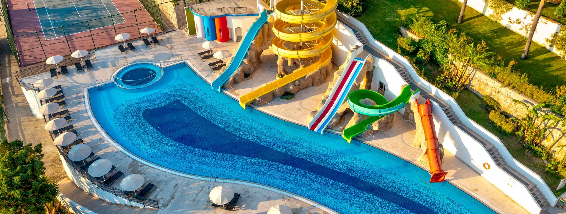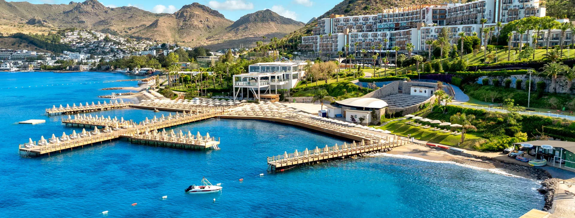 Położenie: Luksusowy hotel położony na zadbanym zielonym terenie o powierzchni 5 ha, rozciągającym się wzdłuż pięknej plaży uchodzącej do turkusowych wód Morza Egejskiego. Ok. 10 km do turystycznej miejscowości Turgutreis z wyborem barów, restauracji oraz sklepów. Ok. 25 km do centrum Bodrum oraz ok. 60 km do lotniska Bodrum-Milas. Plaża: Położony tuż przy pięknej, prywatnej, piaszczystej plaży rozciągającej się na długości ponad 400 m z prywatnym pomostem (zalecane obuwie ochronne). Ręczniki plażowe, leżaki i parasole dostępne bezpłatnie. Możliwość wynajęcia altany na plaży (za opłatą). Do dyspozycji gości: Recepcja 24 h, kantor, restauracja główna (wymagany strój wieczorowy), 5 restauracji a’la carte (otwarte w szczycie sezonu): turecka, włoska, meksykańska, chińska oraz z owocami morza (jedna bezpłatna wizyta w jednej restuaracji, nastepne wizyty płatne dodatkowo ok. 10 EUR/os., wymagana rezerwacja), 4 restauracje serwujące przekąski w ciągu dnia, 9 barów w tym bar przy basenie, na plaży i na pomoście oraz dyskoteka. Ponadto 3 baseny: główny, z animacjami i kryty, jacuzzi, aqua park z 5 zjeżdżalniami, 3 brodziki dla dzieci, bezpłatne ręczniki, leżaki i parasole. W hotelu znajduje się kino. Za dodatkową opłatą: room service 24 h, minimarket, sklep z pamiątkami, fotograf, fryzjer, lekarz, pralnia, usługi opiekunki dla dzieci (na zapytanie), wypożyczalnia samochodów. Wyżywienie: Ultra All Inclusive: śniadanie, późne śniadanie, lunch oraz obiadokolacja w formie urozmaiconego bufetu. W ciągu dnia przekąski oraz lody w wyznaczonych restauracjach. Lokalne oraz niektóre importowane napoje bezalkoholowe i alkoholowe dostępne 24 h w wybranych barach, świeżo wyciskane soki podczas śniadania oraz w Vitamin barze. Płatne dodatkowo: pozostałe importowane napoje bezalkoholowe i alkoholowe, wina butelkowane, szampan. Program sportowy i animacyjny: Hotel prowadzi animacje dzienne i wieczorne. Ponadto: niemotorowe sporty wodne, windsurfing (1 h/dzień, wymagana licencja), fitness, siłownia, centrum SPA, tenis, koszykówka, siatkówka plażowa, łucznictwo, rowery, tenis stołowy, bilard, rzutki. Za opłatą: zabiegi i masaże w centrum SPA, motorowe sporty wodne, oświetlenie kortów i boisk, kręgle, automaty do gier. Dla dzieci: mini klub. Internet: Bezpłatny Internet Wi-Fi na terenie całego hotelu, również w pokojach. Kategoria lokalna: ***** Strona www: