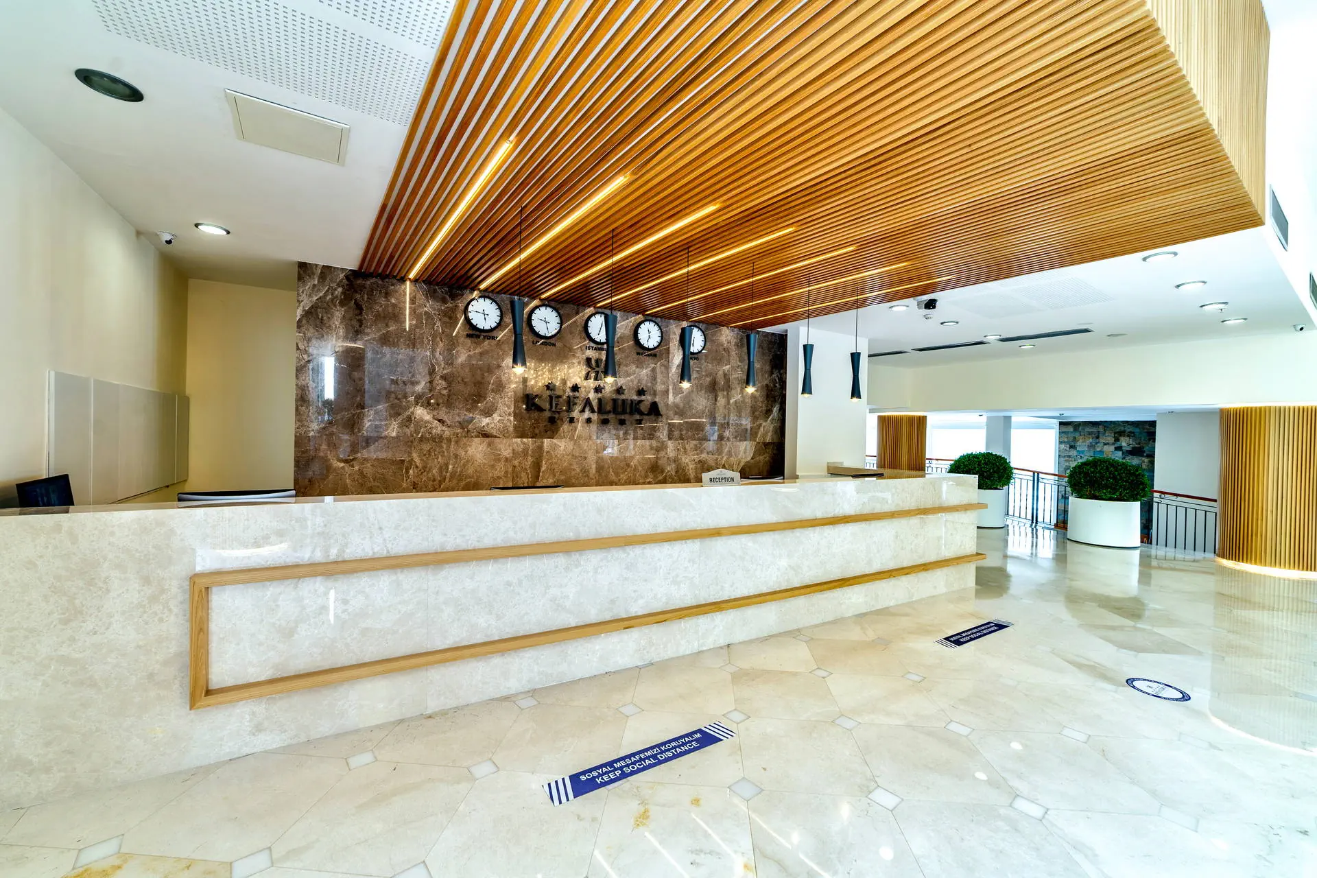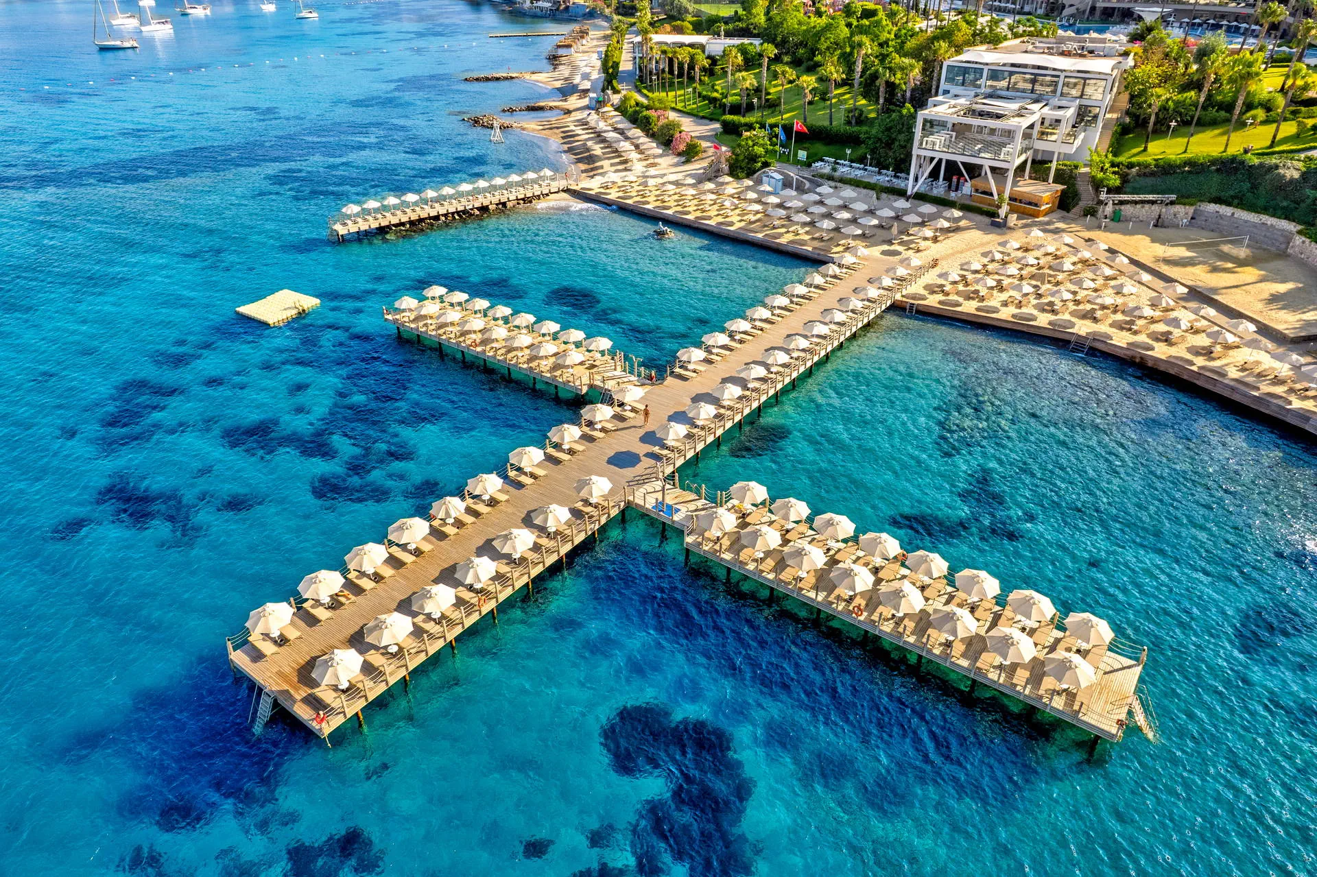 Plaża Położony tuż przy pięknej, prywatnej, piaszczystej plaży rozciągającej się na długości ponad 400 m z prywatnym pomostem (zalecane obuwie ochronne). Ręczniki plażowe, leżaki i parasole dostępne bezpłatnie. Możliwość wynajęcia altany na plaży (za opłatą). Do dyspozycji gości Recepcja 24 h, kantor, restauracja główna (wymagany strój wieczorowy), 5 restauracji a’la carte (otwarte w szczycie sezonu): turecka, włoska, meksykańska, chińska oraz z owocami morza (jedna bezpłatna wizyta w jednej restuaracji, nastepne wizyty płatne dodatkowo ok. 10 EUR/os., wymagana rezerwacja), 4 restauracje serwujące przekąski w ciągu dnia, 9 barów w tym bar przy basenie, na plaży i na pomoście oraz dyskoteka. Ponadto 3 baseny: główny, z animacjami i kryty, jacuzzi, aqua park z 5 zjeżdżalniami, 3 brodziki dla dzieci, bezpłatne ręczniki, leżaki i parasole. W hotelu znajduje się kino. Za dodatkową opłatą: room service 24 h, minimarket, sklep z pamiątkami, fotograf, fryzjer, lekarz, pralnia, usługi opiekunki dla dzieci (na zapytanie), wypożyczalnia samochodów. Wyżywienie Ultra All Inclusive: śniadanie, późne śniadanie, lunch oraz obiadokolacja w formie urozmaiconego bufetu. W ciągu dnia przekąski oraz lody w wyznaczonych restauracjach. Lokalne oraz niektóre importowane napoje bezalkoholowe i alkoholowe dostępne 24 h w wybranych barach, świeżo wyciskane soki podczas śniadania oraz w Vitamin barze. Płatne dodatkowo: pozostałe importowane napoje bezalkoholowe i alkoholowe, wina butelkowane, szampan. Program sportowy i animacyjny Hotel prowadzi animacje dzienne i wieczorne. Ponadto: niemotorowe sporty wodne, windsurfing (1 h/dzień, wymagana licencja), fitness, siłownia, centrum SPA, tenis, koszykówka, siatkówka plażowa, łucznictwo, rowery, tenis stołowy, bilard, rzutki. Za opłatą: zabiegi i masaże w centrum SPA, motorowe sporty wodne, oświetlenie kortów i boisk, kręgle, automaty do gier. Dla dzieci: mini klub. Internet Bezpłatny Internet Wi-Fi na terenie całego hotelu, również w pokojach. Kategoria lokalna ***** Naszym zdaniem Ekskluzywny obiekt o najwyższej jakości świadczonych usług, zdobywca wielu nagród satysfakcji Klientów. Polecamy wymagającym Klientom, szukającym spokojnego wypoczynku z dala od zgiełku kurortów turystycznych, kompleksowej obsługi oraz wszelkich udogodnień w zasięgu ręki. Ze względu na szeroki wachlarz atrakcji dla najmłodszych polecamy również rodzinom z dziećmi. Strona www www.kefaluka.com Położenie Luksusowy hotel położony na zadbanym zielonym terenie o powierzchni 5 ha, rozciągającym się wzdłuż pięknej plaży uchodzącej do turkusowych wód Morza Egejskiego. Ok. 10 km do turystycznej miejscowości Turgutreis z wyborem barów, restauracji oraz sklepów. Ok. 25 km do centrum Bodrum oraz ok. 60 km do lotniska Bodrum-Milas.