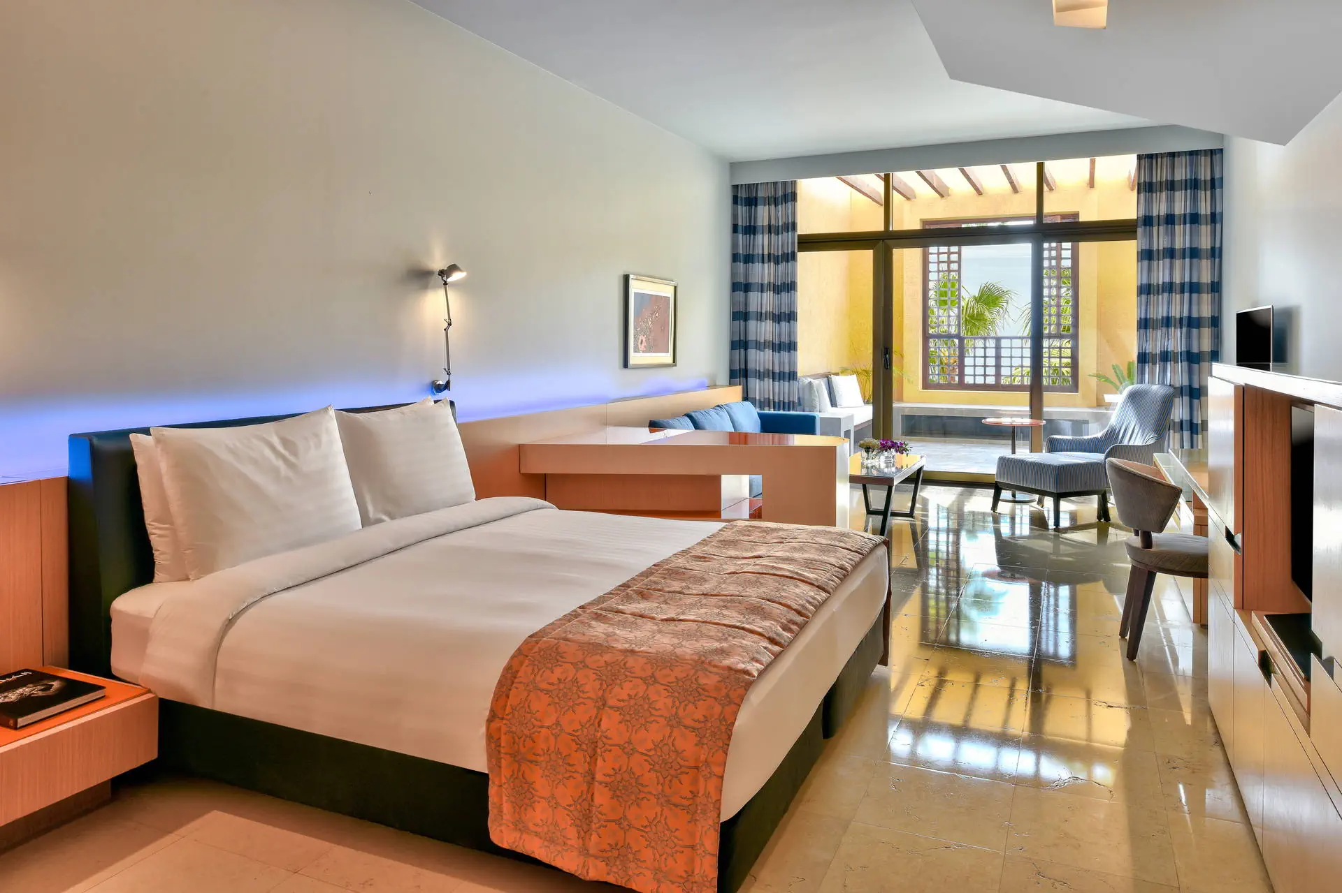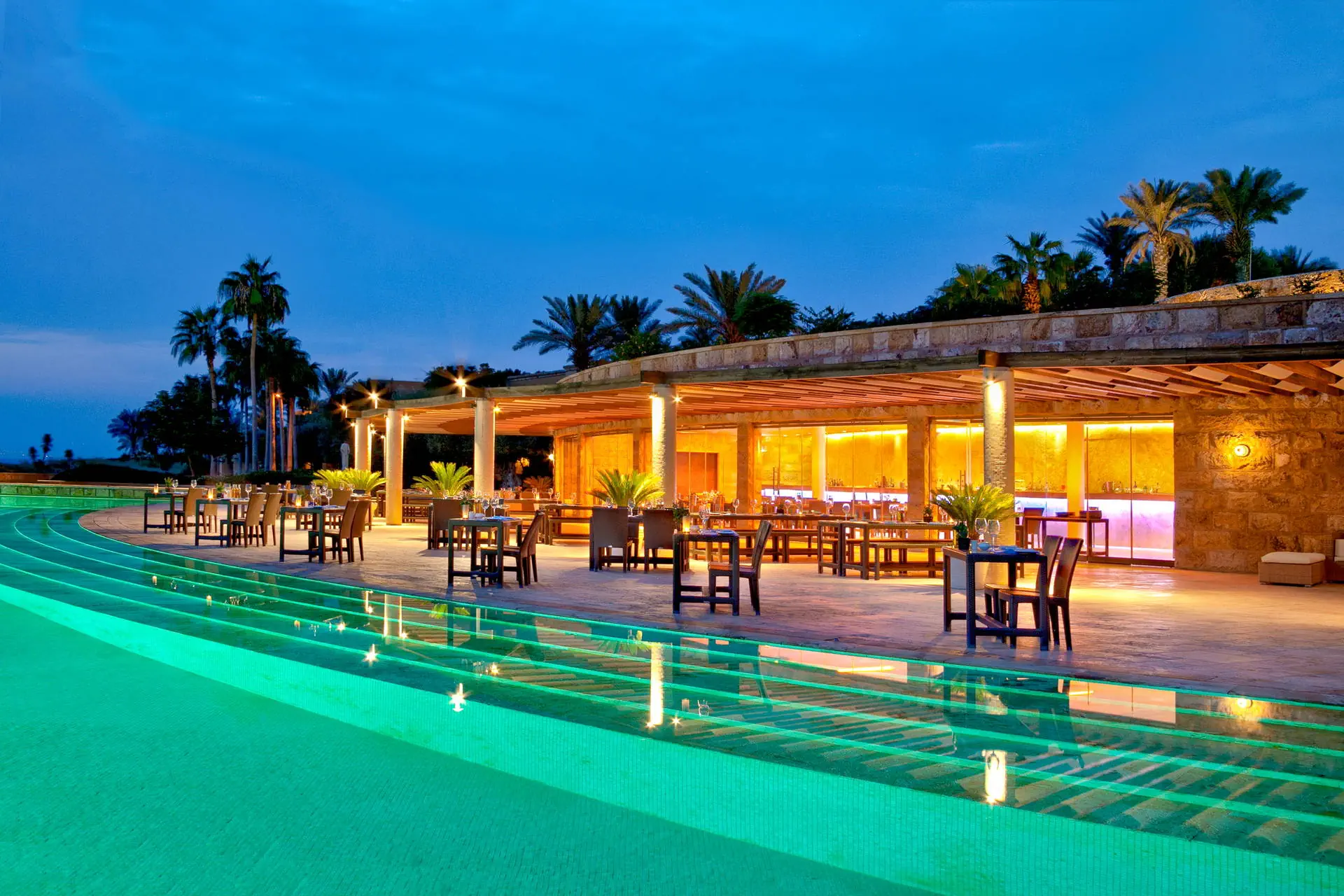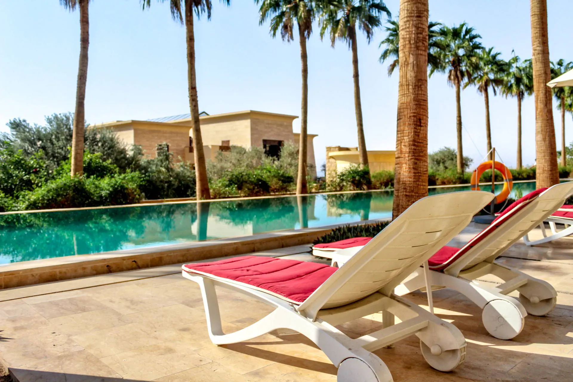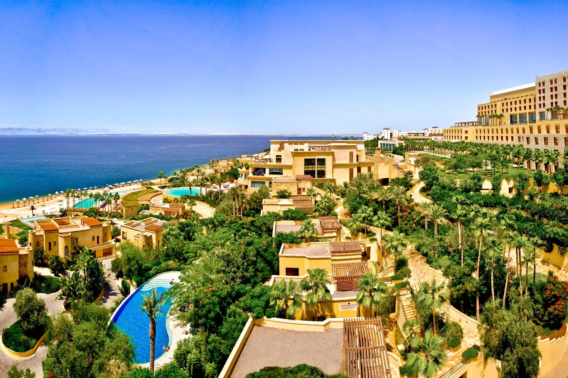 Położenie Światowej klasy hotel należy do znanej i renomowanej sieci hotelowej Kempinski. Położony jest na dużym terenie bezpośrednio przy ładnej plaży, na północno-wschodnim wybrzeżu Morza Martwego. Stolica Jordanii, Amman z licznymi sklepami i restauracjami znajduje się ok. 55 km od hotelu, a w promieniu ok. 50 km dostępne są takie atrakcje turystyczne jak Góra Nebo, Madaba czy Betania. Port lotniczy w Aqabie położony jest ok. 265 km na południe od hotelu. Plaża Hotel posiada własną zadbaną, dość długą piaszczysto-żwirową plażę (zalecane obuwie kąpielowe), gdzie leżaki, parasole oraz ręczniki plażowe dostępne są bezpłatnie. Uwaga:woda w Morzu Martwym jest mocno zasolona, toteż możliwa jest kąpiel (relaksująca ale niedługa). Woda ma dużo dobroczynnych właściwości korzystnie wpływających na organizm ludzki (naturalne SPA). Ze względu na zasolenie i wyporność wody pływanie w morzu nie jest możliwe. Do dyspozycji gości Ekskluzywny hotel, zbudowany z lokalnego kamienia, który splata czyste i proste linie z tradycyjnym arabskim stylem architektonicznym. Obiekt składa się z budynku głównego i rozsianych po całym terenie 1-piętrowych willi. Oferuje swoim gościom: 24-godzinną recepcję, przestronne lobby, windy, szeroki wybór restauracji i barów (niektóre dodatkowo płatne): restaurację główną The Obelisk (kuchnia międzynarodowa), restaurację The Codes (kuchnia tajska), restaurację Ashur Pizza & Grill (kuchnia śródziemnomorska), zlokalizowaną przy basenie restaurację/bar Akkad (serwującą przekąski) oraz 4 bary. Pośród pięknego ogrodu z palmami, krzewami i drzewami oliwnymi rozlokowane jest aż 9 basenów, w tym basen typu "infinity" (okresowo podgrzewany) i brodzik dla dzieci (podgrzewane sezonowo), duży basen lagunowy oraz mniejsze baseny prywatne dostępne tylko dla gości willi. Wokół basenów znajdują się tarasy słoneczne z leżakami, parasolami i ręcznikami basenowymi w cenie. Dodatkowo w hotelu: siłownia, jedna z największych stref SPA nad Morzem Martwym, kort tenisowy, przechowalnia bagażu, centrum konferencyjne, usługi concierge, fryzjer, wypożyczalnia samochodów, parking (niektóre z wymienionych dodatkowo płatne). Pokoje Zainspirowany przez wiszące ogrody Babilonu, ośrodek zbudowany jest w formie wakacyjnej wioski i oferuje 345 pokoi i apartamentów. Pokoje Superior są 2-os., ulokowane są w buynku głównym po przeciwnej stronie od recepcji (z możliwością 1 dostawki), utrzymane w nowoczesnym, a zarazem klasycznym i eleganckim stylu. Wyposażone są one w: łazienkę (wanna lub prysznic, WC, suszarka do włosów, zestaw mini kosmetyków), klimatyzację, TV-sat., telefon, zestaw do parzenia kawy i herbaty, sejf, mini bar (w cenie wybrane: napoje bezalkoholowe, piwo i przekąski), balkon lub taras (stolik z krzesełkami). Większość pokoi posiada widok na ogród, strefę basenową, a niektóre częściowy widok na Morze Martwe. Wyżywienie Śniadania w formie bufetu w restauracji głównej. Możliwa dopłata do obiadokolacji. Napoje do posiłków oraz między posiłkami dodatkowo płatne. Program sportowy i animacyjny sezonowo prowadzony lekki program z muzya na żywo. Na terenie hotelu można skorzystać z jednego z kilku basenów, siłowni lub kortu tenisowego. Dla najmłodszych przygotowano podgrzewany brodzik, pokój zabaw oraz zajęcia w mini klubie. Za opłatą: komfortowe centrum SPA z basenami wewnętrznymi, sauną i jacuzzi oraz zajęcia z instruktorem fitness. Internet Wi-Fi na terenie całego hotelu bez opłat. Kategoria lokalna ***** Strona www www.kempinski.com/en/dead-sea/hotel-ishtar Naszym zdaniem Stylowy i bardzo elegancki hotel, oferujący swoim Gościom przepiękny ogród usiany lagunami, wodospadami i prywatnymi basenami, gdzie pośród palm i drzew oliwnych każdy znajdzie dla siebie oazę spokoju i relaksu. Dodatkowo zróżnicowana i smaczna kuchnia oraz serwis na najwyższym poziomie dopełnią komfortowego wypoczynku o 5-gwiazdkowym standardzie.