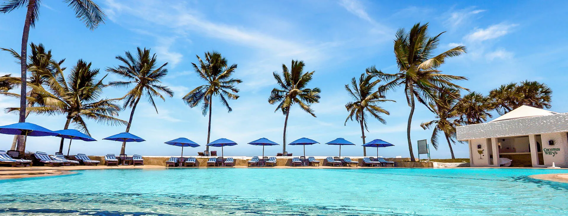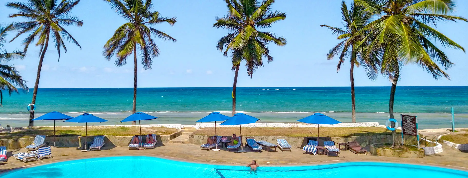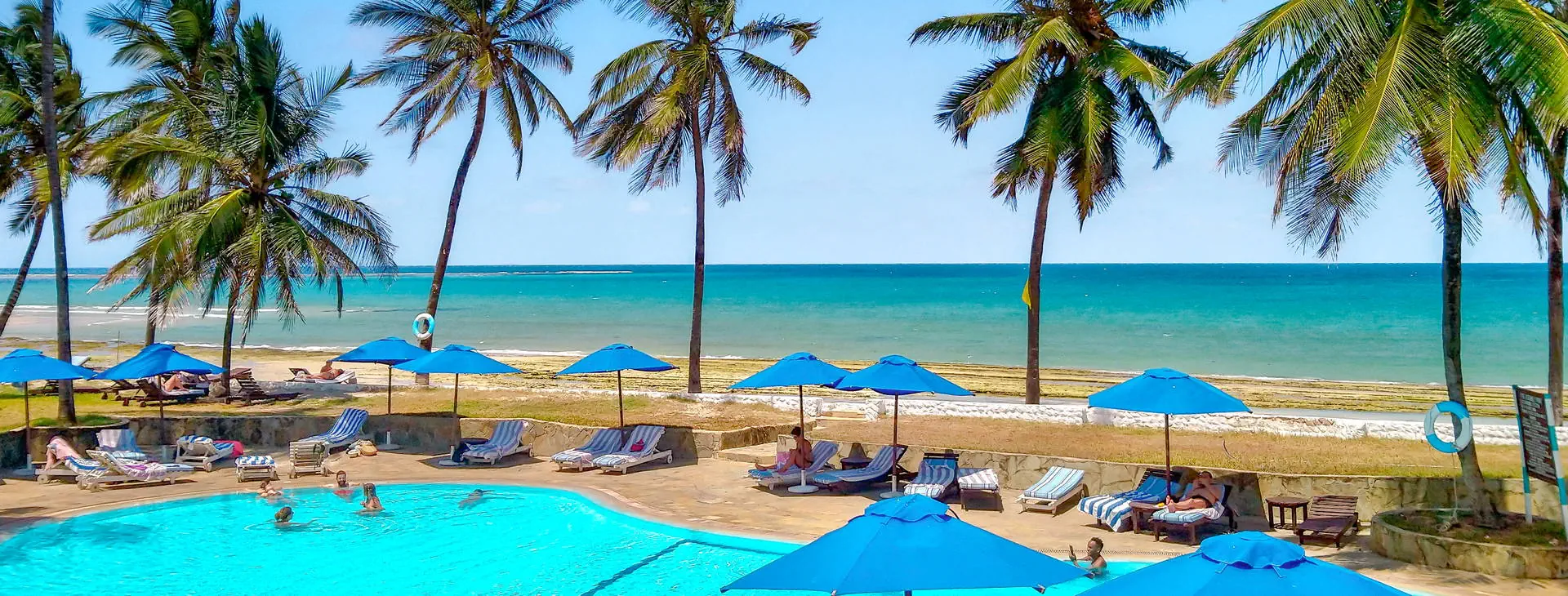 Położenie: Ten stylowy hotel, zbudowany w oryginalnym stylu swahili, położony jest tuż przy urokliwej plaży Diani, w cichym i spokojnym otoczeniu palm i baobabów. Hotel składa się z kilkunastu 1- piętrowych budynków otoczonych zadbanym, tropikalnym ogrodem. Do centrum niewielkiej miejscowości Ukunda ok. 4 km, do centrum Mombasy ok. 45 km. Do lotniska w Mombasie ok. 55 km. Plaża: Hotel położony przy jednej z najpiękniejszych plaż w Kenii – Diani Beach. Szeroka, z drobnym, białym piaskiem oraz łagodnym zejściem do oceanu, otoczona jest palmami dając wytchnienie w upalne, słoneczne dni. Leżaki, parasole i ręczniki przy hotelowej części plaży dostępne bezpłatnie. Do dyspozycji gości: Recepcja 24 h, przestronne lobby, 2 restauracje: główna i a'la carte serwująca owoce morza i ryby położona przy basenie (płatna dodatkowo), bar główny Sultans Lounge, Dhow Bar przy plaży (10:00-18:00) oraz bar przy basenie. Ponadto: basen główny oraz 3 mniejsze baseny na terenie ogrodu (oczka wodne), leżaki, parasole i ręczniki kąpielowe dostępne bezpłatnie przy basenie. Płatne dodatkowo: mini kantor w recepcji, sala konferencyjna, sklep z pamiątkami, mini SPA. Pokoje: Hotel posiada 100 pokoi położonych w dwupoziomowych bungalowach, w których mieści się od 2 do 5 pokoi, każdy z oddzielnym wejściem. Eleganckie pokoje standardowe (typu Club) urządzone w afrykańskim stylu, o pow. ok. 30 m2, dla max 3 os. dorosłych, wyposażone są w: łazienkę z prysznicem, suszarkę do włosów, indywidualnie sterowaną klimatyzację, wiatrak, moskitierę, TV Sat., telefon, sejf, balkon lub taras z widokiem na ogród. Za dopłatą pokoje z częściowym widokiem na ocean. Pokoje z widokiem na ocean na potwierdzenie. Wyżywienie: Śniadania w formie bufetu (06:30-10:00) i obiadokolacje (19:30-22:00) serwowane do stolika (do wyboru z 5 daniowego menu) lub w formie bufetu (w zależności od obłożenia hotelu). W godzinach 16:00-17:00 herbata i przekąski w cenie. Za dopłatą opcja Full Board (dodatkowo lunche w formie bufetu lub serwowany do stolika w zależności od obłożenia hotelu, w godzinach 12:30-14:30) )lub All Inclusive Light (dodatkowo lokalne napoje bezalkoholowe i alkoholowe podczas posiłków: parzona kawa i herbata, koktajle, piwo, wino, mocne alkohole). Pozostałe napoje dodatkowo płatne. Wyżywienie na objeździe: śniadania, obiady i kolacje zgodnie z opisem w programie wycieczki. Program sportowy i animacyjny: Hotel oferuje codzienne animacje w wersji soft. Ponadto: 2 oświetlone korty tenisowe, boisko do siatkówki plażowej, plażowa piłka nożna, bilard, tenis stołowy. Do centrum sportów wodnych ok. 5 km (katamaran, windsurfing, kajaki - za dodatkową opłatą). Internet: Bezpłatny Internet Wi-Fi w lobby, restauracji i w pokojach. Kategoria lokalna: **** Jacaranda Indian Ocean Beach Resort / *** zakwaterowanie na objeździe Strona www: