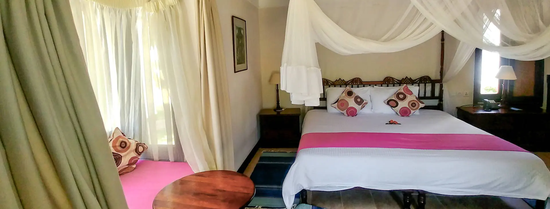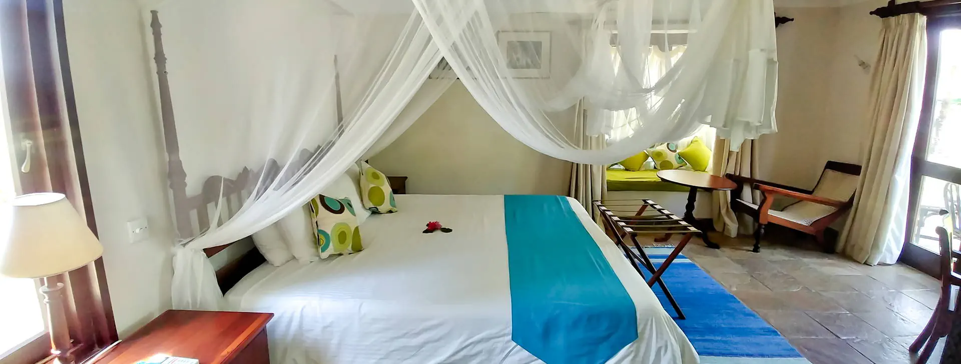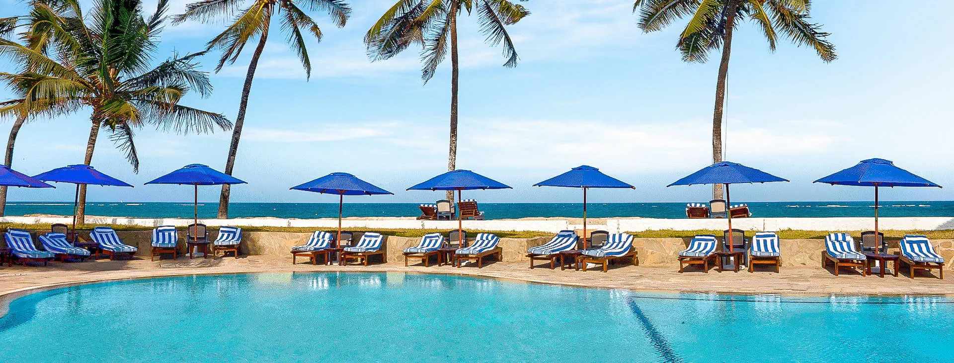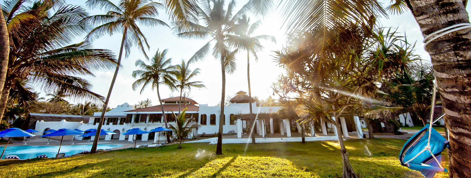 Położenie: Ten stylowy hotel, zbudowany w oryginalnym stylu swahili, położony jest tuż przy urokliwej plaży Diani, w cichym i spokojnym otoczeniu palm i baobabów. Hotel składa się z kilkunastu 1- piętrowych budynków otoczonych zadbanym, tropikalnym ogrodem. Do centrum niewielkiej miejscowości Ukunda ok. 4 km, do centrum Mombasy ok. 45 km. Do lotniska w Mombasie ok. 55 km. Plaża: Hotel położony przy jednej z najpiękniejszych plaż w Kenii – Diani Beach. Szeroka, z drobnym, białym piaskiem oraz łagodnym zejściem do oceanu, otoczona jest palmami dając wytchnienie w upalne, słoneczne dni. Leżaki, parasole i ręczniki przy hotelowej części plaży dostępne bezpłatnie. Do dyspozycji gości: Recepcja 24 h, przestronne lobby, 2 restauracje: główna i a'la carte serwująca owoce morza i ryby położona przy basenie (płatna dodatkowo), bar główny Sultans Lounge, Dhow Bar przy plaży (10:00-18:00) oraz bar przy basenie. Ponadto: basen główny oraz 3 mniejsze baseny na terenie ogrodu (oczka wodne), leżaki, parasole i ręczniki kąpielowe dostępne bezpłatnie przy basenie. Płatne dodatkowo: mini kantor w recepcji, sala konferencyjna, sklep z pamiątkami, mini SPA. Pokoje: Hotel posiada 100 pokoi położonych w dwupoziomowych bungalowach, w których mieści się od 2 do 5 pokoi, każdy z oddzielnym wejściem. Eleganckie pokoje standardowe (typu Club) urządzone w afrykańskim stylu, o pow. ok. 30 m2, dla max 3 os. dorosłych, wyposażone są w: łazienkę z prysznicem, suszarkę do włosów, indywidualnie sterowaną klimatyzację, wiatrak, moskitierę, TV Sat., telefon, sejf, balkon lub taras z widokiem na ogród. Za dopłatą pokoje z częściowym widokiem na ocean. Pokoje z widokiem na ocean na potwierdzenie. Wyżywienie: Śniadania w formie bufetu (06:30-10:00) i obiadokolacje (19:30-22:00) serwowane do stolika (do wyboru z 5 daniowego menu) lub w formie bufetu (w zależności od obłożenia hotelu). W godzinach 16:00-17:00 herbata i przekąski w cenie. Za dopłatą opcja Full Board (dodatkowo lunche w formie bufetu lub serwowany do stolika w zależności od obłożenia hotelu, w godzinach 12:30-14:30) )lub All Inclusive Light (dodatkowo lokalne napoje bezalkoholowe i alkoholowe podczas posiłków: parzona kawa i herbata, koktajle, piwo, wino, mocne alkohole). Pozostałe napoje dodatkowo płatne. Wyżywienie na objeździe: śniadania, obiady i kolacje zgodnie z opisem w programie wycieczki. Program sportowy i animacyjny: Hotel oferuje codzienne animacje w wersji soft. Ponadto: 2 oświetlone korty tenisowe, boisko do siatkówki plażowej, plażowa piłka nożna, bilard, tenis stołowy. Do centrum sportów wodnych ok. 5 km (katamaran, windsurfing, kajaki - za dodatkową opłatą). Internet: Bezpłatny Internet Wi-Fi w lobby, restauracji i w pokojach. Kategoria lokalna: **** Jacaranda Indian Ocean Beach Resort / *** zakwaterowanie na objeździe Strona www: