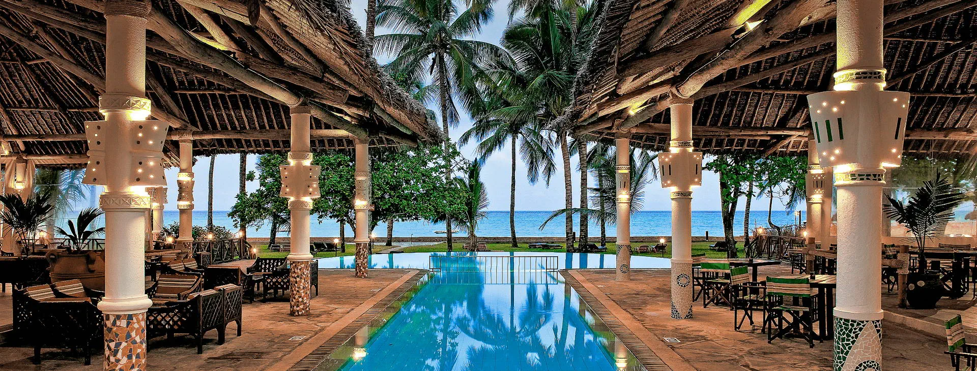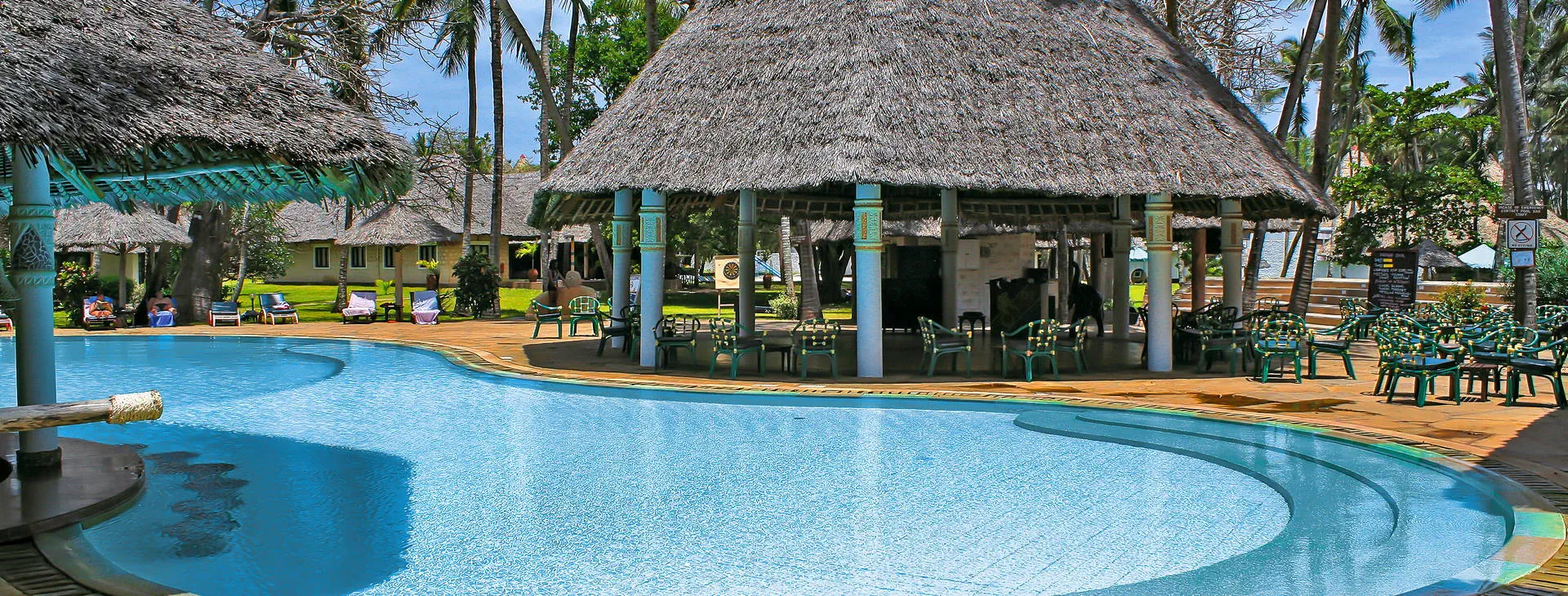 Położenie: Hotel otoczony przepięknym i dobrze utrzymanym tropikalnym ogrodem, zbudowany w oryginalnym, afrykańskim stylu swahili. Zlokalizowany na południowym wybrzeżu Mombasy, ok. 40 km do centrum miasta i ok. 45 km od lotniska. Plaża: Hotel znajduje się bezpośrednio przy publicznej, szerokiej plaży Galu z drobnym piaskiem. Leżaki, parasole i ręczniki kąpielowe dostępne bezpłatnie na terenie hotelowego ogrodu przy plaży. Do dyspozycji gości: Recepcja 24 h, 4 restauracje: główna, a'la carte włoska i a’la carte hinduska (bezpłatne-wymagana wcześniejsza rezerwacja) oraz a’la carte serwującą owoce morza w porze kolacji (wymagana rezerwacja, płatna dodatkowo), kawiarnia przy basenie serwująca ciepłe napoje i przekąski, a także 2 bary: główny oraz przy basenie serwujące napoje bezalkoholowe, lokalne alkoholowe, piwo, koktajle. Goście mogą korzystać z basenu ze słodką wodą z wydzieloną częścią dla dzieci leżaki, parasole i ręczniki kąpielowe dostępne bezpłatnie przy basenie. Ponadto: sala telewizyjna oraz sklep z pamiątkami. Goście mogą swobodnie przemieszczać się między hotelem Neptune Paradise oraz Neptune Village Beach Resort & SPA (animacje) i korzystać z barów oraz restuaracji. Pokoje: Hotel posiada 165 pokoi superior o pow. ok. 27 m2 dla max. 3 os. dorosłych, położonych w tradycyjnych 1-piętrowych domkach makuti (4 pokoje w jednym budynku). Wyposażone są w: łazienkę z prysznicem, suszarkę do włosów, indywidualnie sterowaną klimatyzację, TV Sat., bezpłatny sejf, serwis do przygotowywania kawy i herbaty, moskitierę (na zapytanie w recepcji), balkon lub taras. Na zapytanie i w miarę dostępności możliwość wstawienia mini lodówki. Za dopłatą dostępne pokoje: superior ocean front w pierwszym rzędzie od strony basenu z częściowym widokiem na ocean. Pokoje 4-osobowe na potwierdzenie. Wyżywienie: All Inclusive: śniadania (07:00-09:30), lunche (12:30-14:30) oraz obiadokolacje (19:00-21:30) w formie bufetu w restauracji głównej. Do posiłków podawane są: soki, kawa, herbata, lokalne piwo oraz wino. Przekąski w ciągu dnia (10:00-18:00) oraz napoje bezalkoholowe i lokalne alkohole serwowane w barach (10:00-24:00). Wyżywienie na objeździe: śniadania, obiady i kolacje zgodnie z opisem w programie wycieczki. Program sportowy i animacyjny: Hotel oferuje bogaty program animacyjny, m.in.: zabawy sportowe, gimnastyka, przedstawienia, pokazy mody, dyskoteka czynna do godz. 24:00 oraz afrykańskie wieczory tematyczne. Ponadto: kort tenisowy, siatkówka plażowa, łucznictwo, tenis stołowy, rzutki. Dla dzieci mini klub (4-12 lat). Dodatkowo płatne: centrum SPA, fryzjer, sporty wodne na plaży. Internet: Bezpłatny Internet Wi-Fi w częściach ogólnodostępnych hotelu. Kategoria lokalna: Neptune Village Beach Resort & SPA**** / zakwaterowanie na objeździe*** Strona www: