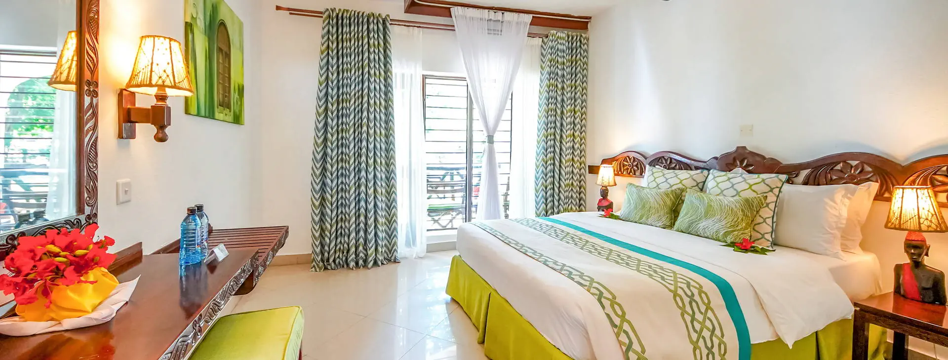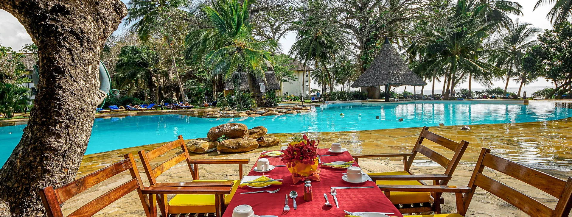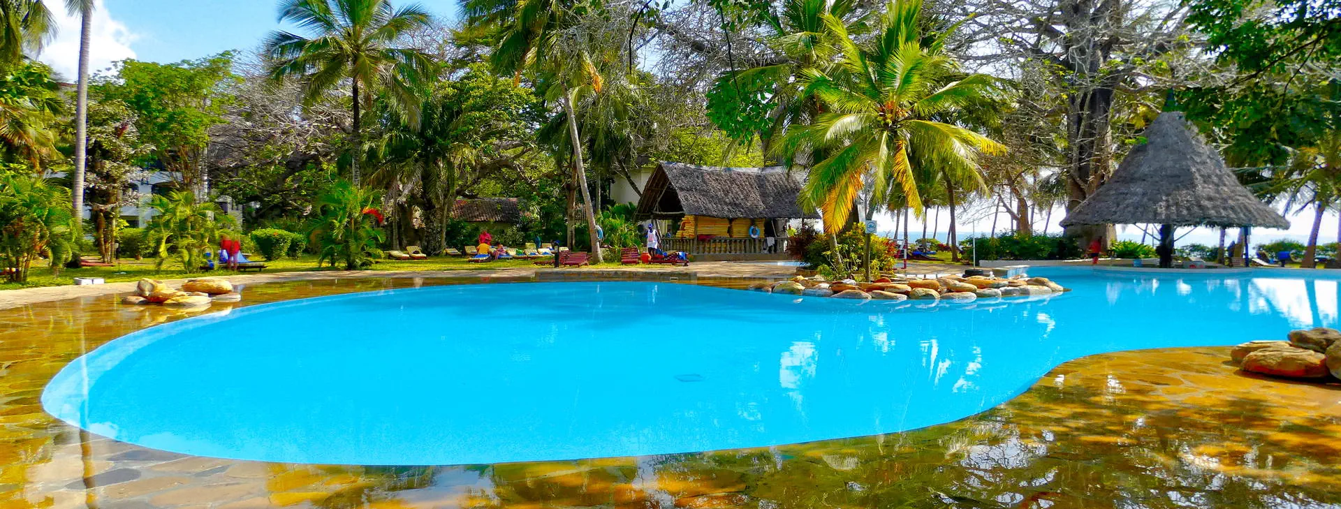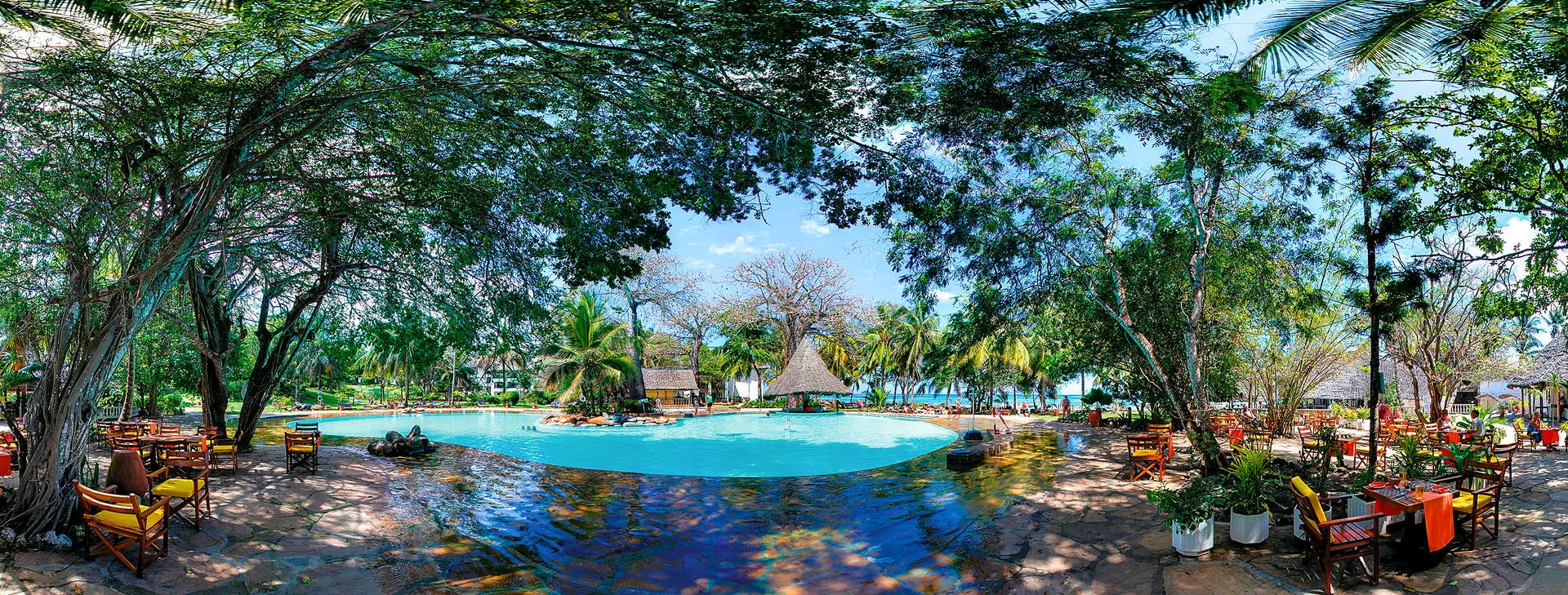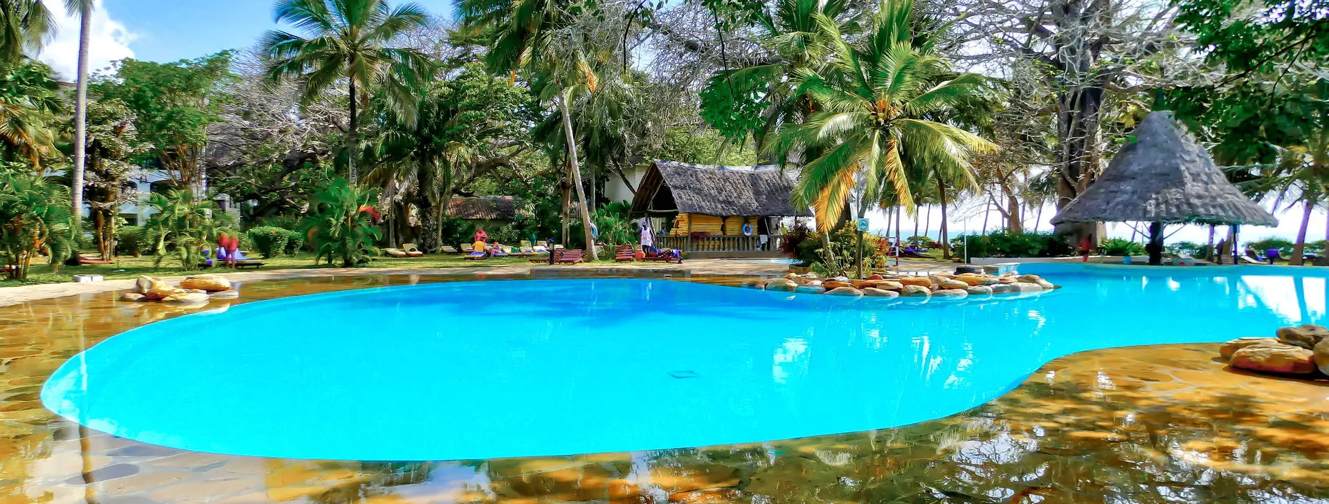 Położenie: Hotel położony jest na południowym wybrzeżu Mombasy, otoczony zadbanym ogrodem z pięknymi palmami i zjawiskowymi, wiekowymi baobabami, z których największy ma ponad 500 lat. Hotel zbudowany jest w lokalnym stylu swahili, składa się z kilku dwupiętrowych budynków rozmieszczonych na terenie ogrodu i przy plaży. Do lotniska w Mombasie ok. 47 km. Plaża: Hotel położony bezpośrednio przy piaszczystej, białej plaży Diani, uznawanej za najpiękniejszą w okolicy. Bezpłatne leżaki wśród palm na terenie ogrodu przy plaży. Do dyspozycji gości: Recepcja 24 h, przestronne lobby, 2 restauracje: główna Baobab ze stolikami wewnątrz i na tarasie (dania kuchni lokalnej oraz międzynarodowej) oraz restauracja Bistro przy basenie serwująca śniadania, lunche, dania z grilla i przekąski. 2 bary: przy basenie (10:00-18:00) i przy plaży (18:00-24:00). Goście mogą korzystać z basenu zewnętrznego oraz brodzika dla dzieci, otoczonym tarasem słonecznym z bezpłatnymi ręcznikami i leżakami. Ponadto: kantor, sklep z pamiątkami, fryzjer, salon piękności (płatne dodatkowo). Pokoje: Hotel dysponuje 150 pokojami o różnym standardzie, urządzonymi w typowym afrykańskim stylu. Pokoje standardowe typu Garden dla maksymalnie 3 os. dorosłych, wyposażone są w: łazienkę z prysznicem lub wanną, suszarkę do włosów, klimatyzację (od 17:00 do 09:00), wiatrak, moskitierę (na zapytanie w recepcji), telefon, płatny sejf, balkon lub taras z widokiem na ogród. Pokoje z bezpośrednim widokiem na plażę, dla max. 2 os. dorosłych i 1 dziecka (do 3 lat), dodatkowo posiadają mini lodówkę, TV Sat., zastaw do parzenia kawy i herbaty. Pokoje rodzinne ok. 39 m2, jednopomieszczeniowe, dla max. 4 os. dorosłych, wyposażone są jak pokoje Garden, posiadają 2 łazienki. Wyżywienie: All Inclusive: śniadania, lunche i obiadokolacje w formie bogatego bufetu. Podwieczorek w godz. 16:00-17:00. Lokalne napoje bezalkoholowe i alkoholowe dostępne w godzinach otwarcia barów (10:00-24:00). Raz w tygodniu dania z grilla z muzyką na żywo. Za dodatkową opłatą: dania z karty oraz importowane napoje alkoholowe. Wyżywienie na objeździe: śniadania, obiady i kolacje zgodnie z opisem w programie wycieczki. Program sportowy i animacyjny: Hotel prowadzi dzienny i wieczorny program animacyjny: zajęcia sportowe, siatkówka plażowa, fitness, zumba, badminton, gry i zabawy w wodzie. 2 korty tenisowe o twardej nawierzchni (brak oświetlenia, sprzęt w cenie), dyskoteka 6 razy w tyg. Ponadto: plac zabaw dla dzieci, tenis stołowy, rzutki i bilard. Za dodatkową opłatą: siłownia ok. 4 EUR/dzień, sporty wodne, nurkowanie, rejsy łodzią ze szklanym dnem, łowienie ryb. Internet: Bezpłatny Internet Wi-Fi w lobby i sali telewizyjnej. Kategoria lokalna: Papillon Lagoon Ree***+/zakwaterowanie na objeździe*** Strona www: www.rexresorts.com Naszym zdaniem: Przyjemny hotel, którego głównym atutem jest położenie przy pięknej, szerokiej plaży Diani z drobnym, białym piaskiem. Goście szczególnie cenią hotel za bardzo dobrą kuchnię, piękny ogród oraz atmosferę, która sprzyja relaksowi. Polecamy zarównoparom jak i rodzinom z dziećmi ze względu na przestronne pokoje oraz bogate animacje. Bardzo dobra oferta w atrakcyjnej cenie.