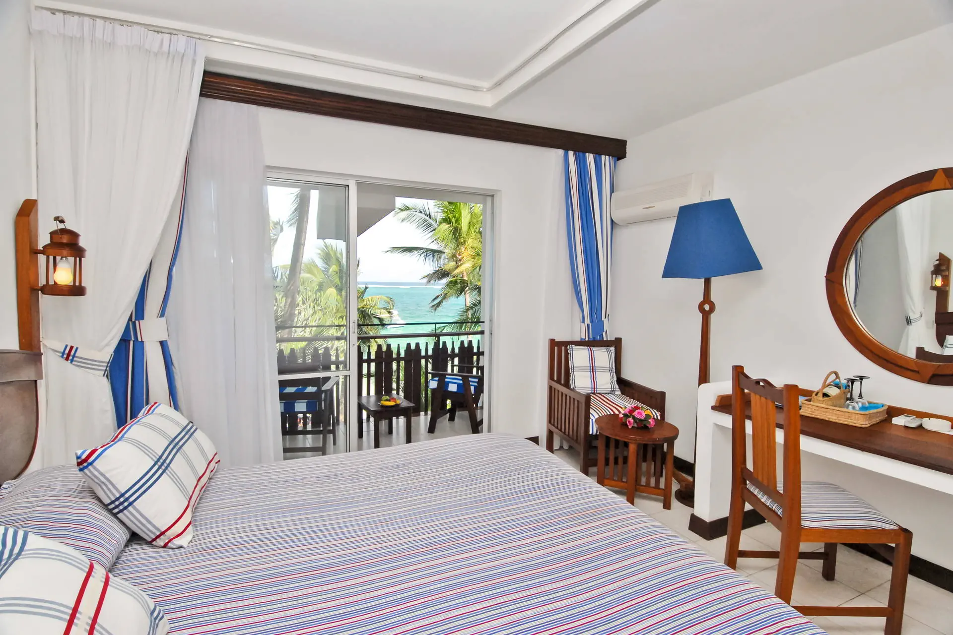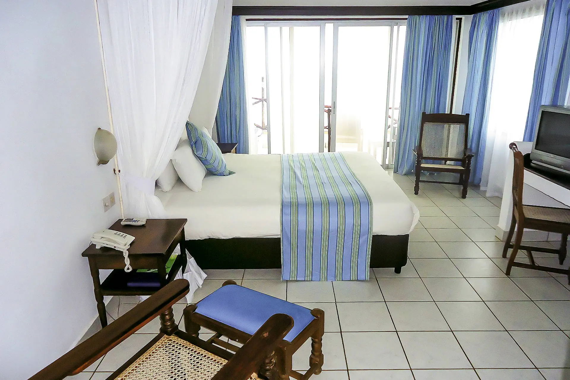 Położenie Stylowy kompleks wypoczynkowy, otoczony przepięknym i doskonale utrzymanym tropikalnym ogrodem, zlokalizowany na północnym wybrzeżu Mombasy. Hotel składa się z dwu i trzypiętrowych budynków hotelowych, zbudowanych w tradycyjnym stylu swahili. Niedaleko hotelu znajduje się farma krokodyli i Park Hallera, czyli ZOO zwierząt afrykańskich, powstałe na zrekultywowanym terenie dawnej kopalni, gdzie 2 razy w ciągu dnia odbywa się karmienie żyraf. Do centrum Mombasy ok. 10 km i ok. 20 km od lotniska. Plaża Hotel usytuowany bezpośrednio przy plaży Nyali z białym piaskiem. Bezpłatne leżaki i parasole na terenie ogrodu przy plaży. Do dyspozycji gości Recepcja 24 h, 3 restauracje: główna, restauracja a’la carte serwująca owoce morza (dodatkowo płatna) i włoska (bezpłatna po wcześniejszej rezerwacji stolika w recepcji). 4 bary, w tym lobby bar otwarty 24 h (po 24:00 dodatkowo płatny). 4 baseny ze słodką wodą (sportowy, przy plaży, z jacuzzi i wodospadem oraz brodzik dla dzieci), bezpłatne leżaki, parasole i ręczniki przy basenie. Ponadto: kantor, sklepik z pamiątkami, salon piękności. Pokoje Hotel posiada 236 pokoi stylowo urządzonych, o różnym standardzie. Pokoje typu standard (pow. ok. 18 m2) z widokiem na otoczenie hotelu wyposażone są w: łazienkę (prysznic, suszarka do włosów), indywidualnie sterowaną klimatyzację, TV, telefon, sejf, mini lodówkę, zestaw do przygotowywania kawy i herbaty oraz balkon lub taras. Pokoje superior są większe, posiadają dodatkowo widok na ogród. Za dopłatą i na potwierdzenie pokoje superior i deluxe z widokiem na ocean. Wyżywienie All Inclusive: śniadania, lunche i obiadokolacje w formie bufetu. Lokalne napoje bezalkoholowe i alkoholowe i dostępne w barach (10:00-23:00) oraz przekąski (12:00-18:00). Program sportowy i animacyjny Hotel oferuje bogate dzienne i wieczorne animacje m.in.: aerobik w wodzie, zabawy sportowe, przedstawienia. Mini klub i zajęcia edukacyjne dla dzieci (m.in.: z biologii morza, edukacji ekologicznej). 2 korty tenisowe (oświetlenie i sprzęt dodatkowo płatny), boiska sportowe, rzutki, tenis stołowy. Na plaży boisko do siatkówki plażowej i centrum sportów wodnych (dodatkowo płatne): nauka nurkowania, wypożyczalnia sprzętu wodnego. W pobliżu hotelu znajduje się 18-dołkowe pole golfowe. Internet Bezpłatny Internet Wi-Fi w lobby oraz w pokojach. Kategoria lokalna **** Naszym zdaniem Sprawdzony i lubiany hotel, z bogatym All Inclusive i szeroką ofertą sportową i animacyjną. Doskonały hotel na rodzinne wakacje czy wypad z przyjaciółmi, tuż przy pięknej plaży z białym piaskiem. Pokoje czyste i przestronne. W pobliżu hotelu liczne atrakcje!