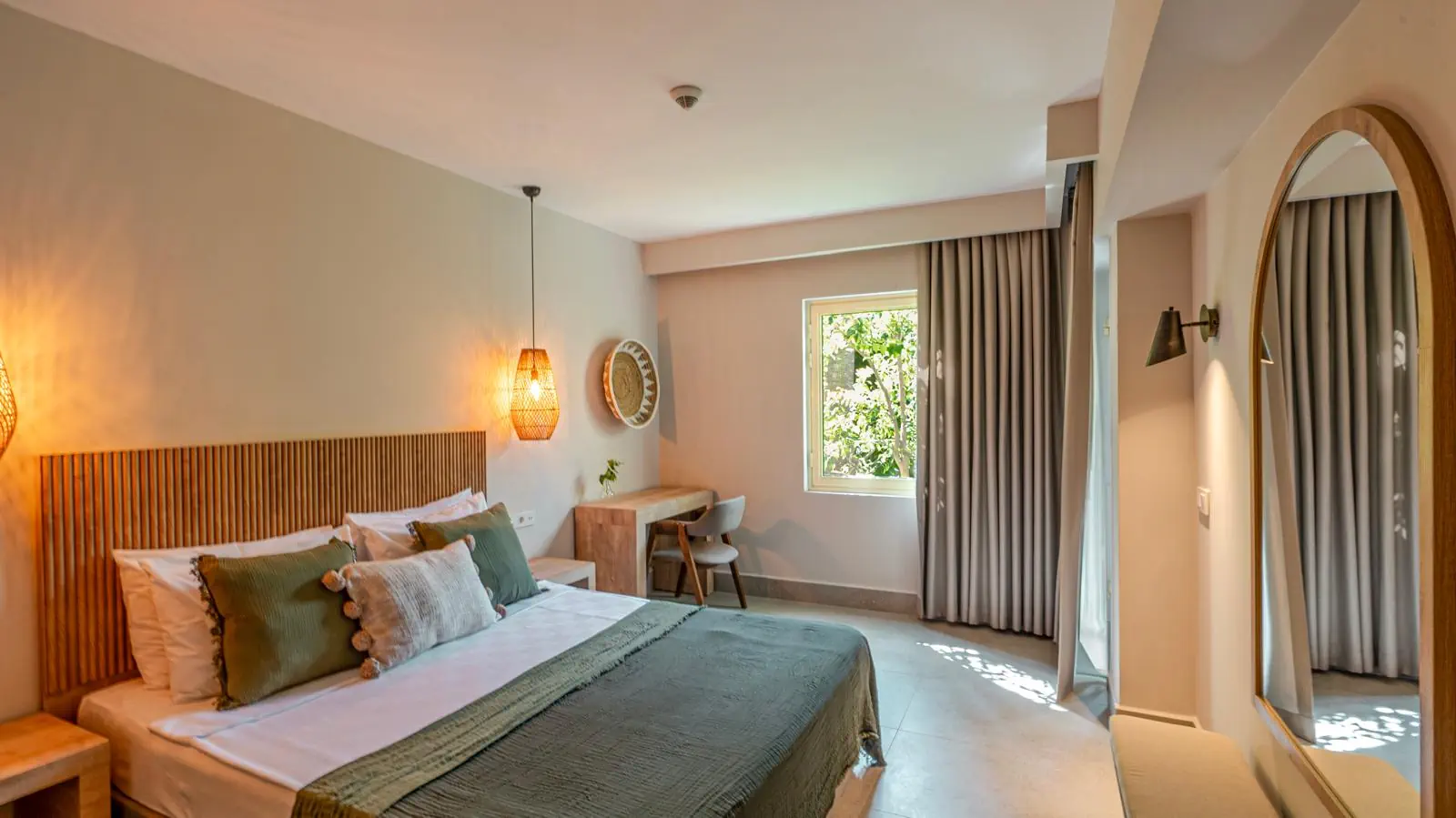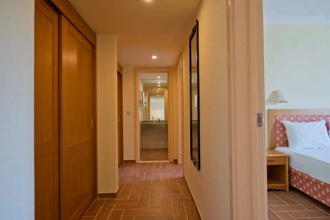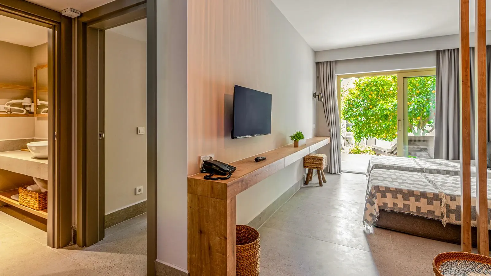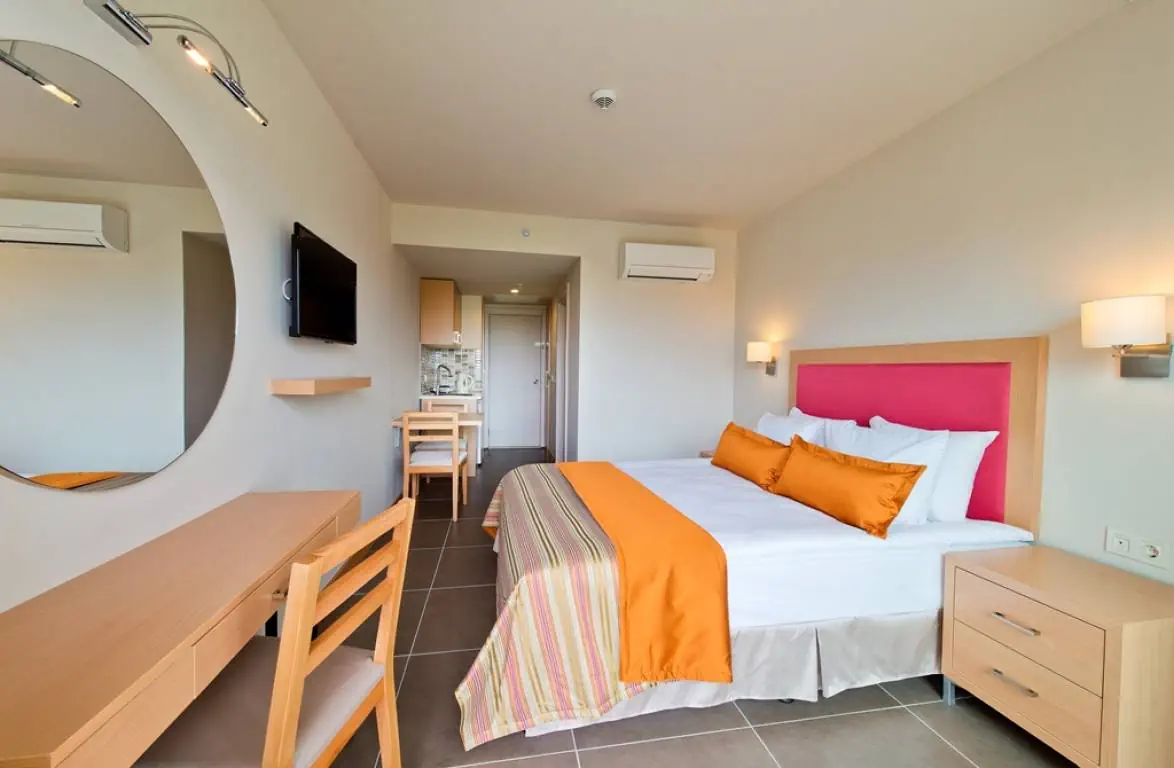 Dla max. 3 osób, Przestrzeń zewnętrzna: Balkon lub taras, Kanały telewizji: Angielski, Telefon w pokoju, Aneks kuchenny, wanna lub prysznic , Powierzchnia pokoju: ok. 42 m2, Dostawka: łóżko rozkładane, Rodzaj podłogi: płytki, Sprzątanie codziennie, Salon, część jadalniana, 1 sypialnia, Drzwi łączące między pokojami, Maksymalna liczba osób dorosłych: 2, Maksymalna liczba dzieci: 2, Widok na ogród i basen, Liczba łazienek: 1, Liczba toalet: 1, Klimatyzacja: Klimatyzacja indywidualna