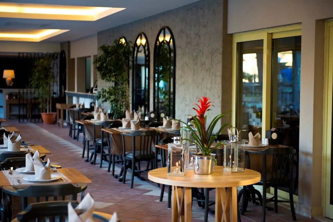 Śniadanie (08:00 - 10:00) - main resturant, stół szwedzki, Obiad (12:30 - 14:00) - main resturant, stół szwedzki, Podwieczorek (15:00 - 16:00) - main resturant, określone menu, Kolacja (19:00 - 21:00) - main resturant, stół szwedzki, alacart resturant (08:00 - 21:00) (08:00 - 21:00), bez limitu, Kuchnia: Włoska, Meksykańska, Turecka, Wymagana rezerwacja: Nie ¹⁾, main bar (11:00 - 23:30), Napoje: alkohole lokalne, napoje bezalkoholowe (11:00 - 23:30), pool bar (11:00 - 18:00), Napoje: alkohole lokalne, napoje bezalkoholowe (11:00 - 18:00), napoje bezalkoholowe, alkohole lokalne, cukiernia ¹⁾, room service ¹⁾ ¹⁾ - dodatkowo płatne