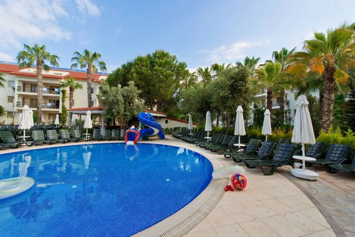 Doskonały ośrodek położony w pięknym zabytkowym mieście Side. Jest to idealne miejsce na wakacyjny wypoczynek. Cztery główne budynki rozlokowane na ogromna przestrzeń wypełnionej zielonym ogrodem z drzewami i palmami.