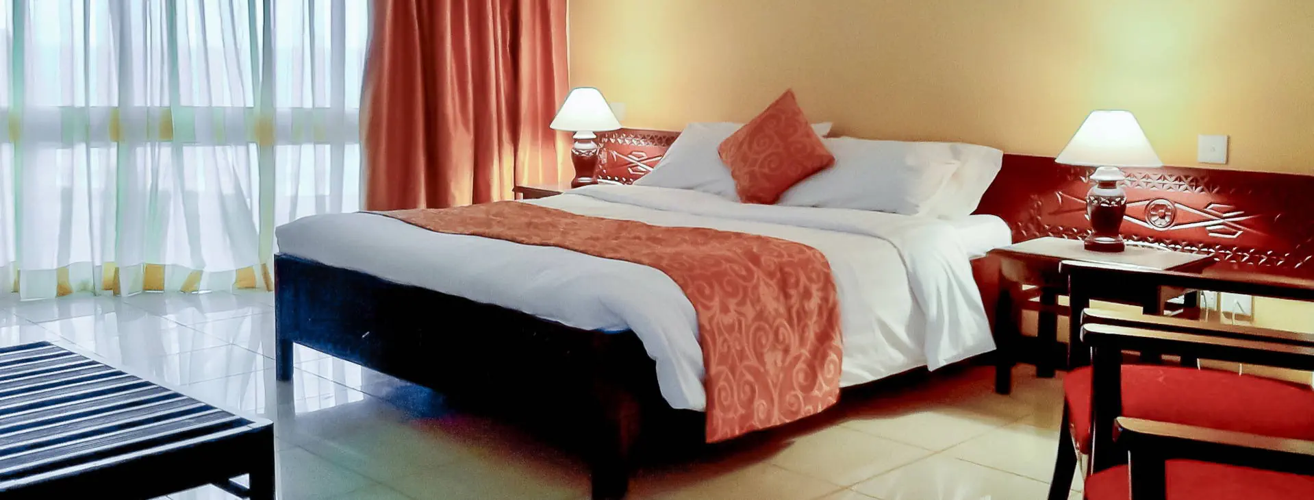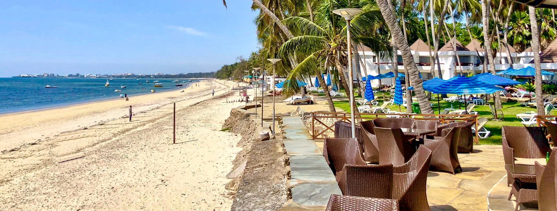 Położenie: Przyjazny, kameralny hotel położony na północnym wybrzeżu Mombasy, w tropikalnym ogrodzie. Niedaleko Park Hallera, czyli ZOO zwierząt afrykańskich oraz centrum handlowe z restauracjami i dyskotekami. Do centrum Mombasy ok. 14 km, ok. 20 km do lotniska w Mombasie. Plaża: Hotel położony bezpośrednio przy szerokiej, piaszczystej plaży Bamburi. Leżaki, parasole i ręczniki kąpielowe dostępne bezpłatnie na terenie hotelu przy plaży. Do dyspozycji gości: Recepcja 24 h, lobby, 2 restauracje: główna Acacia i a’la carte Frangipani. 3 bary: przy plaży, bar z przekąskami Frangipani, bar Jacaranda. Basen główny o nieregularnym kształcie oraz mniejszy basen otoczony tarasem słonecznym z leżakami, parasolami i ręcznikami kąpielowymi dostępnymi bezpłatnie. Ponadto: sala konferencyjna, sklepik z pamiątkami na plaży. Wyżywienie: Śniadania i obiadokolacje najczęściej w formie bufetu w restauracji głównej, po południu również lekki podwieczorek. Napoje do kolacji są dodatkowo płatne. Za dopłatą opcja Full Board: śniadania, lunche i obiadokolacje w formie bufetu w restauracji głównej (napoje do lunchu i kolacji dodatkowo płatne) lub opcja All Inclusive - 3 posiłki dziennie w formie bufetu w restauracji głównej, lokalne napoje alkoholowe i bezalkoholowe (napoje, woda mineralna, soki, lokalne wino, piwo, drinki, mocne alkohole) w barze Jacaranda w godz. 11:00-21:00 oraz lunche/przekąski (pizza, frytki itp.) w restauracji Acacia. Bar Frangipani dodatkowo płatny. Program sportowy i animacyjny: Hotel prowadzi dzienne i wieczorne animacje m.in.: muzyka na żywo, pokazy akrobatyczne i taneczne. Ponadto: piłka wodna, aqua aerobik, siatkówka plażowa, dyskoteka. Płatne dodatkowo: centrum sportów wodnych nieopodal hotelu. Internet: Bezpłatny Internet Wi-Fi dostępny w ogólnodostępnych częściach hotelu. Kategoria lokalna: *** Strona www: