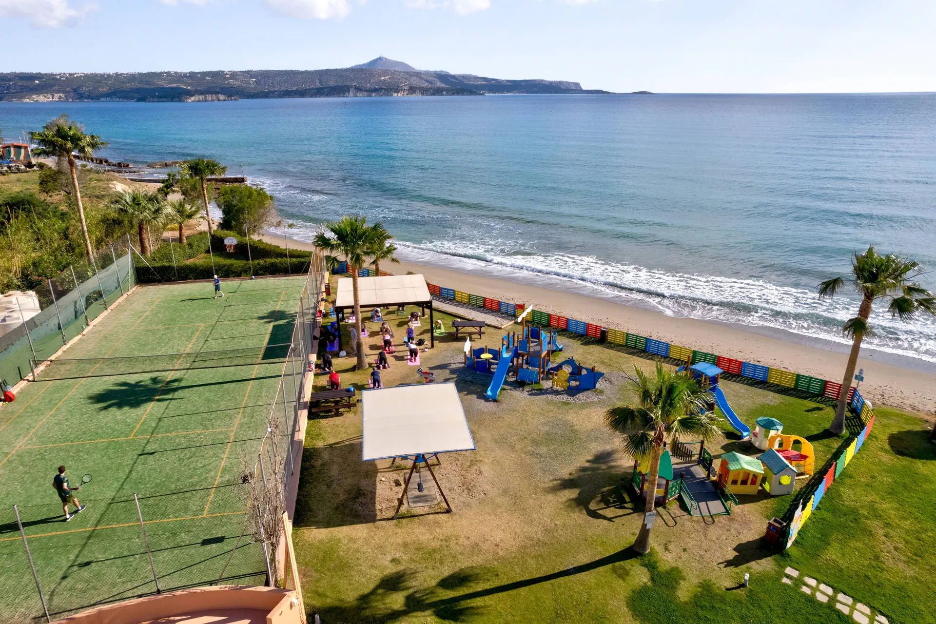 Internet W ogólnodostępnych częściach hotelu (także w pokojach) internet Wi-Fi - bezpłatny Kategoria lokalna A Naszym zdaniem Elegancki hotel dla wymagających, a jednocześnie istny raj dla rodzin z dziećmi, ze względu na infrastrukturę, rodzinną atmosferę i figloklub dla dzieci w okresie wakacyjnym. Obsługa na wysokim poziomie. Polecamy szczególnie! Strona www Położenie Hotel położony jest w spokojnej i cichej okolicy w miejscowości Kiani Akti. Obiekt znajduje się w odległości ok. 2,5 km od miasteczka Kalives. Centrum Chanii oddalone jest o 17 km. Przystanek autobusowy zlokalizowany jest w odległości ok. 100 m od hotelu. Rozkład jazdy autobusów dostępny jest w recepcji. Kalives oferuje spory wybór tawern, supermarketów i punktów usługowych.Do lotniska w Chanii ok. 24 km.Do lotniska w Heraklionie ok. 128 km. Plaża Plaża tuż przy hotelu. Piaszczysto-żwirowa. Leżaki i parasole słoneczne wliczone w cenę. Do dyspozycji gości Kompleks składający się z 3 części: Kiani Beach I, Kiani Beach II oraz Kiani Beach III. Część Kiani I przeszła gruntowną modernizację w 2020 r. Część Kiani Beach II część hotelu wybudowana w 2018 r. Część Kiani Beach III to nowa część hotelu wybudowana w 2024 r. Obiekt składa się z wielu 2-piętrowych budynków.Recepcja 24h/7, lobby. 1 basen dla dorosłych, brodzik dla dzieci, basen wewnętrzny. Leżaki i parasole słoneczne przy basenie i na plaży wliczone w cenę. Ręczniki plażowe za darmo. Oddzielna restauracja, bar przy basenie.Pozostałe informacje: mini market, sklepik z galanterią i pamiątkami, przechowalnia bagażu, łazienki do odświeżenia przed podróżą. Pokoje Hotel oferuje przestronne i gustownie urządzone pokoje różnego typu w trzech częściach kompleksu. Do dyspozycji naszych Klientów są: - pokoje standardowe -2-osobowe (możliwość 1 dostawki), 1-pomieszczeniowe pokoje z widokiem na morze - za dopłatą, - pokoje rodzinne (sypialnia z dodatkową sofą wydzielona przesuwanymi drzwiami w niektórych pokojach) - widok na morze za opłatą W każdym pokoju aneks kuchenny z lodówką i małą kuchenką elektryczną, czajnikiem i podstawową zastawą, telefon i TV-sat. Każdy pokój posiada balkon lub taras. Indywidualnie sterowana klimatyzacja wliczona w cenę. Łazienka (wc, prysznic lub wanna i suszarka do włosów). Sejf bezpłatnie. Na życzenie hotel udostępnia bezpłatnie łóżeczko dla dziecka do 2 lat.Można również zamówić krzesełko do karmienia do pokoju. Wyżywienie Rodzaje wyżywienia i posiłki: All Inclusive: Śniadania: 08:00 - 10:00. Obiady: 13:00 - 14:30. Obiadokolacje: 19:00 - 21:00. Przekąski, kanapki, ciasta, ciastka i lody: 11:00 - 12:00 oraz 16:00 - 18:00. Lody dostępne również w czasie obiadów i kolacji w bufecie. Podczas posiłków nielimitowane napoje bezalkoholowe, alkoholowe (lokalne piwo, wino, ouzo i raki) i soki (bez świeżo wyciskanych). Bary: Bar Dionizos przy basenie: 11:00 - 23:00, nielimitowane lokalne napoje (po godz. 23:00 napoje płatne). W barze Dionizos dostępne są konkretne rodzaje napojów: piwo, wino białe i czerwone, ouzo, raki, whisky, rum, gin, wódka, tequila, kawa, herbata oraz napoje bezalkoholowe. Program sportowy i animacyjny Dla każdego: boisko do piłki nożnej, boisko do padla (godzinna dziennie gratis, rezerwacja i odbiór sprzętu w recepcji) i do siatkówki plażowej. Tylko dla dorosłych: siłownia, 1 x w tygodniu muzyka na żywo (noc grecka). Dla dzieci: gry i zabawy w ciągu dnia, 6 x w tygodniu wieczorne show i mini-disco dla dzieci, duży drewniany statek piracki ze zjeżdżalnią przy plaży, plac zabaw z huśtawkami, domkami i innymi zabawkami, mini klub. Za dodatkową opłatą: bilard (2 EUR/gra), kort tenisowy (10 EUR/godz., w tym sprzęt) oraz tenis stołowy (2 EUR/godz.).