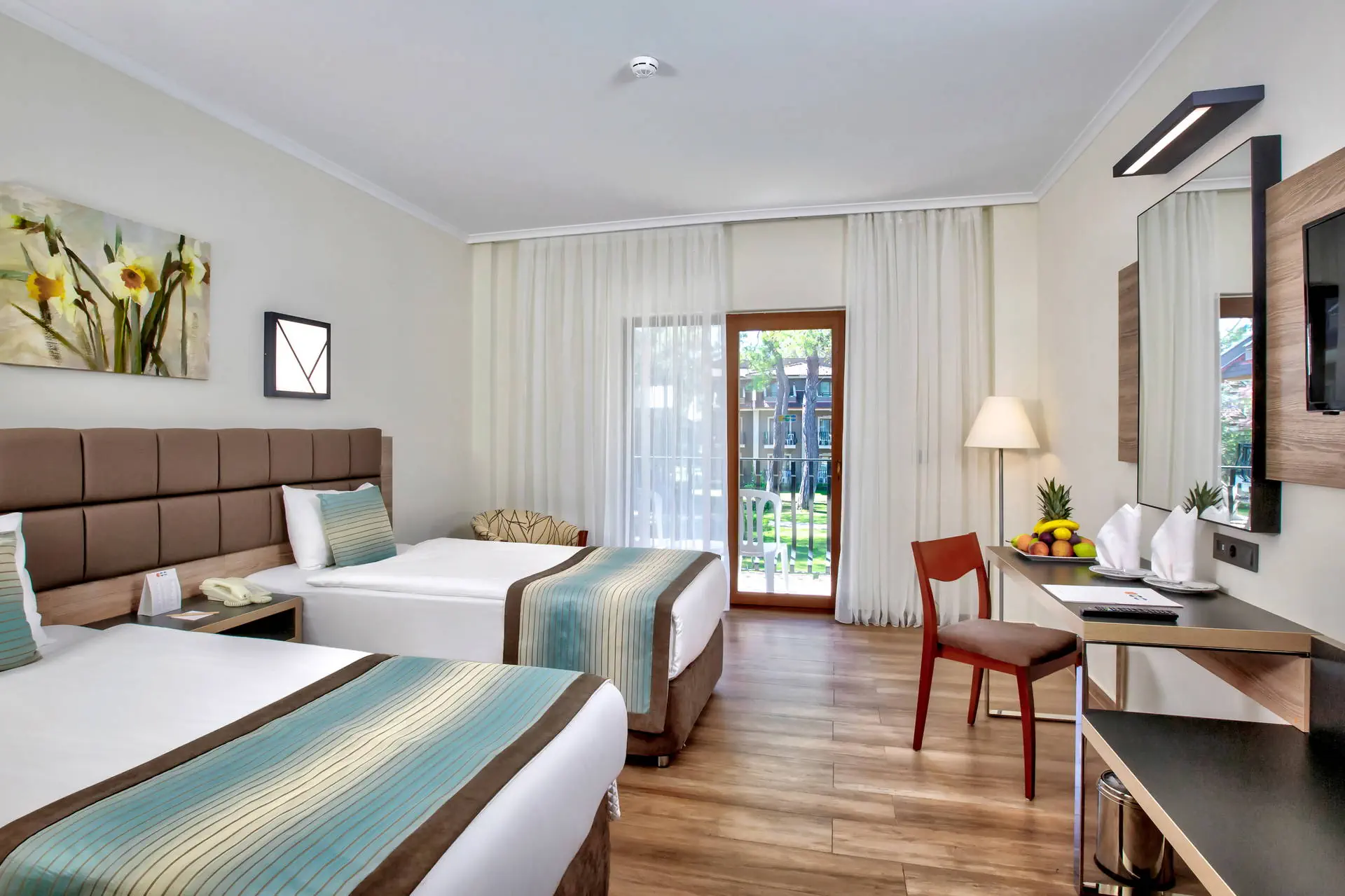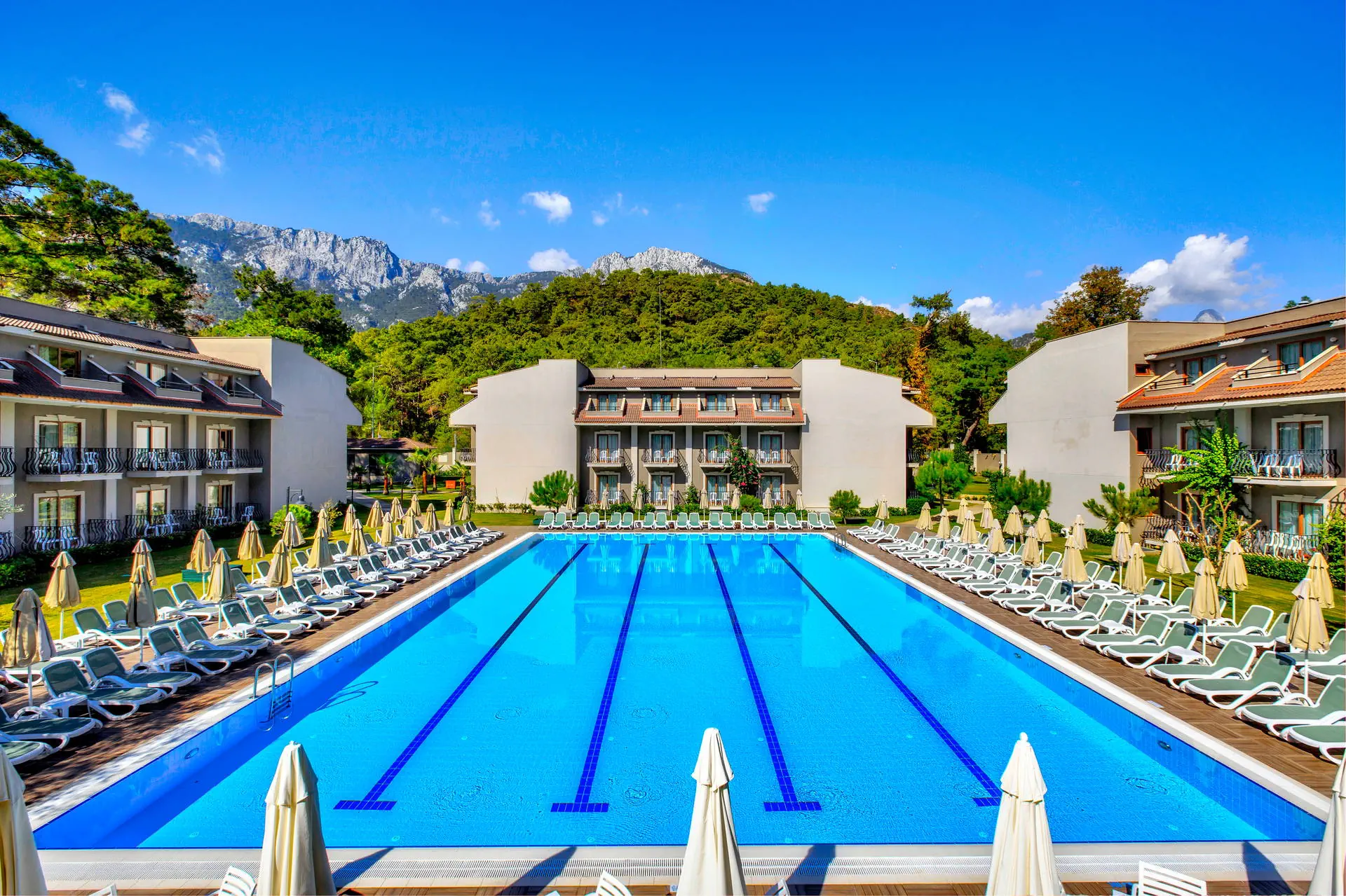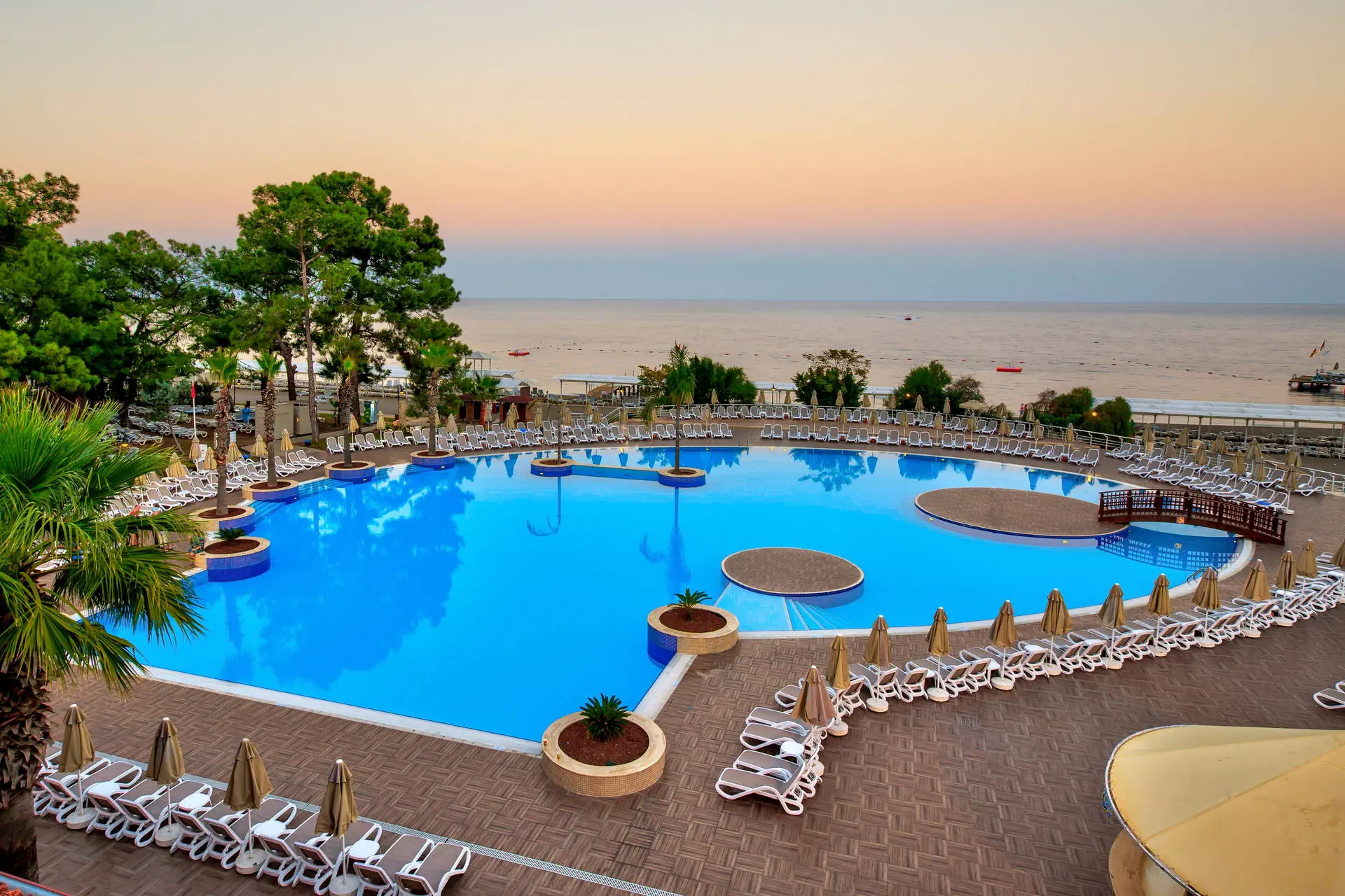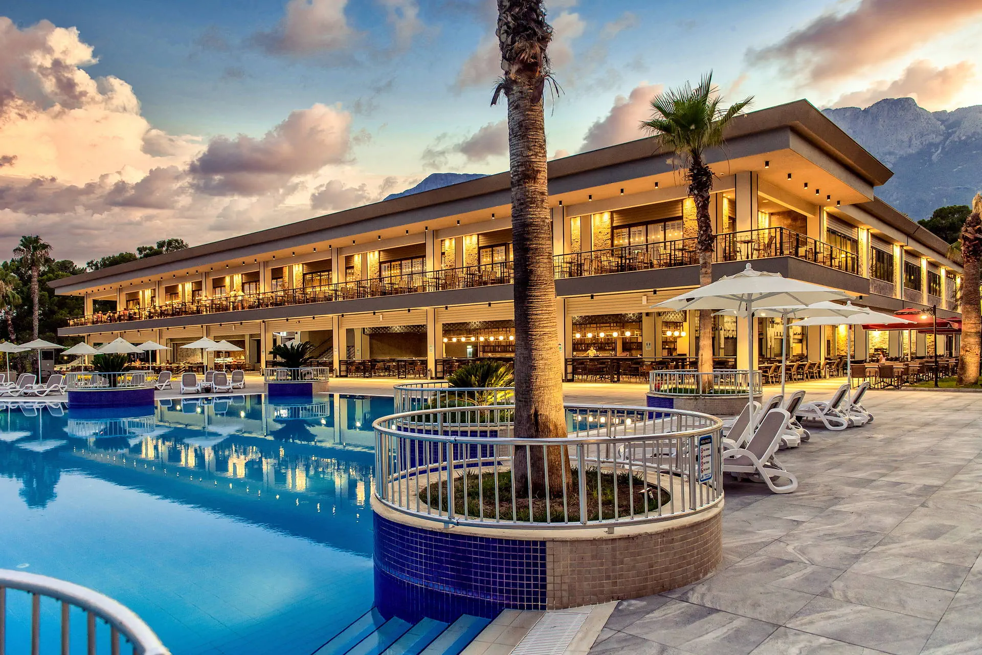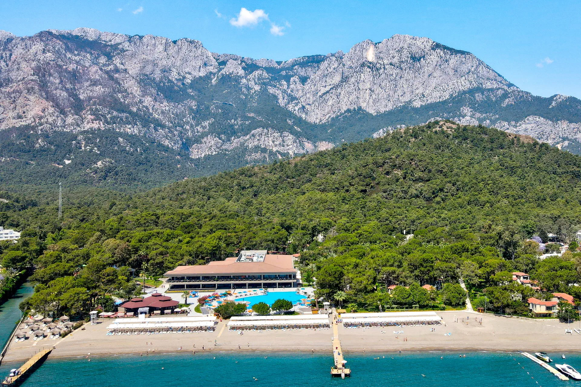 Do dyspozycji gości Recepcja i lobby dostępne dla Gości hotelu. 3 baseny, w tym basen główny, basen relaksacyjny, basen dla dzieci, zjeżdżalnie dla dzieci i dorosłych. Atrakcje dla dzieci: mini klub, plac zabaw, animacje wg programu hotelowego. Restauracje: restauracja główna z częścią stolików na tarasie, Food Court oferujący przekąski w formie a'la carte, 6 barów (m.in. w lobby, przy basenie, przy Spa, cukiernia). Dodatkowo płatne: wypożyczenie samochodu lub roweru, pralnia, market, lekarz. Plaża Plaża tuż przy hotelu.Prywatna, szeroka, żwirowa plaża. Ręczniki, leżaki i parasole dostępne bezpłatnie, łóżka balijskie dostępne za dodatkową opłatą po wcześniejszej rezerwacji. Wyżywienie Rodzaje wyżywienia i posiłki: Ultra All Inclusive: Śniadanie: 07:00 - 10:00. Późne śniadanie: 10:00 - 11:00. Lunch: 12:30 - 14:00. Obiadokolacja: 19:00 - 21:00. Późna kolacja: 24:00 - 06:00. Szeroki wybór przekąsek w Food Court: 11:00 - 18:00. Tradycyjny turecki przysmak gözleme: 11:00 - 16:00. Desery: 11:00 - 24:00. Lody: 12:00 - 18:00. Restauracje: Główna restauracja w formie bogatego bufetu. Bary: Wybrany bar: napoje bezalkoholowe, lokalne alkohole i wybrane alkohole importowane dostępne 24 h. Program sportowy i animacyjny Dla każdego: bogaty program animacyjny w dzień (aerobik, lekcje tańca, koszykówka, boccia, siatkówka plażowa) i wieczorem (muzyka na żywo, karaoke, profesjonalne pokazy, imprezy na plaży, wieczory tematyczne); sauna sucha i parowa, łaźnia turecka, siłownia, kort tenisowy. Dla dzieci: hotelowy mini club oraz animacje (4-11 lat). Za dodatkową opłatą: lekcje tenisa oraz oświetlenie kortu, narty wodne, lekcje surfowania. Internet Wi-Fi dostępne bezpłatnie na terenie całego obiektu. Kategoria lokalna ***** Naszym zdaniem Hotel, położony w otoczeniu naturalnego piękna, zaledwie kilka kroków od plaży, oferuje komfortowe warunki i wiele atrakcji. Bliskość Kemer umożliwia łatwe odkrywanie okolicy. To doskonałe miejsce na rodzinne wakacje, które zadowoli nawet najbardziej wymagających Gości. Dzięki dogodnej lokalizacji i przemyślanej infrastrukturze, hotel jest idealnym wyborem dla osób ceniących relaks w pięknym otoczeniu. Strona www www.kimeroshotels.com Położenie Hotel znajduje się 46 km od lotniska w Antalyi. Do centrum Kemer jest około 6 km. Obiekt położony jest w Goynuk, malowniczo otoczony zadbanym, dużym ogrodem i górami.