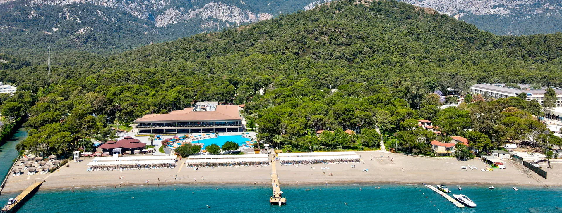 Położenie: Luksusowy hotel malowniczo otoczony lasem i górami, zlokalizowany w Goynuk, tuż przy szerokiej, pięknej plaży. Do centrum Kemer ok. 6 km i 46 km od lotniska w Antalyi. Hotel składa się z jedno, lub dwupiętrowych villi (odnowiony w 2016 r.) Plaża: Prywatna, żwirowa plaża. Ręczniki, leżaki i parasole dostępne są bezpłatnie. Do dyspozycji gości: Recepcja, lobby, restauracja główna, restauracja ala carte (płatna 20 USD/os., wymagana rezerwacja), 6 barów m.in.: w lobby, przy basenie, przy spa. Baseny: główny, relaksacyjny, basen dla dzieci, zjeżdżalnie dla dzieci i dorosłych. Za dodatkową opłatą: możliwość wypożyczenia samochodu oraz roweru, pralnia, market, lekarz. Wyżywienie: Ultra All Inclusive – posiłki w formie bufetu w wyznaczonych restauracjach i barach: śniadanie (07:00-10:00), późne śniadanie (10:00-11:00), lunch (12:30-14:00), obiadokolacja (19:00-21:00), późna kolacja (24:00-06:00), przekąski (11:00-18:00), tradycyjny turecki przysmak gözleme (11:00-16:00), desery (11:00:24:00), lody (12:00-18:00). Napoje bezalkoholowe, lokalne alkohole i wybrane alkohole importowane dostępne 24 h w wybranym barze. Program sportowy i animacyjny: Hotel prowadzi bogaty program animacyjny dla dzieci i dorosłych w dzień (m.in. aerobik, lekcje tańca, koszykówka, boccia, siatkówka plażowa) i wieczorem (m.in. muzyka na żywo, karaoke, profesjonalne pokazy, imprezy na plaży, wieczory tematyczne) sauna, łaźnia parowa, siłownia. Dla dzieci: 6 x w tygodniu figloklub z polskim animatorem (od połowy czerwca do połowy września), hotelowy mini club oraz animacje (4-11lat). Za dodatkową opłatą: lekcje tenisa oraz oświetlenie kortu, narty wodne, lekcje surfowania. Internet: Wi-Fi dostępne bezpłatnie. Kategoria lokalna: ***** Strona www: www.kimeroshotels.com Naszym zdaniem: Idealny hotel na rodzinne wakacje! Osoby, które cenią sobie wypoczynek w hotelu zapewniającym szereg atrakcji oraz komfortową architekturę w otoczeniu naturalnego piękna tuż przy plaży będą zachwycone! Dodatkowym atutem jest bliskość Kemer. Polecamy również wymagającym Klientom.