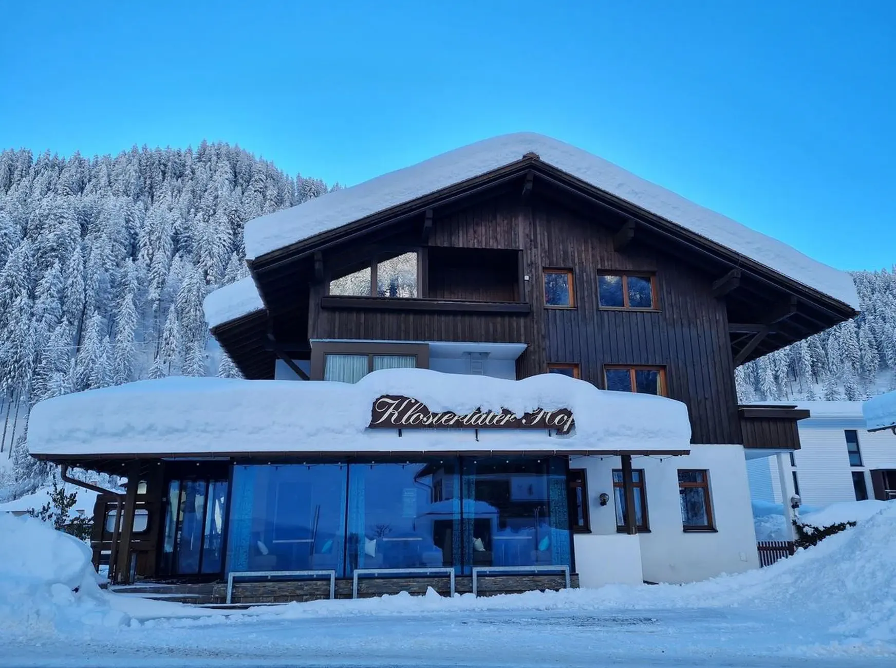 hol, narciarnia, winda, sala śniadaniowa, restauracja, bar, taras, ogródek piwny.