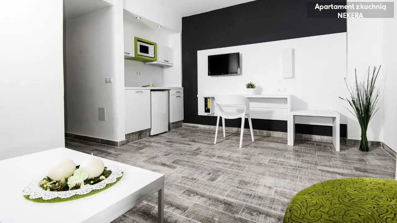 Studio z kuchnią - powierzchnia 31 m² - maksymalnie 2 osoby - złączone dwa pojedyncze łóżka - balkon z widokiem na basen lub ulice - łazienka z prysznicem - aneks kuchenny - telewizor - czajnik - lodówka - sejf (za opłatą) Pokój dwuosobowy - powierzchnia 31 m² - maksymalnie 2 osoby - złączone dwa pojedyncze łóżka - balkon z widokiem na basen lub ulice - łazienka z prysznicem - biurko i krzesło - telewizor - mini-bar - sejf (za opłatą) Apartament z kuchnią - powierzchnia 46 m² - maksymalnie 4 osoby - połączone dwa pojedyncze łóżka - balkon z widokiem na basen lub ulice - łazienka z prysznicem - kuchnia - lodówka - czajnik - rozkładana sofa - przestronna szafa - stolik kawowy - telewizor - mini-bar - sejf (za opłatą)