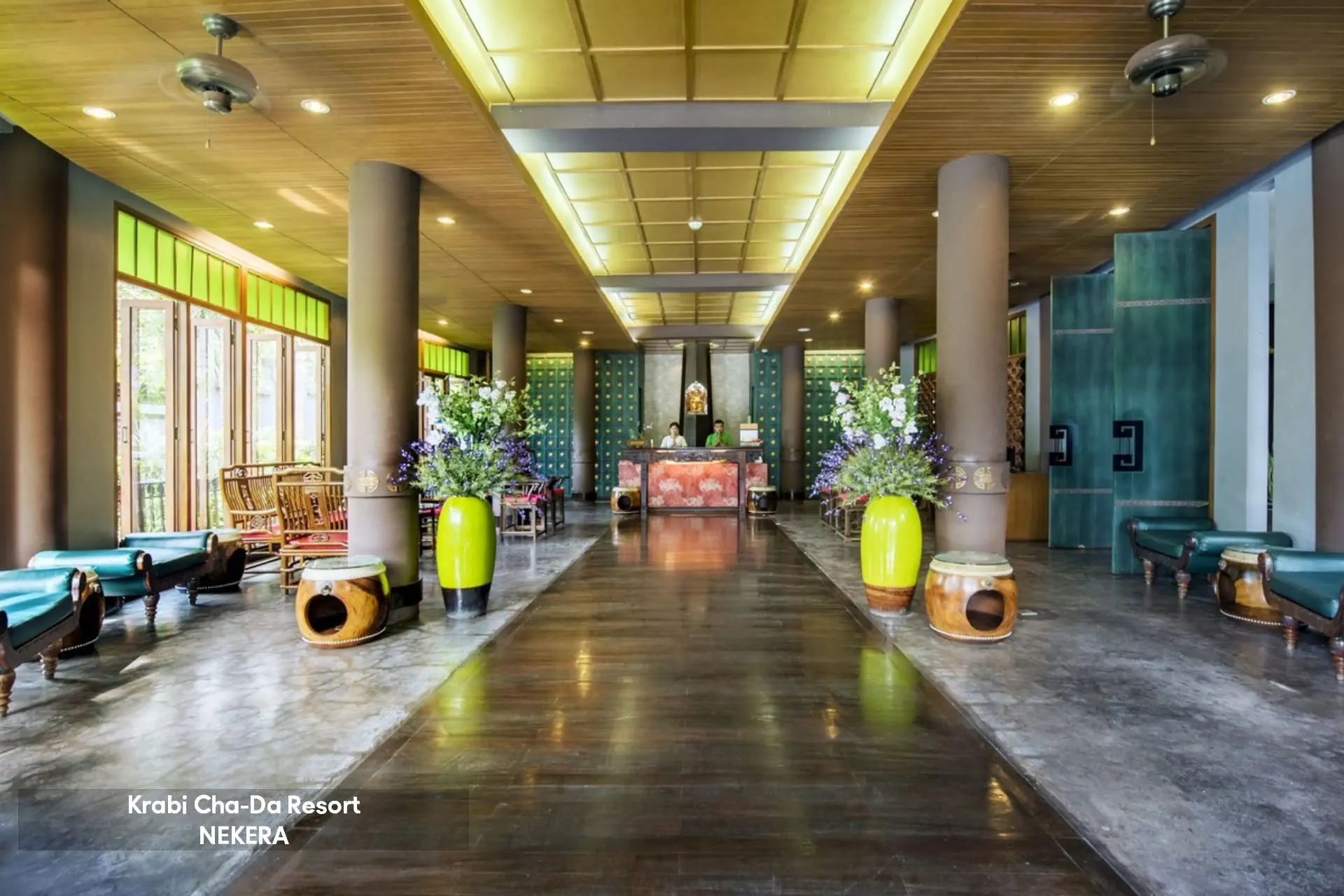 • czterogwiazdkowy • 84 pokoje • 6-piętrowy budynek w stylu tajskim • lobby z miejscami do wypoczynku • całodobowa recepcja • tropikalny ogród z elementami wodnymi