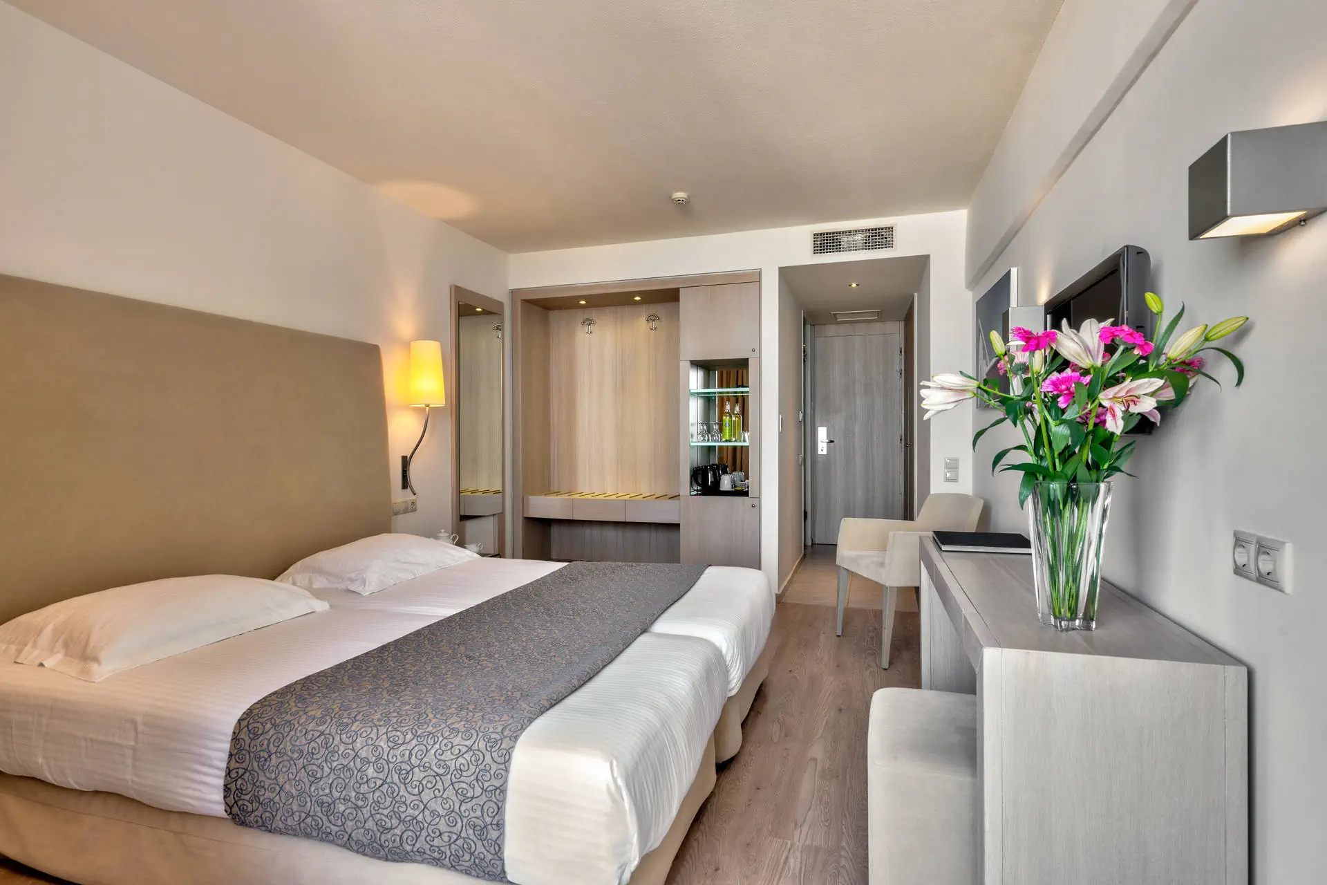 Położenie Hotel położony jest kilka minut spacerem od centrum Rethymnonu (500 m). Przystanek autobusowy mieści się 150 m od hotelu. W okolicy znajdziemy tawerny, sklepy i bary. Do lotniska w Chanii ok. 69 km.Do lotniska w Heraklionie ok. 82 km. Plaża Plaża oddalona o około 30 metrów od hotelu. Przejście na plażę prowadzi przez ulicę. Piaszczysta i szeroka. Leżaki i parasole dostępne bezpłatnie. Oznaczona Błękitną Flagą. Do dyspozycji gości Całodobowa recepcja, lobby. 1 basen zewnętrzny ze słodką wodą, 1 basen kryty, leżaki i parasole przy basenie - bezpłatne. Restauracje: restauracja główna Thalassi, bar, bar przy basenie. Taras słonecznyPozostałe informacje: sala telewizyjna, przechowalnia bagażu, parking. Pokoje Hotel oferuje 94 eleganckich pokoi różnego rodzaju– wyremontowanych w 2014r. Wszystkie nowocześnie wyposażone w łazienkę (prysznic, wc i suszarkę do włosów), klimatyzację, TV-sat, telefon, lodówkę, sejf, zestaw do robienia kawy i herbaty oraz balkon. Wyżywienie Rodzaje wyżywienia i posiłki: Śniadania: 07:30 - 10:00, w formie bogatego bufetu. Obiadokolacje: 19:00 - 21:00, w formie bogatego bufetu. Możliwość dopłaty do lunchu. Bary: Bar: napoje bezalkoholowe oraz lokalne napoje alkoholowe serwowane w godzinach 10:00 - 24:00. Pozostałe informacje: Do dyspozycji zupy, ciepłe oraz zimne przekąski, szeroki wybór sałatek i warzyw, dania główne, show cooking i kącik grecki z lokalnymi specjałami. Program sportowy i animacyjny Tylko dla dorosłych: raz w tygodniu muzyka na żywo. Za dodatkową opłatą: centrum SPA. Pozostałe informacje: Hotel nie zapewnia programu animacyjnego Internet W częściach ogólnodostępnych oraz w pokojach Wi-Fi bezpłatnie. Kategoria lokalna ***** Naszym zdaniem Elegancki hotel o dobrym standardzie i w bardzo dobrej lokalizacji. Polecany szczególnie parom, chcących spędzić urlop bliżej atrakcji miasta I pragnących zwiedzać wyspę. Strona www www.ok-rethymno.gr