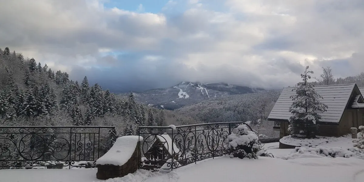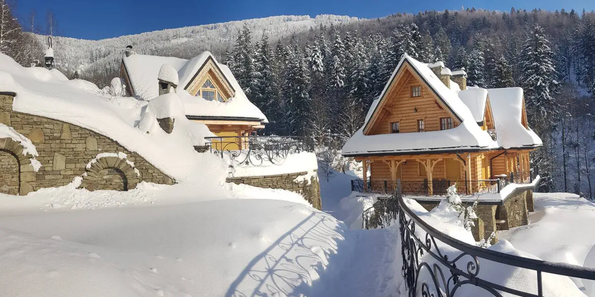 Domek Drewniany w Krupówka Mountain Resort w Szczyrku przyjmuje 6 osób z możliwościa rozłożenia kanapy dla 2 dodatkowych gosci i jest położony malowniczo obok basenu letniego na widokowym tarasie.