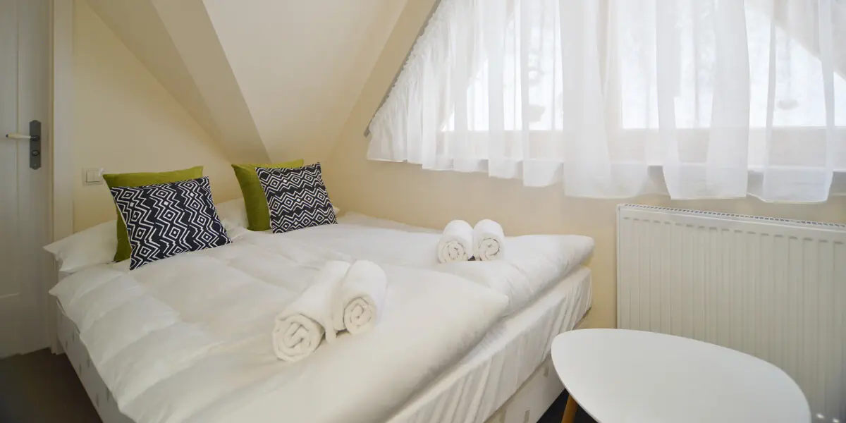 Klimatyczny pokój z łóżkiem małżeńskim wifi i łazienką. Pokoje znajdują się z budynku A lub B.