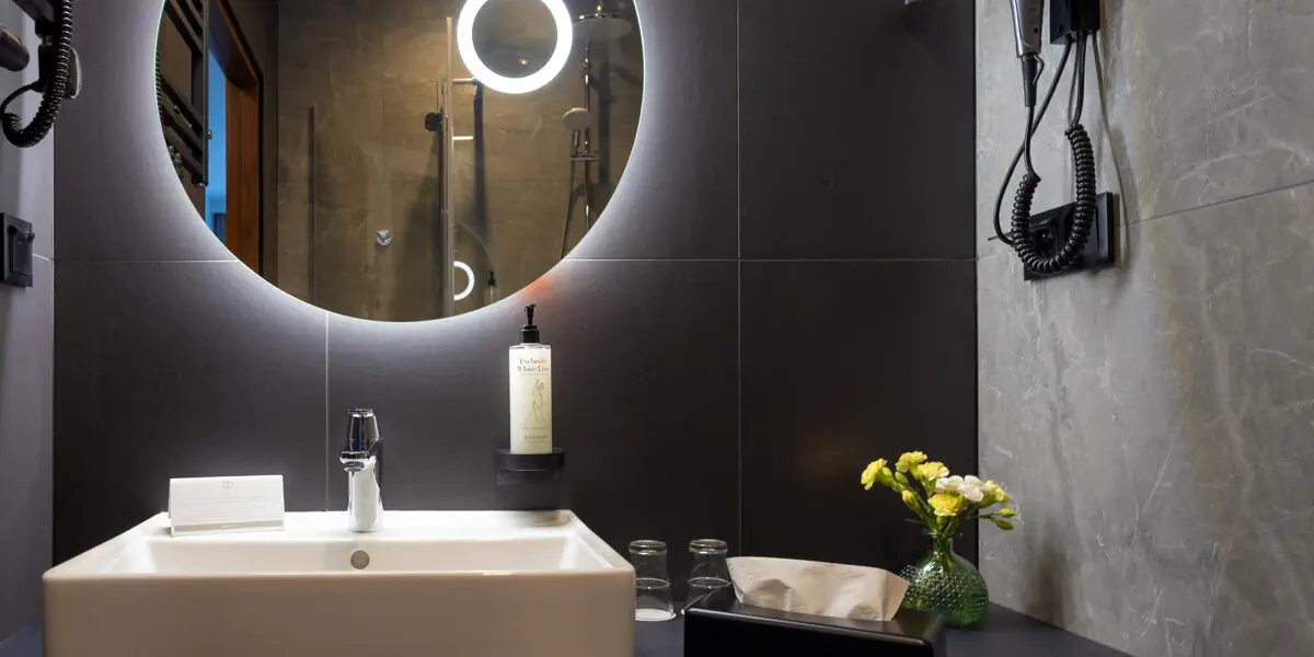 Komfortowy pokój (24 m2) z łazienką. W wyposażeniu: TV, radio, telefon, sejf, minibar, Wi-Fi, szlafrok i kapcie, łazienka z prysznicem, suszarką i kompletem kosmetyków.