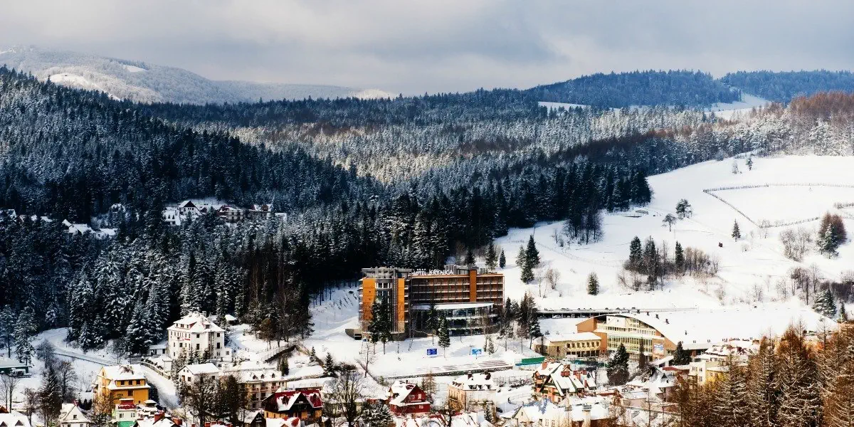 Wtopiony w zbocza Beskidu Sądeckiego Hotel Krynica**** SPA & Conference to doskonałe miejsce na wypoczynek w cudownych okolicznościach przyrody, wyjątkowo blisko gór i serca uzdrowiska Krynica-Zdrój. Nowoczesny hotel rodzinny znajduje się na zboczu Krzyżowej, oferując malowniczy widok na panoramę znanego beskidzkiego kurortu. Hotel sąsiaduje ze stokiem narciarskim, lodowiskiem oraz szlakami spacerowymi, umożliwia relaks w strefie SPA & Wellness. Udogodnienia: Basen kryty, Jacuzzi, SPA, Sauna, Masaże, Wellness, Zabiegi odnowy biologicznej, Bar / restauracja, Sala zabaw dla dzieci, Siłownia, Pobyt z pupilem, Winda, Dla niepełnosprawnych, Parking, Płatność kartą, Przy stoku