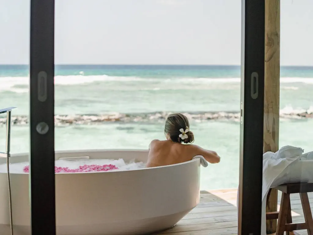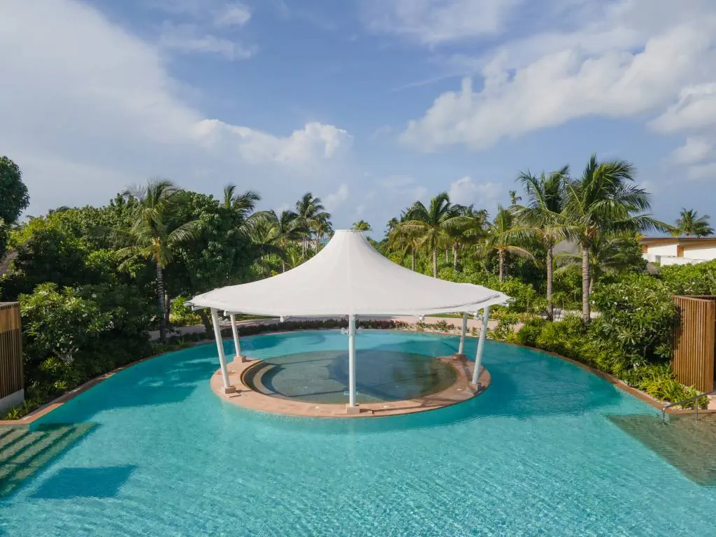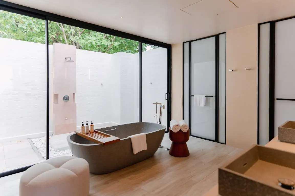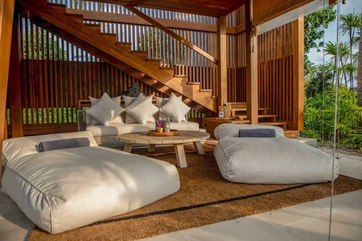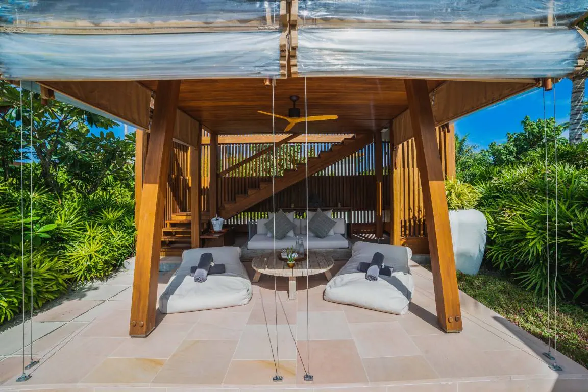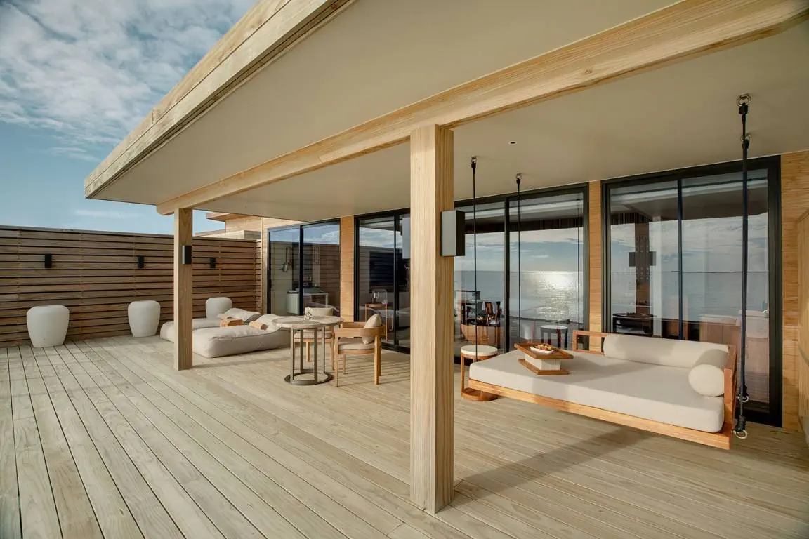 Dla max. 4 osób, Przestrzeń zewnętrzna: Taras, Kanały telewizji: angielski, Telefon w pokoju, wanna, prysznic, Powierzchnia pokoju: ok. 152 m2, Dostawka: łóżko standardowe, Rodzaj podłogi: drewno, Sprzątanie codziennie, 1 sypialnia, Maksymalna liczba osób dorosłych: 2, Maksymalna liczba dzieci: 2, Concierge (bezpłatnie), Frontalny widok na plażę,Widok na ogród i basen,Widok na ogród i morze,Widok na lagunę,Widok na morze, Liczba łazienek: 1, Liczba toalet: 1, Zestaw do parzenia kawy i herbaty, Klimatyzacja: Klimatyzacja indywidualna