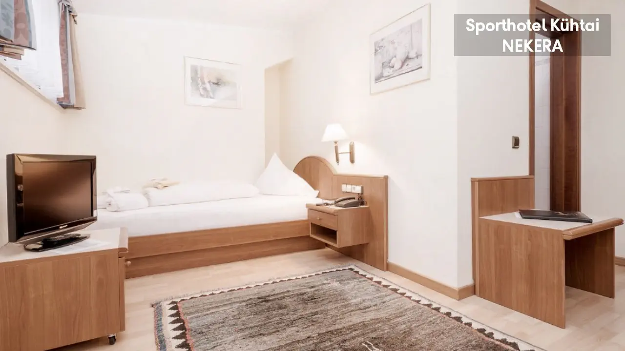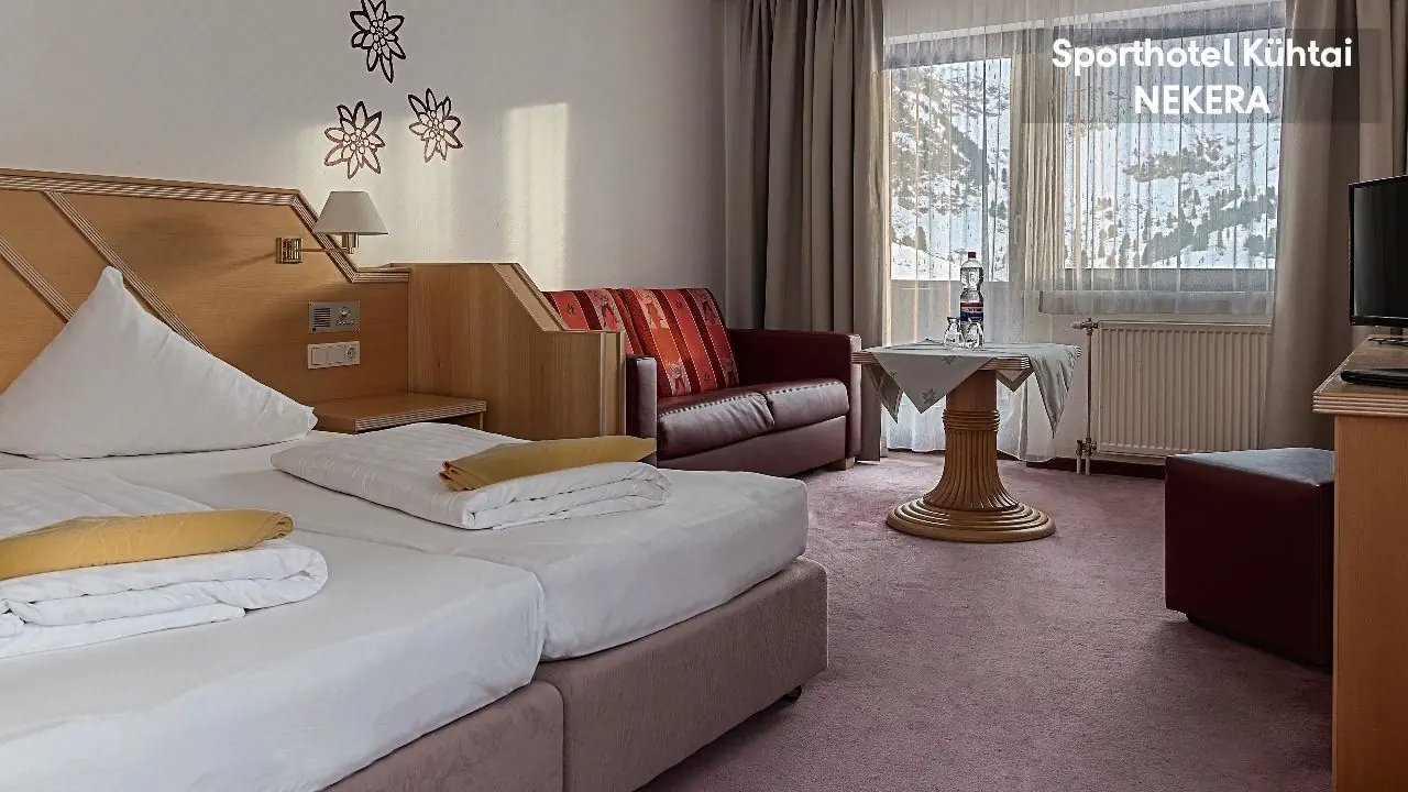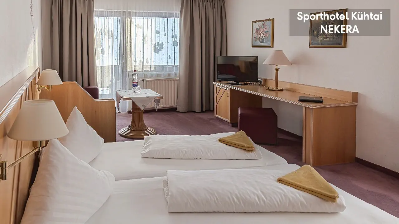 Double room - ok. 30 m - łózko podwójne - łazienka (wanna/prysznic, WC, suszarka do włosów) - TV SAT, radio, telefon - sejf family room balcony "Familiennest" - ok. 38 m - jedno pomieszczenie - łózko podwójne i 2 os. sofa - łazienka (wanna/prysznic, WC, suszarka do włosów) - TV SAT, radio, telefon - sejf - balkon/taras Apartment Balcony - ok. 48 m - sypialnia i salon z miejscami do spania - łózko podwójne i sofa - łazienka (wanna/prysznic, WC, suszarka do włosów) - TV SAT, radio, telefon - sejf - balkon/taras SGL ok 22 m