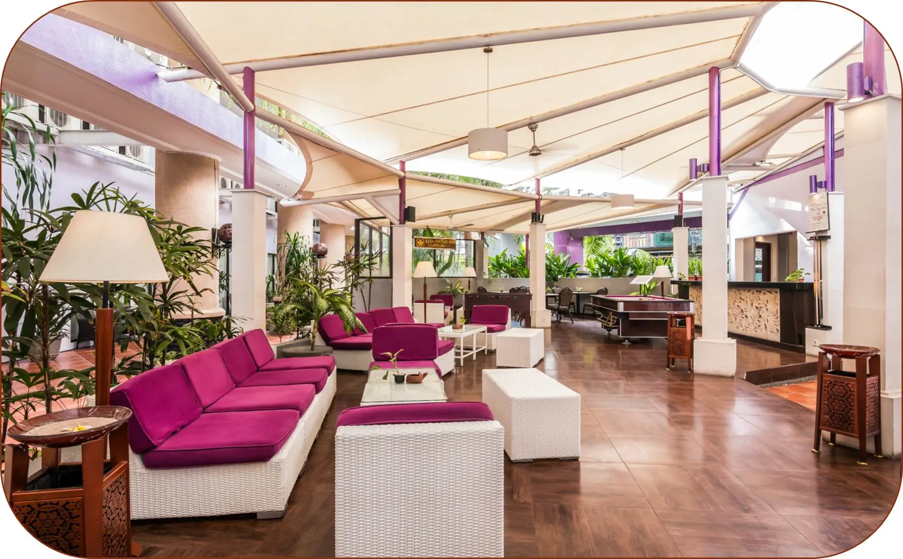 Śniadanie (07:00 - 10:30) - LOTUS POND RESTAURANT, stół szwedzki, Późne śniadanie (10:30 - 13:00) - LOTUS POND RESTAURANT, określone menu ¹⁾, Obiad (13:00 - 15:00) - LOTUS POND RESTAURANT, a la carte ¹⁾, Przekąski (15:00 - 18:00) - LOTUS POND RESTAURANT, a la carte ¹⁾, Kolacja (18:00 - 23:00) - LOTUS POND RESTAURANT, a la carte ¹⁾, napoje bezalkoholowe ¹⁾, alkohole lokalne ¹⁾, lody ¹⁾, pakiety dla nowożeńców ¹⁾, pakiety urodzinowe (na życzenie) ¹⁾, room service ¹⁾ ¹⁾ - dodatkowo płatne