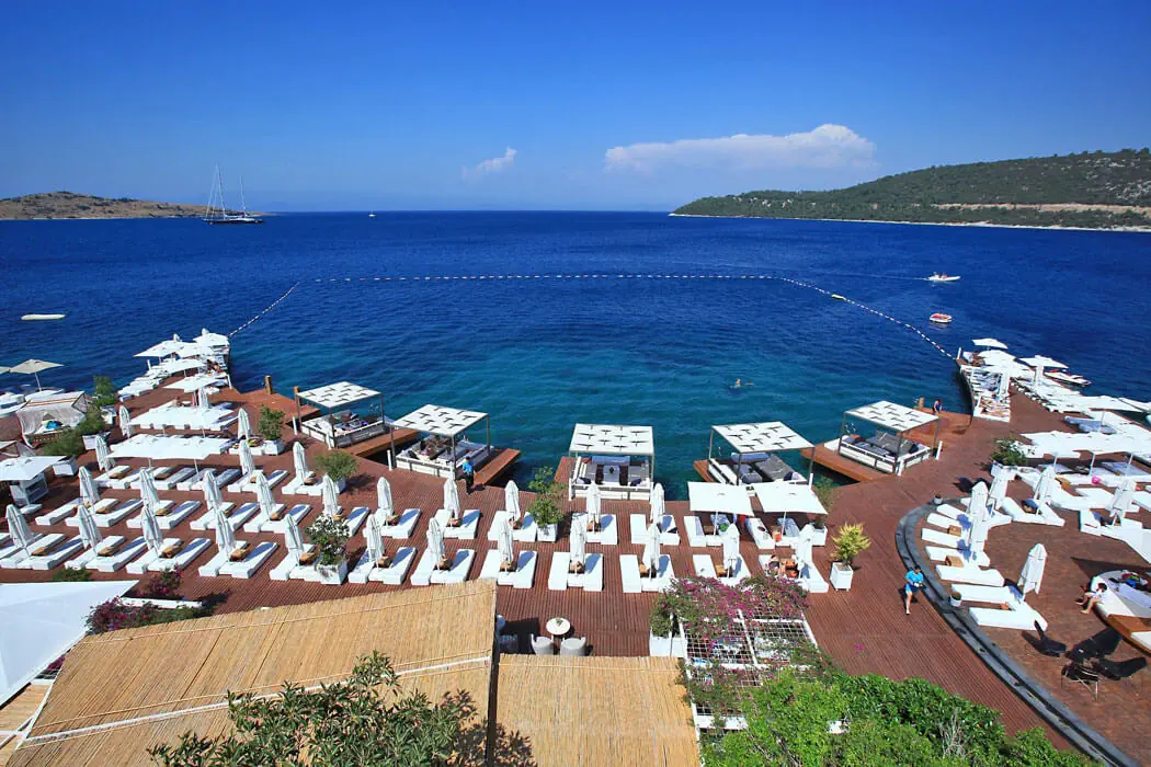19 km od centrum Bodrum, 45 km od lotniska w Bodrum Milas-BJV. Hotel usytuowany na powierzchni: 17000 m2.