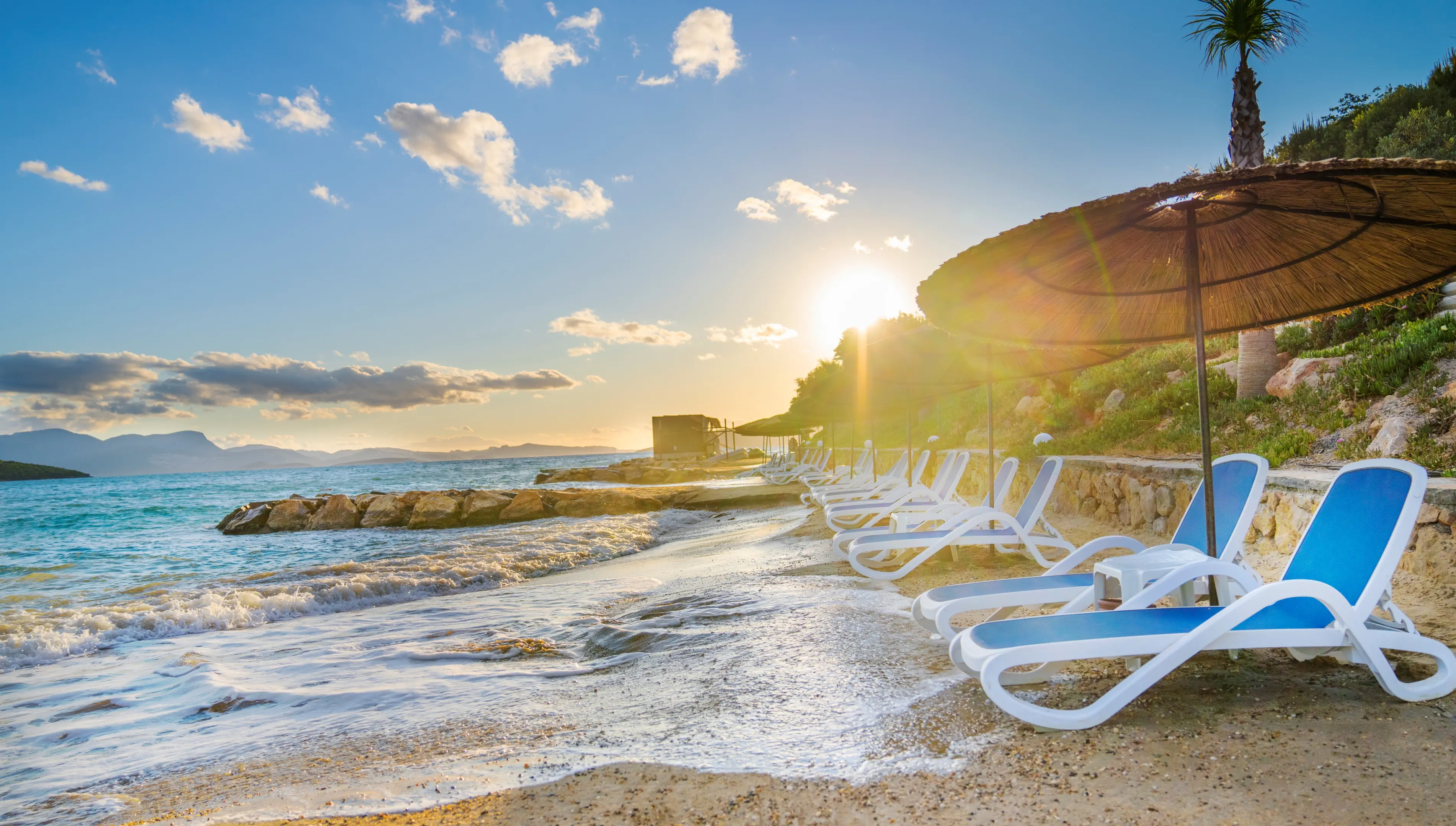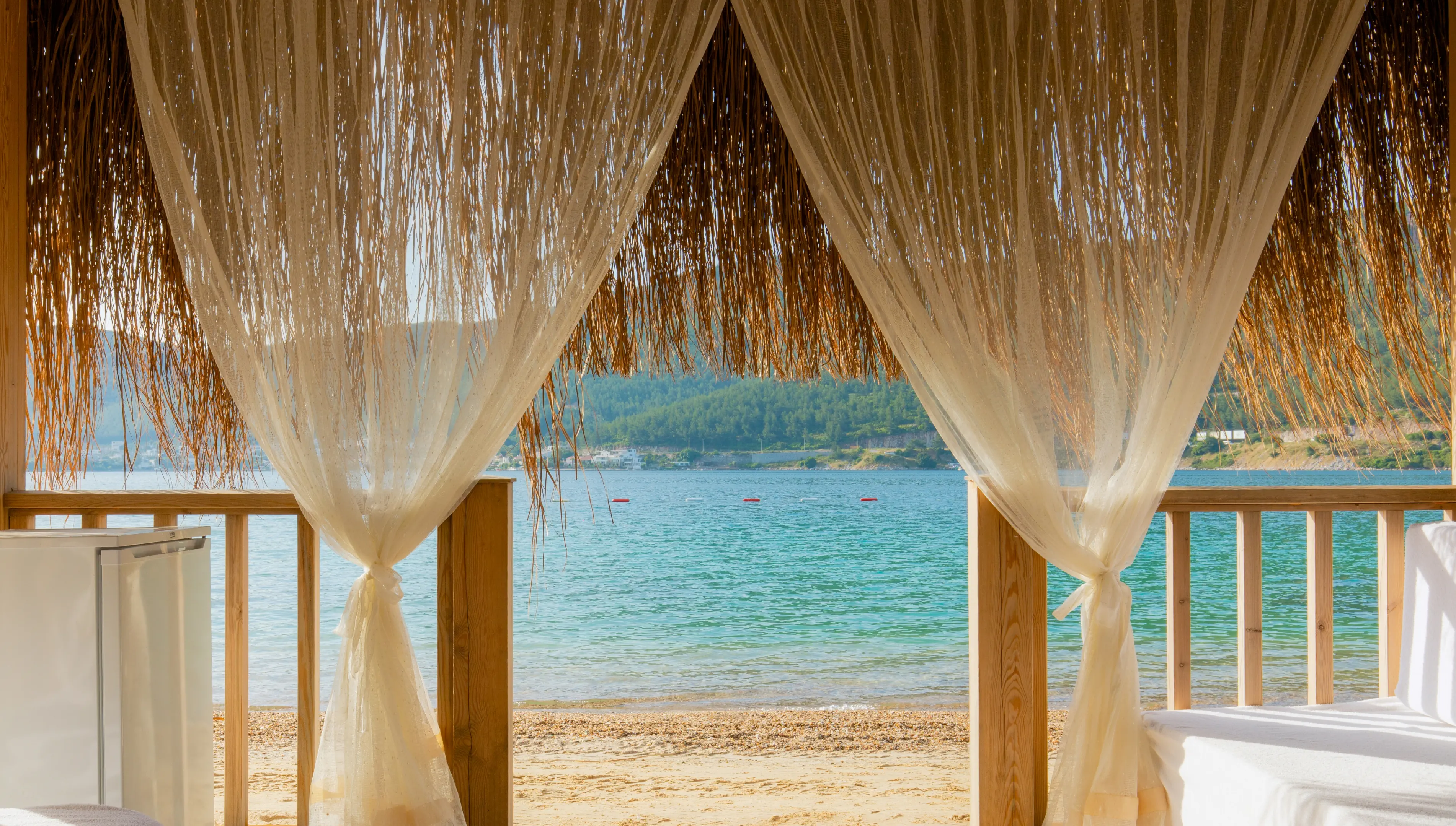 Prywatna, Piaszczysta, Piaszczysto-żwirowe zejście do morza, odleglość do plaży: 0 m, długość plaży: 1200 m, pomost na plaży, Parasole - bezpłatnie, Leżaki - bezpłatnie, Ręczniki - bezpłatnie, Pawilony na plaży - płatne, Beach Bar - bezpłatnie, Bus hotelowy do plaży, Prysznic