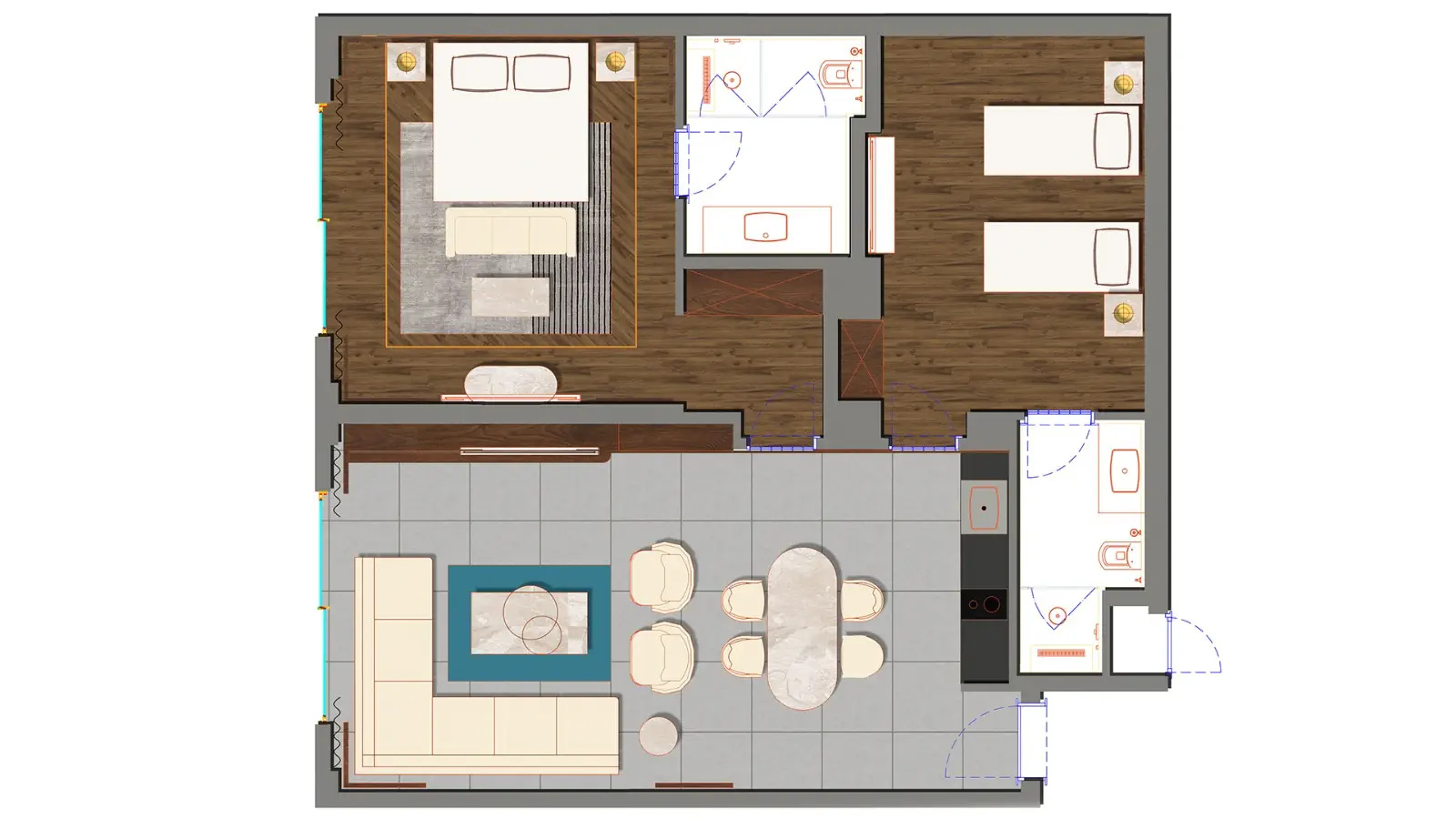Dla max. 4 osób, Przestrzeń zewnętrzna: Balkon, Kanały telewizji: Polski, Angielski, Telefon w pokoju, prysznic, Powierzchnia pokoju: ok. 37 m2, Rodzaj podłogi: wykładzina, Sprzątanie codziennie, 2 sypialnie, Drzwi łączące między pokojami, Maksymalna liczba osób dorosłych: 4, Maksymalna liczba dzieci: 2, Widok na basen i morze,Widok na basen,Częściowy widok na morze, Liczba łazienek: 1, Liczba toalet: 1, Zestaw do parzenia kawy i herbaty, Klimatyzacja: Klimatyzacja centralna, Działa w godzinach: 24h