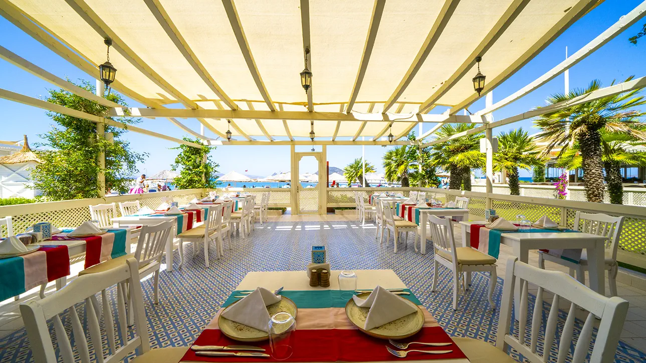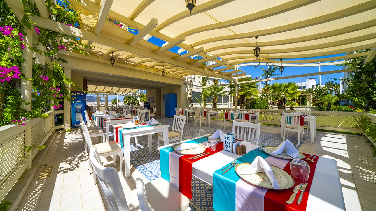 Śniadanie (07:00 - 10:30) - Gardenya Main Restaurant, stół szwedzki, Późne śniadanie (10:30 - 11:00) - Gardenya Main Restaurant, stół szwedzki, Obiad (12:30 - 14:00) - Gardenya Main Restaurant, stół szwedzki, Przekąski (12:00 - 17:00) - Sardunya Snack, określone menu, Podwieczorek (16:00 - 17:00) - Sardunya Snack, określone menu, Kolacja (19:00 - 21:30) - Gardenya Main Restaurant, stół szwedzki, Późna kolacja (00:00 - 01:00) - Gardenya Main Restaurant, stół szwedzki, La Merla (19:00 - 21:30) (19:00 - 21:30), raz w tygodniu, Kuchnia: śródziemnomorska, Wymagana rezerwacja: Tak, Chang Ga (19:00 - 21:30) (19:00 - 21:30), raz w tygodniu, Kuchnia: Chińska, Wymagana rezerwacja: Tak, Le Mangal (19:00 - 21:30) (19:00 - 21:30), raz w tygodniu, Kuchnia: lokalna, Wymagana rezerwacja: Tak, La Perla (19:00 - 21:30) (19:00 - 21:30), bez limitu, Kuchnia: Włoska, Wymagana rezerwacja: Tak, Gardenya Lobi Bar (24h), Napoje: alkohole lokalne, wybrane alkohole importowane, napoje bezalkoholowe (24h), Sardunya Pool Bar (10:00 - 21:30), Napoje: alkohole lokalne, napoje bezalkoholowe (10:00 - 21:30), B-Club Bar (11:00 - 19:00), Napoje: alkohole lokalne, napoje bezalkoholowe (11:00 - 19:00), Disco Bar (00:00 - 02:00), Napoje: alkohole lokalne, napoje bezalkoholowe (00:00 - 02:00), Beach Bar (12:00 - 00:00), Napoje: alkohole lokalne, napoje bezalkoholowe (12:00 - 00:00), napoje bezalkoholowe, alkohole lokalne, wybrane alkohole importowane, lody, pakiety dla nowożeńców, pakiety urodzinowe (na życzenie), cukiernia, room service ¹⁾, Minibar w pokoju ¹⁾ - dodatkowo płatne