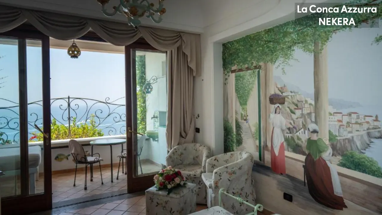 hotel posiada dostęp do prywatnej platformy słonecznej zlokalizowanej bezpośrednio nad wodą, do której prowadzą schody wykute w skale. Za dodatkową opłatą (ok. 20-25 EUR/dzień): dostęp do platformy obejmujący leżaki, parasole oraz ręczniki plażowe. W pobliżu znajdują się również inne znane plaże, m.in. Marina di Conca (ok. 1,5 km) oraz Fiordo di Furore (ok. 1,2 km).