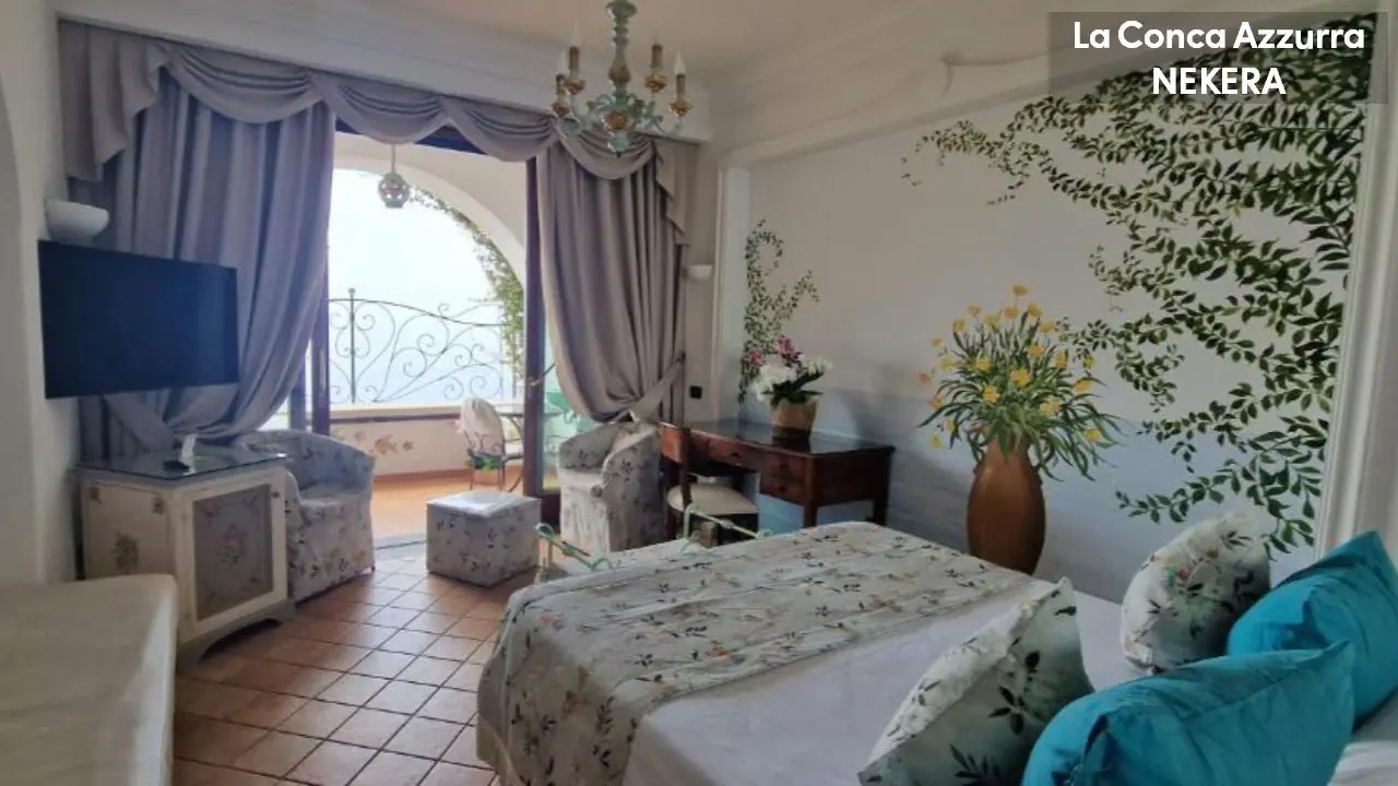 wszystkie pokoje są klimatyzowane i posiadają balkon, taras lub werandę z widokiem na morze. Wyposażenie: klimatyzacja, TV-Sat. z kanałami LCD, telefon, sejf, minibar (płatny), biurko, prywatna łazienka (wanna lub prysznic, WC, suszarka do włosów, zestaw kosmetyków). Superior Room: elegancki pokój z balkonem lub tarasem oferujący bezpośredni widok na morze, wyposażony w klasyczne meble i tradycyjną ceramikę. Gran Relax Suite: luksusowy i przestronny pokój (ok. 35 m²) składający się z sypialni oraz oddzielnej części dziennej, posiada dużą werandę (loggię) wyposażoną w leżaki i meble ogrodowe z widokiem na morze i wyspę Capri.