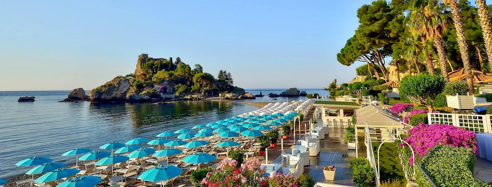 Położenie: Elegancki hotel urządzony we włoskim stylu, położony w odległości ok. 4 km od centrum Taorminy, miasta zwanego perłą wschodniego wybrzeża Sycylii z licznymi restauracjami, barami oraz sklepikami. Do lotniska w Katanii ok. 35 km. Hotel pobiera podatek turystyczny – płatny obowiązkowo w recepcji hotelu w dniu przyjazdu – w wysokości ok. 5 EUR/os./dzień. Plaża: Kamienista plaża znajduje się tuż przy hotelu (zalecamy obuwie ochronne). Leżaki, parasole i ręczniki na plaży dostępne bezpłatnie. Do dyspozycji gości: Recepcja 24 h, przestronne lobby, restauracja główna (ze stolikami na tarasie, skąd rozpościera się przepiękny widok na okolicę i morze) serwująca dania kuchni lokalnej oraz śródziemnomorskiej, restauracja a’la carte, bar na plaży. Obiekt oferuje Gościom duży relaksacyjny basen. Ponadto za dodatkową opłatą: sejf w recepcji, pralnia, lekarz. Wyżywienie: Śniadania w formie bogatego bufetu serwowane w restauracji głównej. Goście mają również możliwość skorzystania za opłatą z hotelowej restauracji (posiłki w restauracji serwowane w formie bufetu) oraz baru z napojami i przekąskami. Program sportowy i animacyjny: Hotel nie prowadzi programu animacyjnego. Klientom spragnionym relaksu i wyciszenia hotel zapewnia możliwość skorzystania ze SPA: łaźnia turecka, zabiegi kosmetyczne, masaże (za dodatkową opłatą). Do dyspozycji gości jest również bezpłatna siłownia. Internet: Bezpłatny Internet Wi-Fi w pokojach oraz ogólnodostępnych częściach hotelu. Kategoria lokalna: ***** Strona www: www.ragostahotels.com/it/la-plage-resort Naszym zdaniem: Przepiękny widok na turkusowe wody morza, luksusowo urządzone pokoje oraz nietuzinkowe widoki sprawią, że klienci z pewnością poczują klimat włoskich wakacji. Przypadnie do gustu szukającym bazy wypadowej do zwiedzania okolicy pobliskiej Taorminy i innych atrakcji północno-wschodniej części Sycylii.