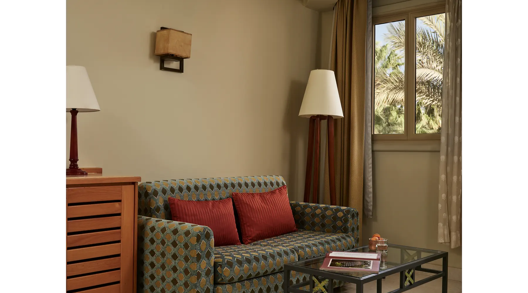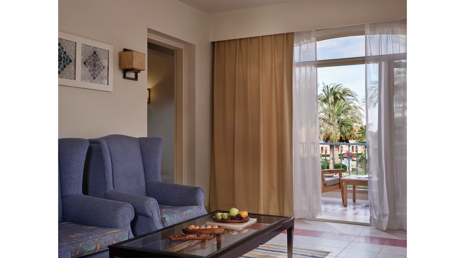 Dla max. 3 osób, Przestrzeń zewnętrzna: Balkon lub taras, Kanały telewizji: Angielski, Telefon w pokoju, prysznic, Powierzchnia pokoju: ok. 39 - 40 m2, Dostawka: łóżko standardowe, Rodzaj podłogi: płytki, Sprzątanie codziennie, 1 sypialnia, Maksymalna liczba osób dorosłych: 3, Maksymalna liczba dzieci: 1, Widok na ogród, Liczba łazienek: 1, Liczba toalet: 1, Zestaw do parzenia kawy i herbaty, Klimatyzacja: Klimatyzacja indywidualna