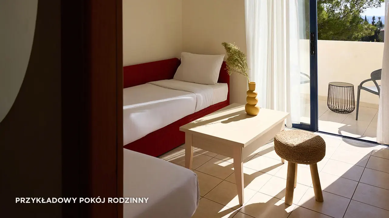 Standard 2-3 os. (ok. 25 m2)Pokój rodzinny 2-4 os. (ok. 30 m2)Superior 2-3 os. (ok. 25 m2)Superior z wid. na morze 2-3 os. (ok. 25 m2)Superior rodzinny 2-4 os. (ok. 31 m2)Superior rodzinny z wid. na morze 2-4 os. (ok. 31 m2)(RQ) Superior rodzinny z współdz. basenem 2-4 os. (ok. 31 m2)
