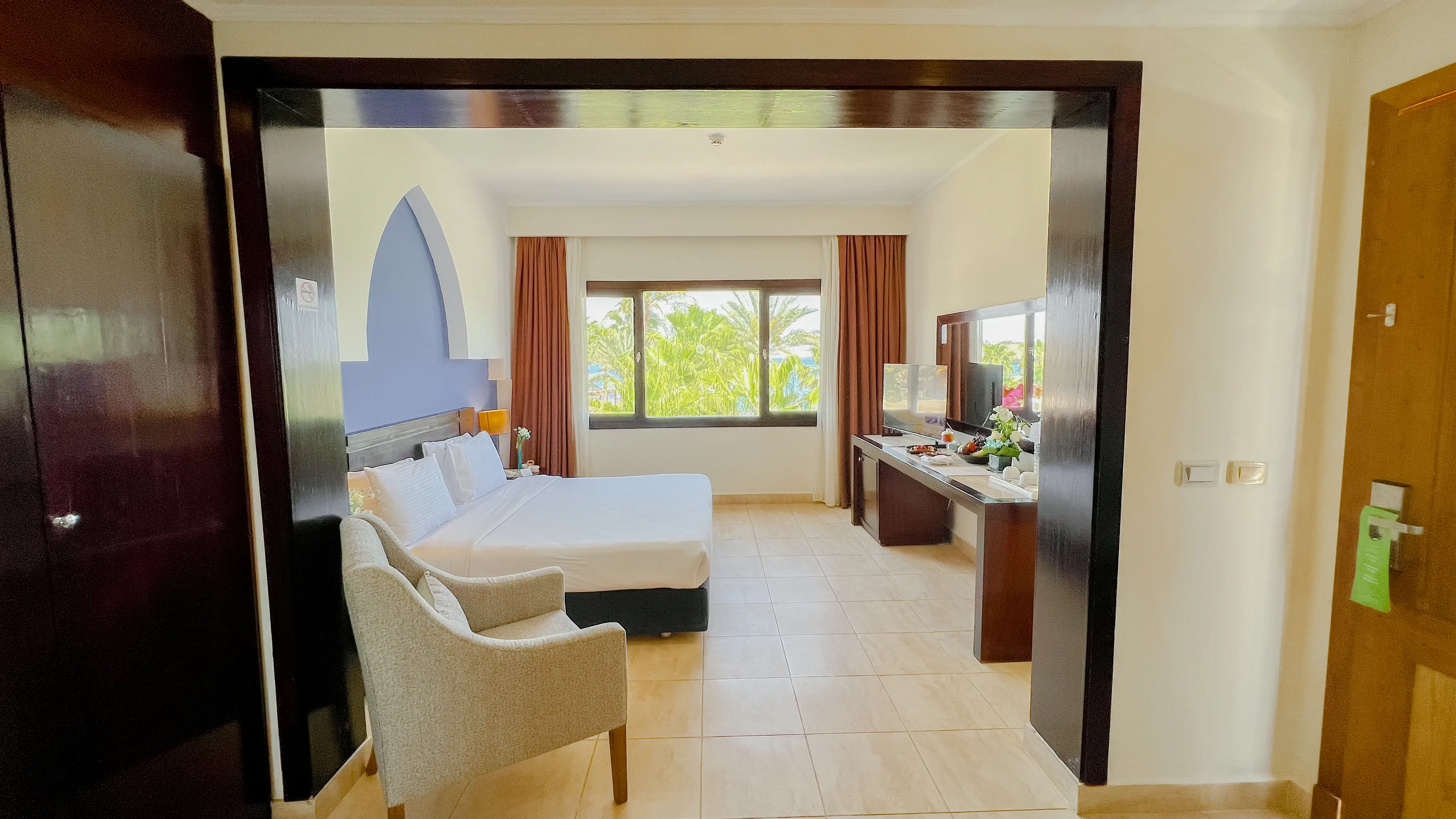 Dla max. 3 osób, Przestrzeń zewnętrzna: Taras, Kanały telewizji: Angielski, Telefon w pokoju, prysznic, Powierzchnia pokoju: ok. 36 m2, Rodzaj podłogi: płytki, Sprzątanie codziennie, 1 sypialnia, Drzwi łączące między pokojami, Maksymalna liczba osób dorosłych: 2, Maksymalna liczba dzieci: 1, Widok na basen, Liczba łazienek: 1, Liczba toalet: 1, Zestaw do parzenia kawy i herbaty, Klimatyzacja: Klimatyzacja indywidualna