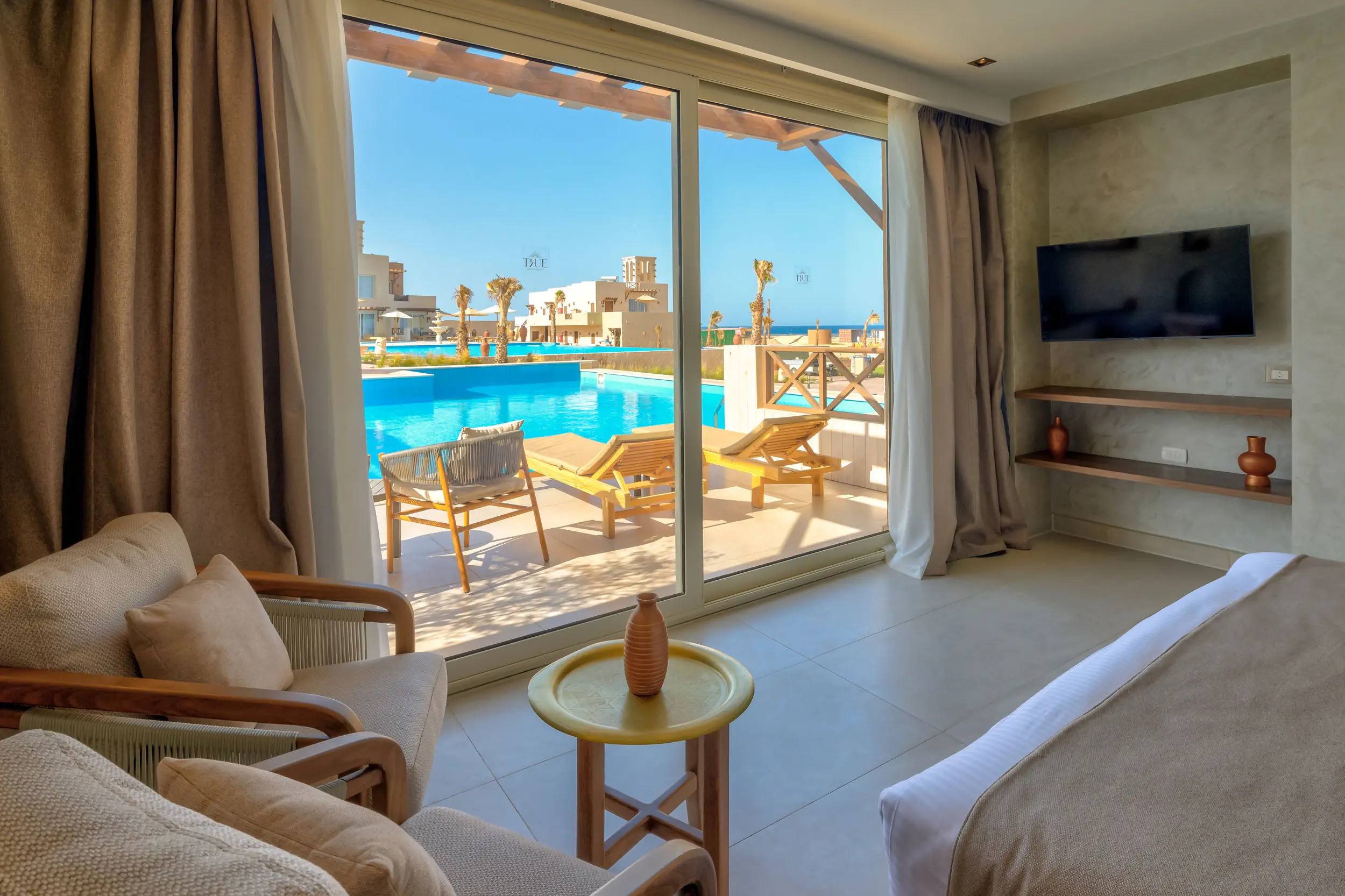 Dla max. 2 osób, Przestrzeń zewnętrzna: Taras, Kanały telewizji: Polski, Angielski, Telefon w pokoju, prysznic, Powierzchnia pokoju: ok. 45 - 47 m2, Rodzaj podłogi: płytki, Sprzątanie codziennie, 1 sypialnia, Maksymalna liczba osób dorosłych: 2, Maksymalna liczba dzieci: , Frontalny widok na basen, Liczba łazienek: 1, Liczba toalet: 1, Zestaw do parzenia kawy i herbaty, Klimatyzacja: Klimatyzacja indywidualna