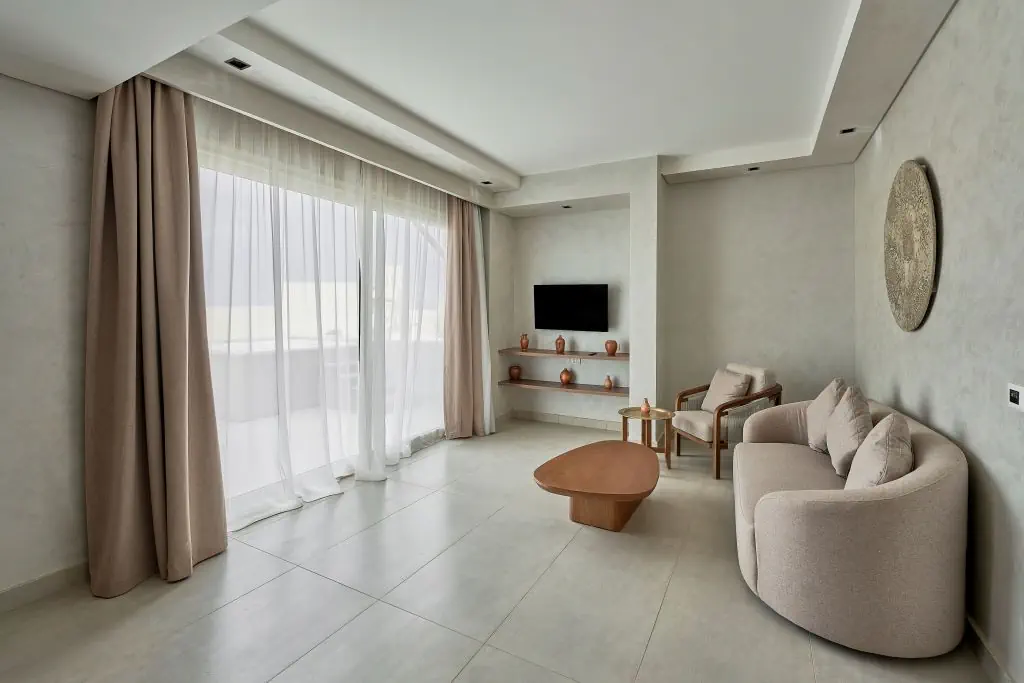 Dla max. 4 osób, Przestrzeń zewnętrzna: Balkon lub taras, Kanały telewizji: Polski, Angielski, Telefon w pokoju, prysznic, Powierzchnia pokoju: ok. 45 - 47 m2, Dostawka: łóżko standardowe, Rodzaj podłogi: płytki, Sprzątanie codziennie, 1 sypialnia, Maksymalna liczba osób dorosłych: 3, Maksymalna liczba dzieci: 2, Od strony morza i basenu, Liczba łazienek: 1, Liczba toalet: 1, Zestaw do parzenia kawy i herbaty, Klimatyzacja: Klimatyzacja indywidualna