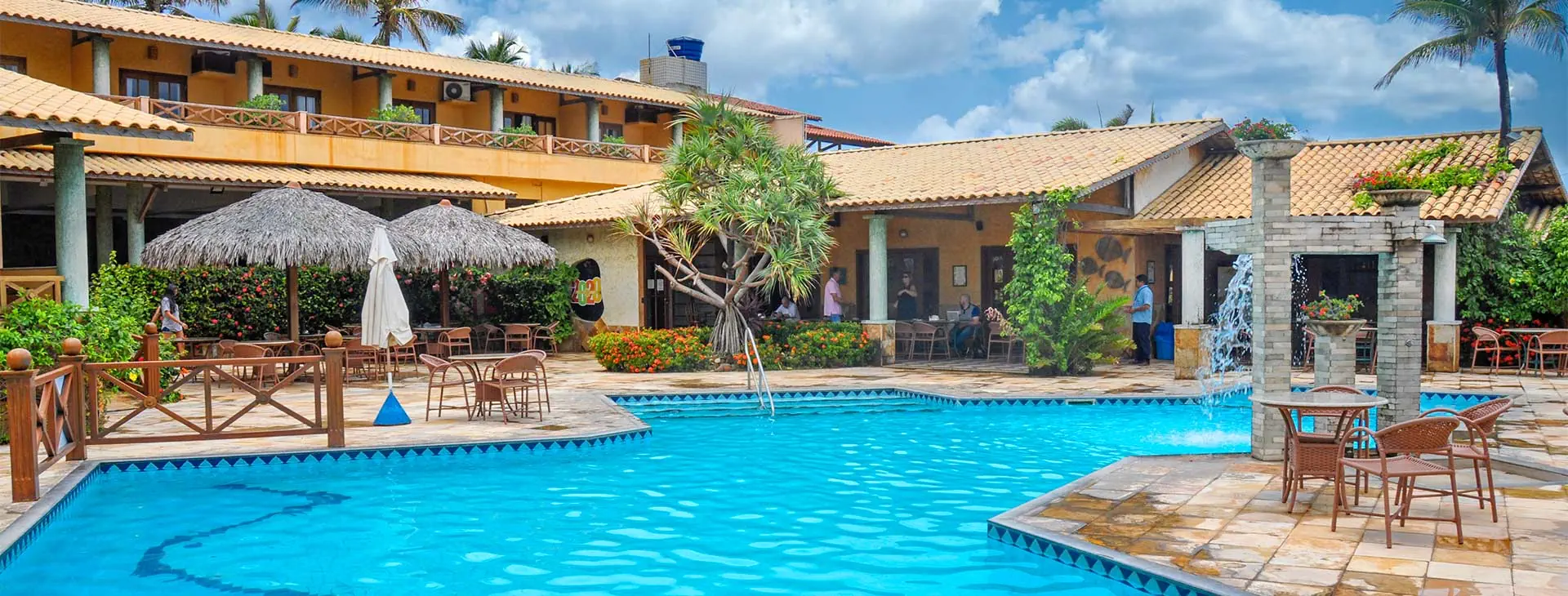 Położenie: Hotel Laguna Blu położony jest w miejscowości Aquiraz, około 30 km od Fortalezy. Miejscowość ta słynie z największego w Brazylii parku wodnego Beach Park, położonego 10 km od hotelu. Hotel położony jest kaskadowo na 4 piętrach (zewnętrzna klatka schodowa), posiada 39 pokoi. Transfer z lotniska trwa ok 1 godzinę. Plaża: Hotel położony jest 600 m od długiej, piaszczystej plaży Prainha, która leży u ujścia rzeki Catu (przejście wzdłuż ulicy). Do plaży kursują bezpłatne samochody typu buggy, należące do zaprzyjaźnionej restauracji leżącej przy plaży (transport należy zamówić na recepcji). Przy restauracji darmowe leżaki i parasole oraz niewielki basen. Plaża oferuje doskonałe warunki do uprawiania sportów wodnych, np. surfingu. Prainha ma bogatą infrastrukturę turystyczną, z hotelami, zajazdami, domkami letnimi, restauracjami i barami. Do dyspozycji gości: Recepcja czynna całą dobę, restauracja, basen zewnętrzny z wydzieloną niewielką częścią dla dzieci, leżaki i parasole przy basenie, bar, przechowalnia bagażu. Wyżywienie: Śniadania w formie bufetu. Możliwa dopłata do formuły All Inclusive Light. All Inclusive Light: Śniadania (7:00-10:00), lunche (12:30-14:30) oraz kolacje (19:00-21:30) serwowane w postaci bufetu. Przerwa kawowa w godzinach 16:30-17:30. Napoje serwowane do posiłków (woda, napoje słodzone, lokalne piwo, 2 kieliszki wina na osobę). Każdy Klient otrzyma również voucher na 4 napoje w ciągu dnia, do wyboru: woda, napoje, soki, piwo lokalne, wino, whiskey, wódka, rum, brandy, gin, cachaca, caipirinha, caiproska. Program sportowy i animacyjny: Sporty wodne na plaży (dodatkowo płatne). Internet: Internet WiFi dostępny na terenie hotelu. Kategoria lokalna: W Brazylii nie istnieje oficjalna kategoryzacja hoteli. Naszym zdaniem: Warto zwrócić uwagę, że hotel oferuje świadczenia żywieniowe w kilku wersjach i można zakupić pakiet all inclusive light. Oferta warta polecenia z dwóch powodów, bliskości znajdujacego się w Księdze Rekordów Guinessa Parku Wodnego oraz bardzo atrakcyjnej ceny. Zapraszamy!