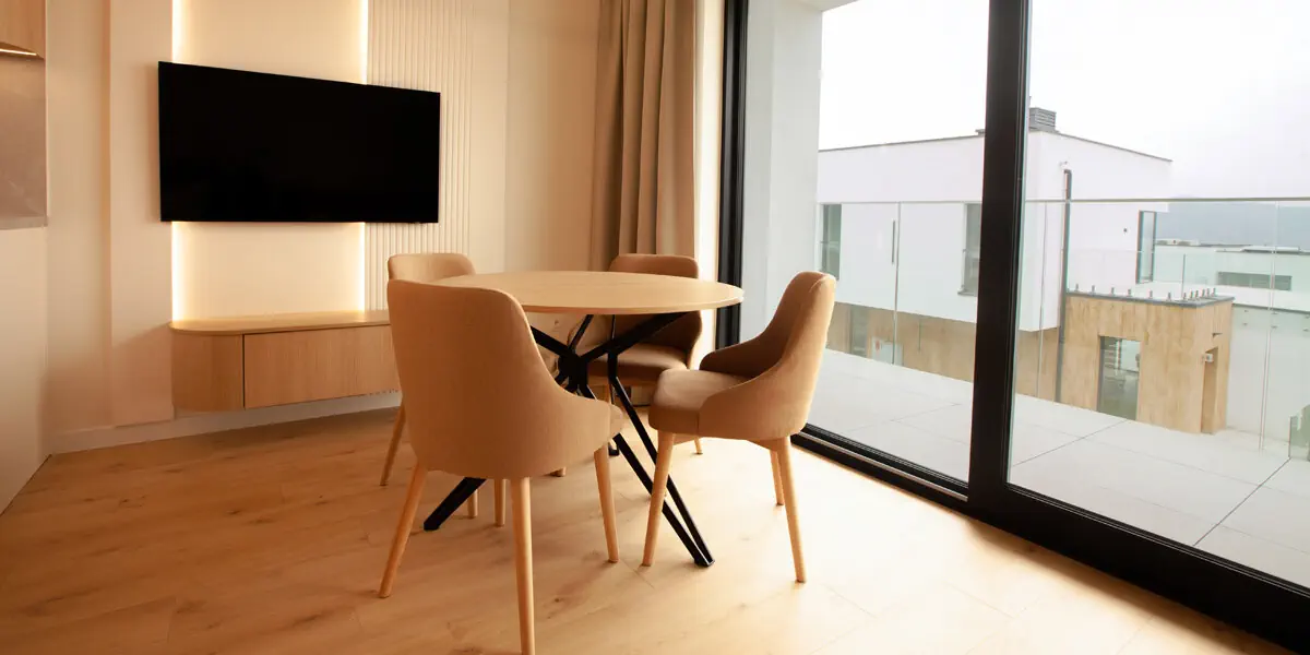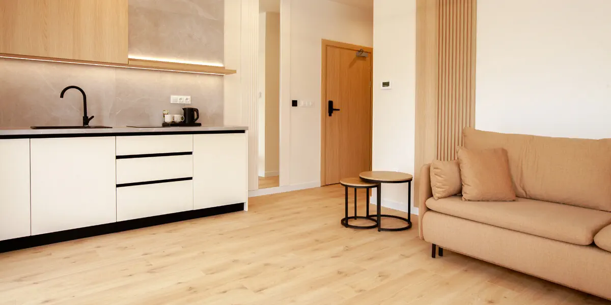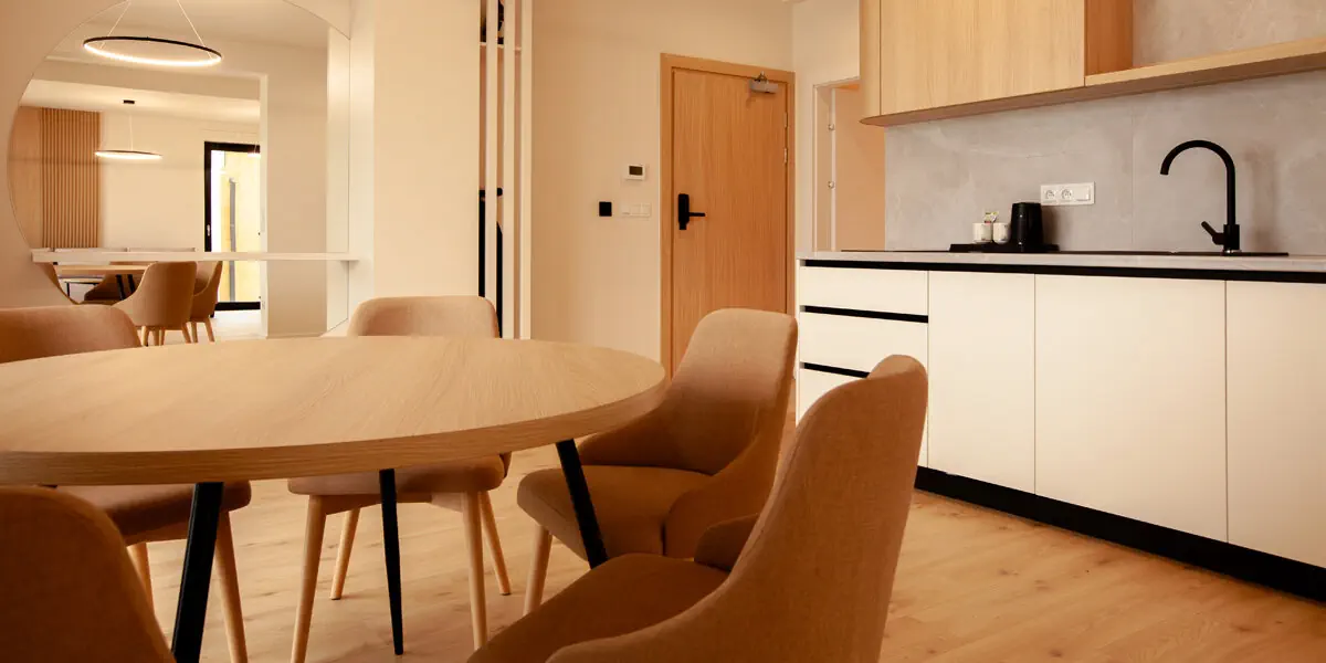 Kompaktowa i komfortowa przestrzeń stworzona z myślą o swobodzie pobytu. Jasne, naturalne wnętrza sprzyjają odpoczynkowi w górach, a w pełni wyposażony aneks kuchenny pozwala planować dzień w dowolnym rytmie. Apartament doskonale sprawdzi się podczas krótszych i dłuższych pobytów w Beskidzie Żywieckim.