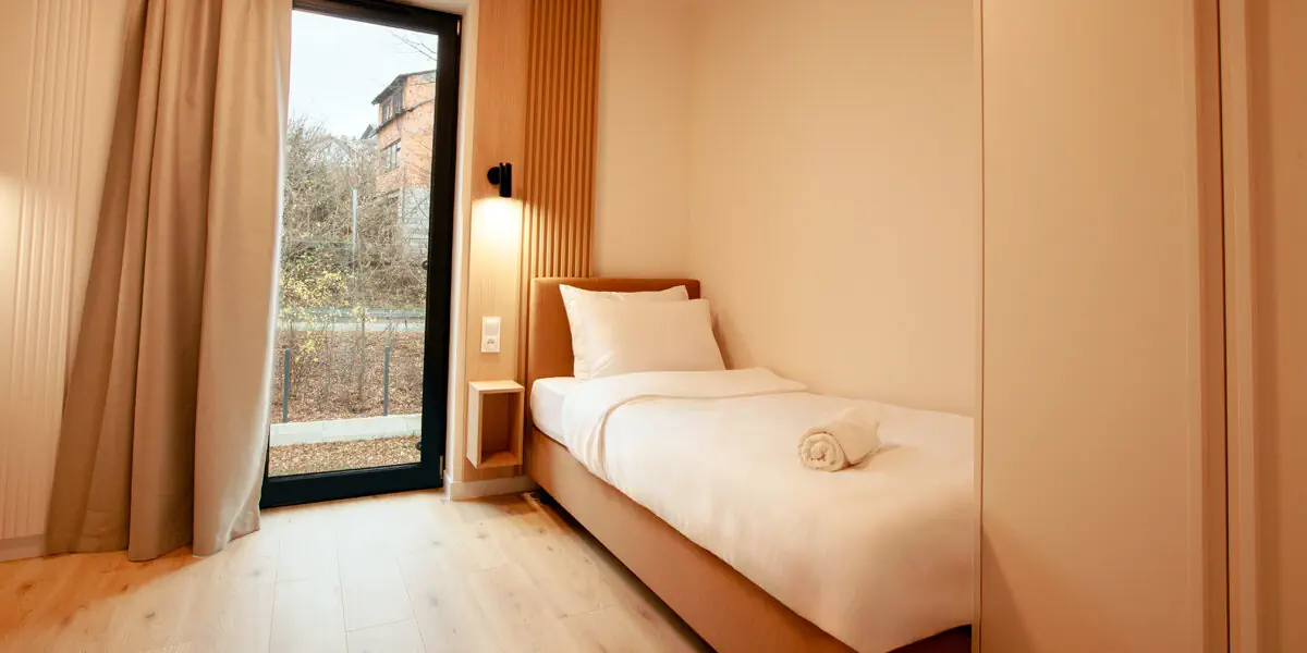 Pokój CLASSIC to komfortowa przestrzeń zaprojektowana w minimalistycznym stylu, inspirowanym naturalnym otoczeniem Beskidów. Jasne, harmonijne wnętrza sprzyjają wyciszeniu, a wygodne łóżko dwuosobowe (lub opcja pokoju typu twin) oraz rozkładana kanapa zapewniają elastyczność i pełen komfort pobytu. To idealny wybór dla gości, którzy oczekują funkcjonalności, spokoju i dopracowanego designu w wysokim standardzie.