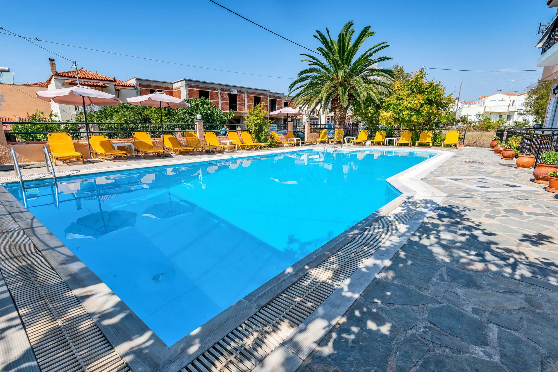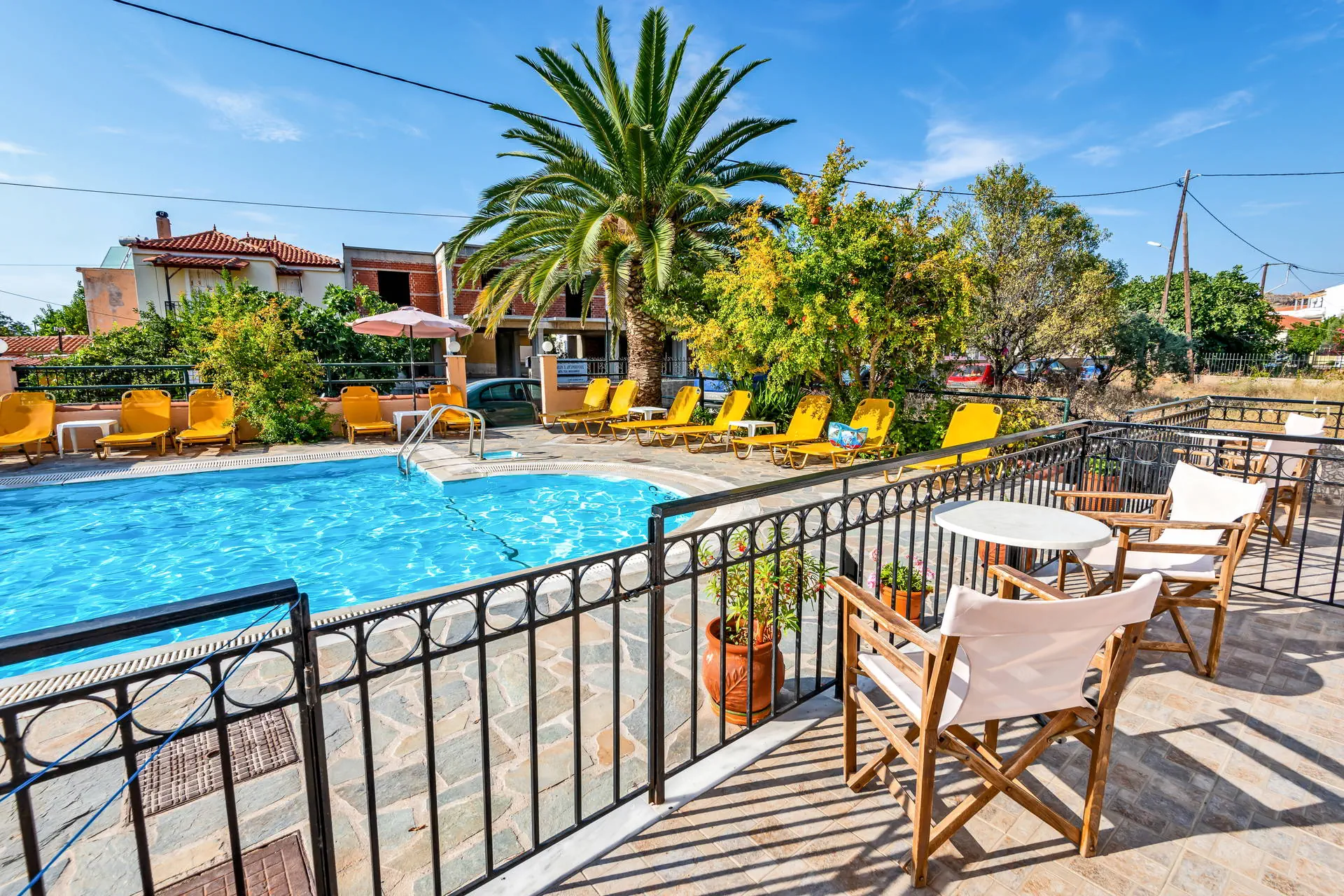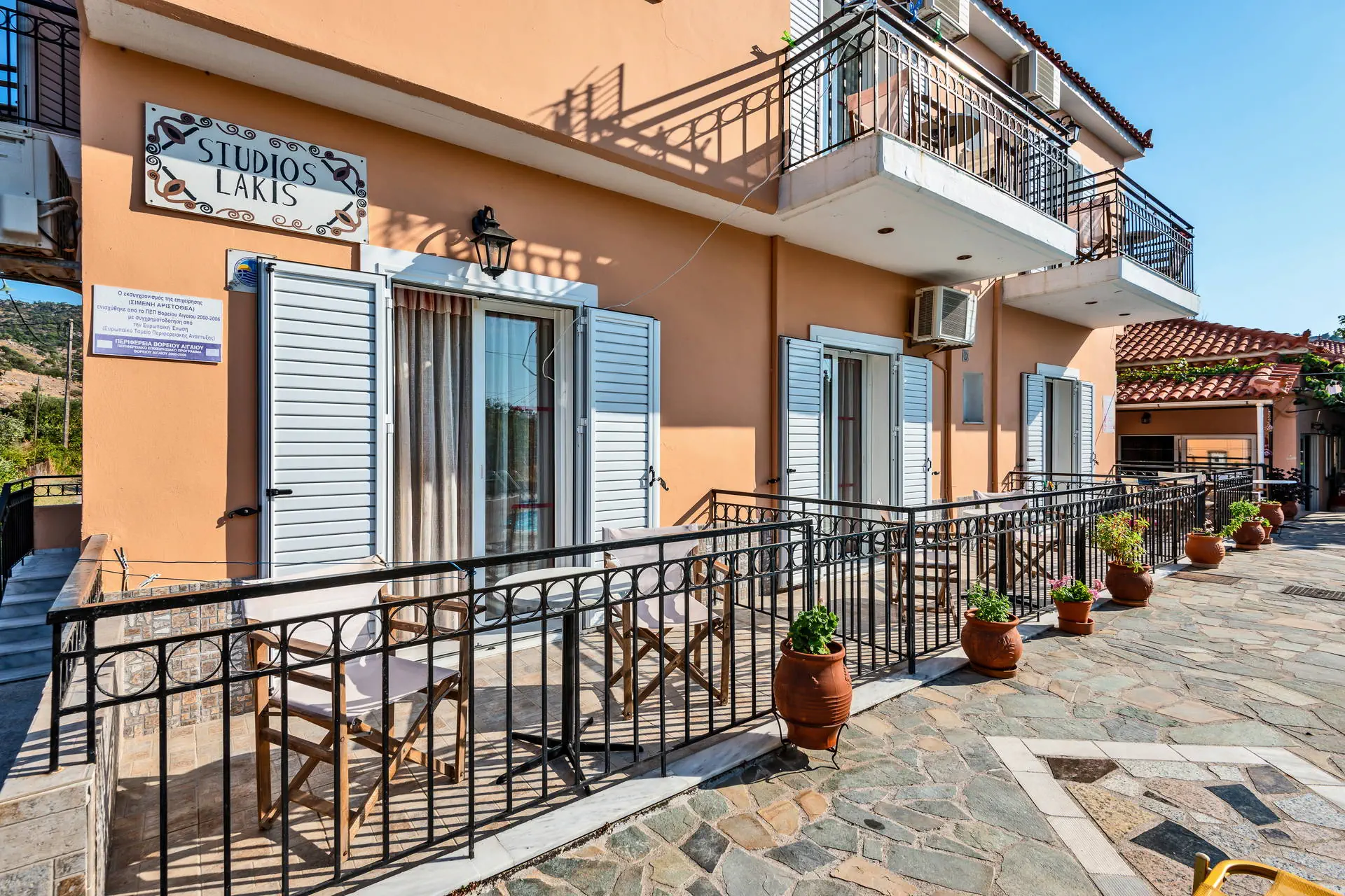 Położenie Obiekt znajduje się w Anaxos, na północnym wybrzeżu. Odległość od lotniska w Mytilene wynosi 65 km. Najbliższy sklep znajduje się około 100 m od studiów, a do barów i tawern przy plaży jest około 450 m. Regularne kursy autobusu publicznego do Petry i Molyvos dostępne są z przystanku położonego około 150 m od obiektu. UWAGA! Cena nie obejmuje lokalnego podatku turystycznego w wysokości 2 EUR/pokój/dzień. Podatek jest obligatoryjny i płatny bezpośrednio w recepcji, przed zakwaterowaniem Klientów w hotelu. Plaża Plaża oddalona o około 450 metrów od studiów. Piaszczysta publiczna. Leżaki i parasole płatne dodatkowo. Do dyspozycji gości Recepcja czynna w godz. 08:00-00:00. 1 basen dostępny dla Gości hotelu, czynny w godz. 08:00-20:00, leżaki i parasole przy basenie bezpłatne, obiekt nie udostępnia ręczników kąpielowych. Restauracje: Bar z napojami i przekąskami (płatne dodatkowo wg cennika). Pozostałe informacje: Sejf w recepcji za dodatkową opłatą (2 EUR/dzień). Pokoje W obiekcie znajduje się 10 pokoi typu studio, każdy z balkonem lub tarasem (meble ogrodowe). W pokojach telewizor, lodówka, aneks kuchenny, czajnik elektryczny oraz łazienka z prysznicem i WC. Za dodatkową opłatą klimatyzacja (6 EUR/dzień). Łóżeczko dla dziecka do 2 lat bezpłatnie. Wyżywienie Rodzaje wyżywienia i posiłki: We własnym zakresie. Bary: Bar na terenie Lakis Studios: napoje i przekąski dostępne za dodatkową opłatą według cennika na miejscu. Program sportowy i animacyjny Brak programu animacyjnego. Internet W barze internet Wi-Fi - bezpłatny. Kategoria lokalna ** Naszym zdaniem Usytuowany w popularnej miejscowości Anaxos, obiekt oferuje studia o dobrym standardzie, idealne dla par i grup znajomych. Lokalizacja sprzyja samodzielnemu zwiedzaniu wyspy, co czyni go doskonałą bazą wypadową do odkrywania okolicznych atrakcji. Goście mogą cieszyć się zarówno komfortem, jak i swobodą planowania własnych wycieczek.