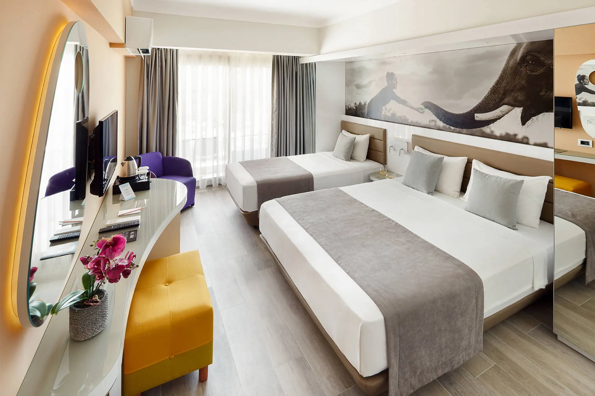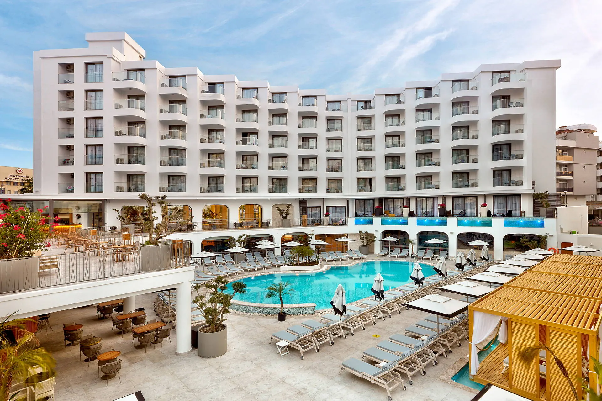 Położenie Hotel położony jest w rozrywkowej miejscowości Marmaris, która oferuje szeroki wybór atrakcji turystycznych, restauracji, barów oraz sklepów. Zabytkowe centrum znajduje się ok. 2 km od obiektu. Do lotniska w Dalamanie jest ok. 95 km. Plaża Odległość plaży od hotelu: około 200 m. Publiczna piaszczysto-żwirowa z wydzieloną hotelową częścią. Leżaki, parasole oraz ręczniki plażowe dostępne bezpłatnie. Wyżywienie Rodzaje wyżywienia i posiłki: All Inclusive: Śniadanie: 07:00 - 10:30. Lunch: 12:30 - 14:00. Obiadokolacja: 19:00 - 21:00; posiłki w formie bogatego bufetu. Przekąski: 11:30 - 17:00. Słodkie przekąski: 15:30 - 17:00. Bary: Lokalne napoje bezalkoholowe i alkoholowe dostępne w wyznaczonych barach: 10:00 - 23:30. Pozostałe informacje: Za dodatkową opłatą: alkohole importowane, kawa po turecku, świeże soki, wybrane drinki i koktajle. Do dyspozycji gości Recepcja 24h, lobby, winda. 2 baseny (zewnętrzny i wewnętrzny), brodzik dla dzieci, leżaki oraz parasole przy basenie dostępne są bezpłatnie. Atrakcje dla dzieci: brodzik dla dzieci. Restauracje: restauracja główna (kuchnia lokalna i międzynarodowa), restauracja a’la carte (płatne), kawiarnia (płatne), 2 bary (bar w lobby i bar przy basenie). Pozostałe informacje: parking, punkt wymiany walut, sklep z pamiątkami, sala telewizyjna, pralnia chemiczna (płatne), usługa prasowania (płatne). Program sportowy i animacyjny Dla każdego: dzienny i wieczorny program animacyjny w wersji soft, m.in. pokaz tańca latynoskiego, pokaz barmański, występy akrobatyczne, quiz muzyczny oraz taniec brzucha, codziennie wieczorne show lub muzyka na żywo, sauna i łaźnia turecka (bezpłatna w godz.15:00-17:00), siłownia (bezpłatna w godz.09:00-17:00). Za dodatkową opłatą: masaże i zabiegi w centrum SPA. Internet Bezpłatne Wi-Fi w lobby, w pokojach za dodatkową opłatą (zgodnie z cennikiem podanym przy recepcji). Kategoria lokalna ***** Naszym zdaniem Niewątpliwym atutem hotelu jest jego położenie, w spacerowej odległości od centrum turystycznej miejscowości Marmaris z licznymi atrakcjami. Polecamy głównie parom oraz grupom znajomych ze względu na bliskość rozrywek oraz wygodną formułę All Inclusive. Strona www www.lalilabluesuites.com