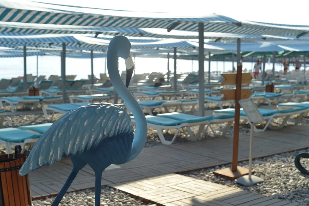 Wydzielona część plaży publicznej, Żwirowa, Żwirowe zejście do morza, odleglość do plaży: 25 m, długość plaży: 150 m, Parasole - bezpłatnie, Leżaki - bezpłatnie, Ręczniki - bezpłatnie, Pawilony na plaży - płatne, Beach Bar - płatne, Prysznic
