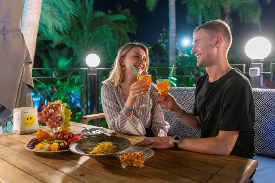 Śniadanie (07:30 - 09:30) - MAIN RESTAURANT, stół szwedzki, Późne śniadanie (09:30 - 10:00) - MAIN RESTAURANT, stół szwedzki, Obiad (12:30 - 14:00) - MAIN RESTAURANT, stół szwedzki, Przekąski (11:00 - 16:00) - SHOW BUFFET, określone menu, Podwieczorek (16:00 - 18:00) - PATISSERIE, określone menu, Kolacja (19:00 - 21:00) - MAIN RESTAURANT, stół szwedzki, Bar Barossa (10:00 - 23:00), Napoje: alkohole lokalne, wybrane alkohole importowane, napoje bezalkoholowe (10:00 - 23:00), Pool Bar (12:30 - 14:00), Napoje: alkohole lokalne, napoje bezalkoholowe (12:30 - 14:00), napoje bezalkoholowe, alkohole lokalne, wybrane alkohole importowane ¹⁾, lody, pakiety dla nowożeńców, pakiety urodzinowe (na życzenie), cukiernia ¹⁾ - dodatkowo płatne