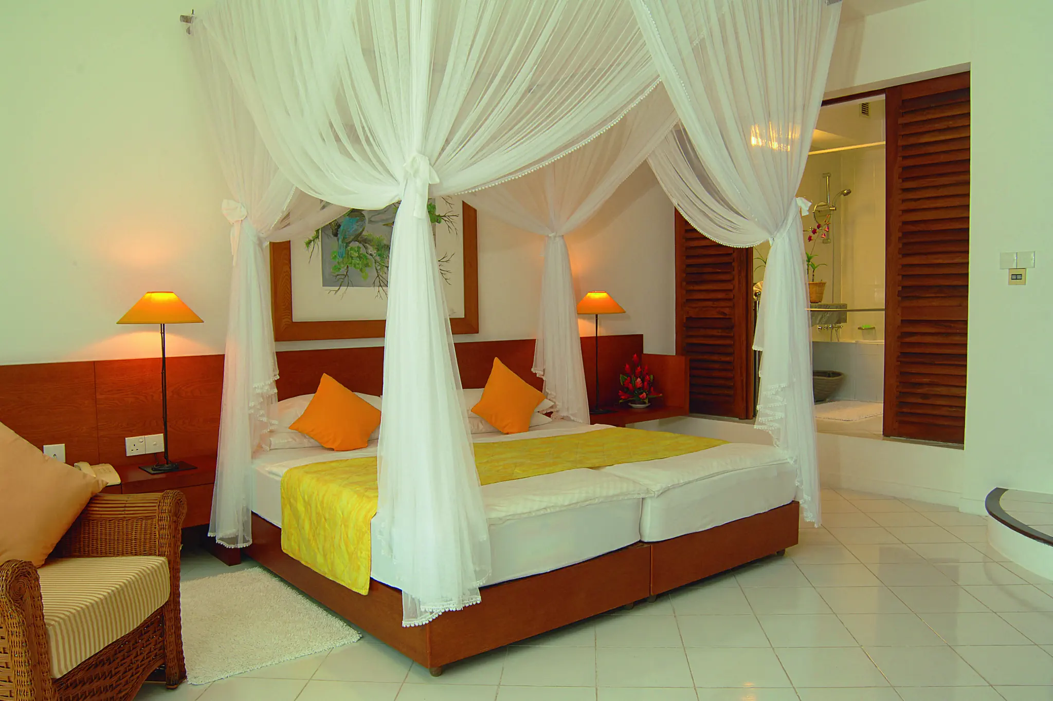 Pokoje Comfort: ok. 45 m2, urządzone ze smakiem: klimatyzacja, telefon, TV satelitarna, sejf, minibar (woda i napoje bezalkoholowe bez opłaty), balkon lub taras od strony oceanu, wanna, prysznic, WC, suszarka. Pokoje Superior: ok. 45 m2, przestronne, łóżko z baldachimem, spokojnie położone w pobliżu basenu, plaży lub w ogrodzie; dodatkowo odtwarzacz DVD (wypożyczalnia filmów DVD bez opłaty), zestaw do przygotowywania kawy/herbaty i oddzielne WC. Suity: ok. 90 m2, moskitiera, dodatkowo sypialnia oraz duży balkon od strony oceanu. Pozostałe wyposażenie jak w pokoju Superior.