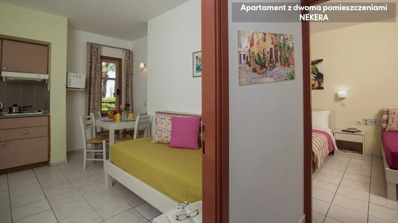 Noclegi, wyżywienie zgodnie z rezerwacją. Dodatkowo w przypadku imprez pakietowych z przelotem, oprócz ww. świadczeń w cenie zawarty jest: ubezpieczenie podstawowe (8000 EUR KL i 2000 EUR NNW) przelot, opłata lotniskowa, opłata za wylot z lotniska lokalnego, transfer lotnisko-hotel-lotnisko (chyba, że dana oferta stanowi inaczej jak np. zakup hotelu z dojazdem własnym). W sezonie letnim tj. w okresie od 22.05 do 09.10 br. oferujemy bezpośrednią opiekę polskojęzycznego rezydenta na miejscu. W pozostałym okresie zapewniamy opiekę lokalnego przedstawiciela, a także kontakt telefoniczny lub poprzez czat (na portalu moja.nekera.pl) z polskojęzycznym rezydentem. Podane godziny serwowania posiłków oraz funkcjonowanie poszczególnych elementów infrastruktury hotelowej mogą ulec nieznacznym zmianom, ze względu na sezonowość, siły wyższe i inne okoliczności.