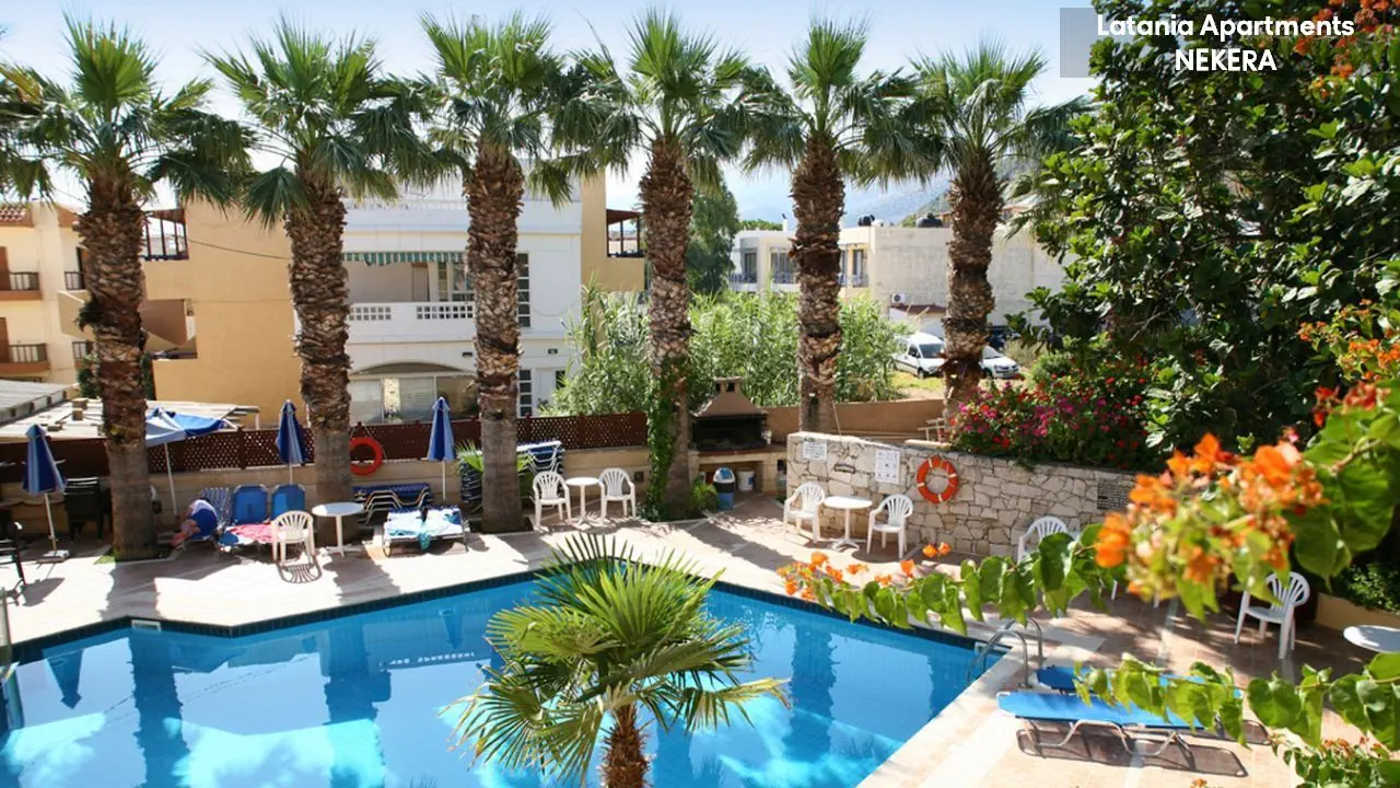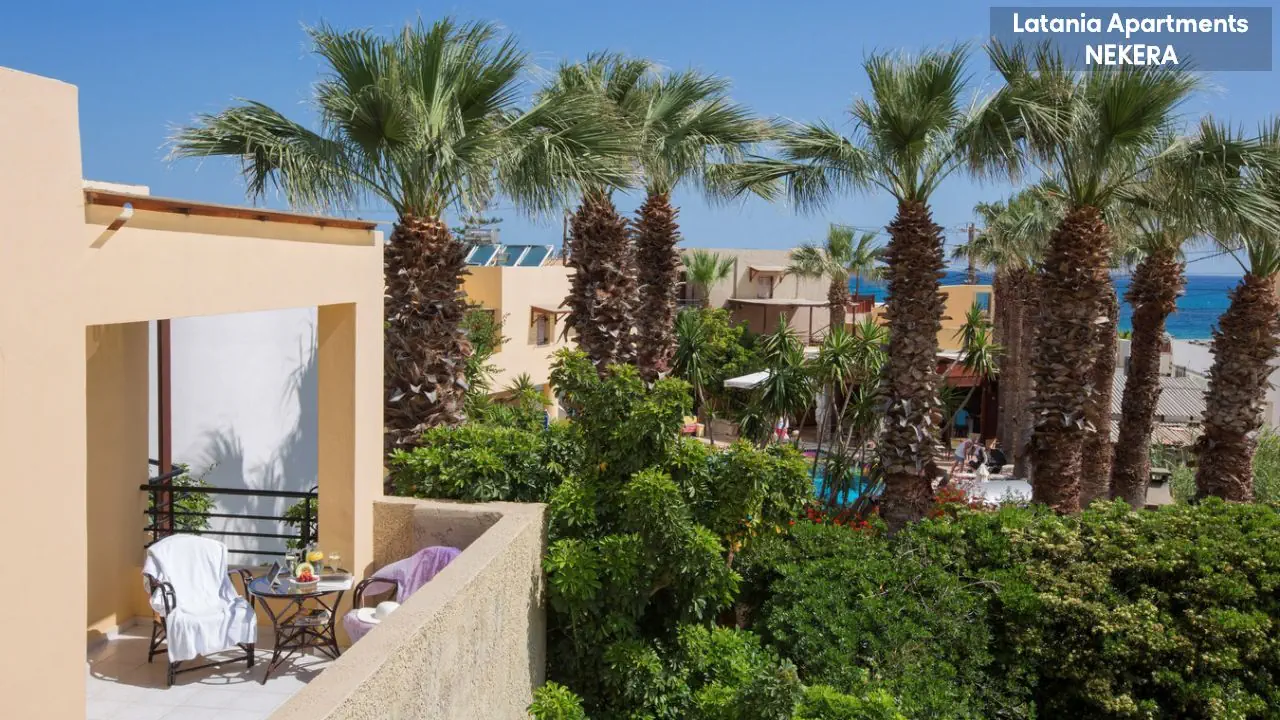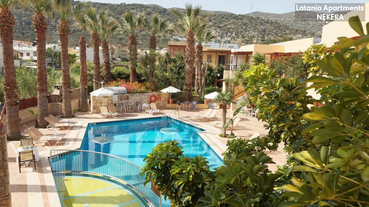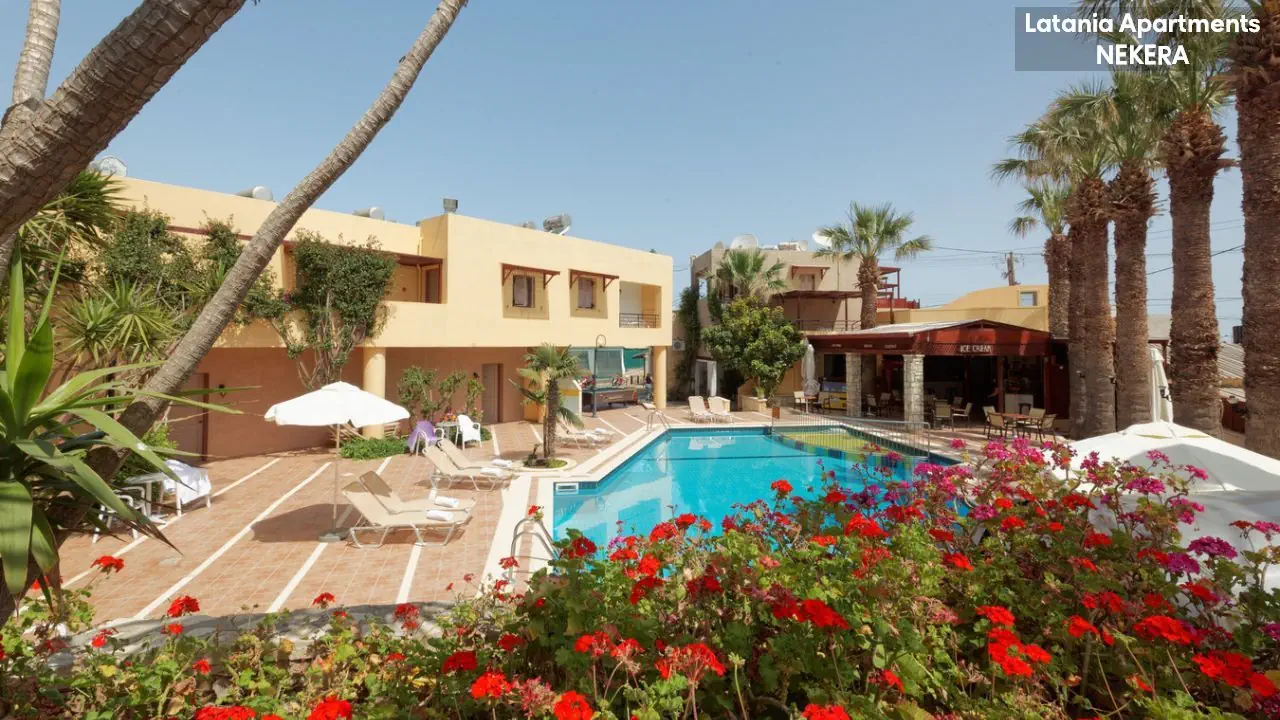 Stalida; ok. 3 km od centrum Hersonissos, ok. 2 km od centrum Malii. Port lotniczy w Heraklionie oddalony o ok. 30 km.
